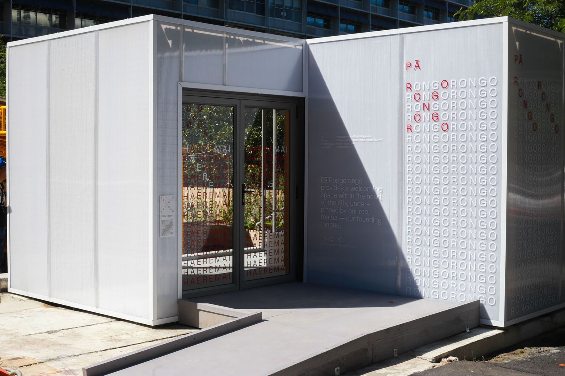 ArchiPro Project Summary - Pā Rongorongo Info Hub: A transformative information centre in Auckland, designed by Angus Muir, utilizing repurposed shipping containers to provide residents and visitors with essential updates on urban developments, arts, culture, and more.