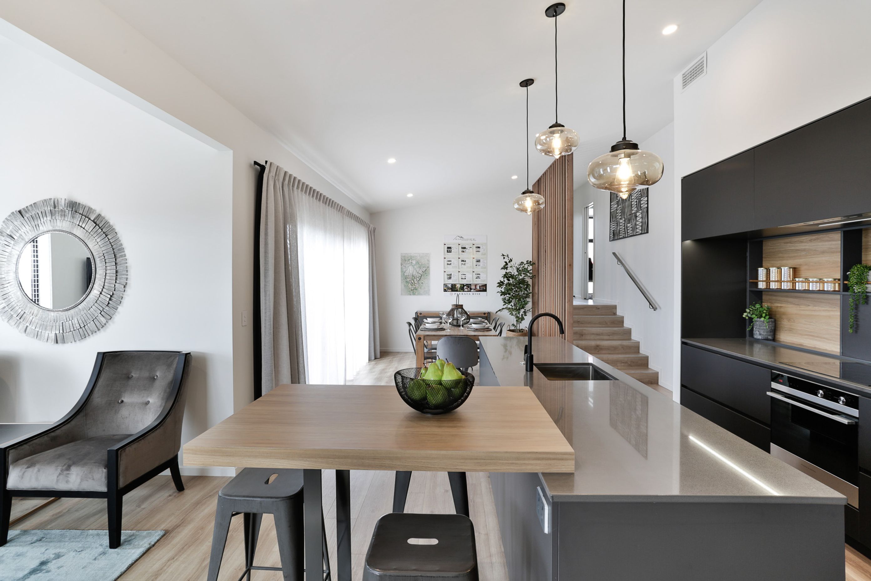 ArchiPro Project Summary - Paerata Showhome 1: A stunning display home by Emandee Homes, featuring bespoke finishes, soaring ceilings, and a central kitchen designed for entertaining, all while maximizing space and capturing abundant natural light.