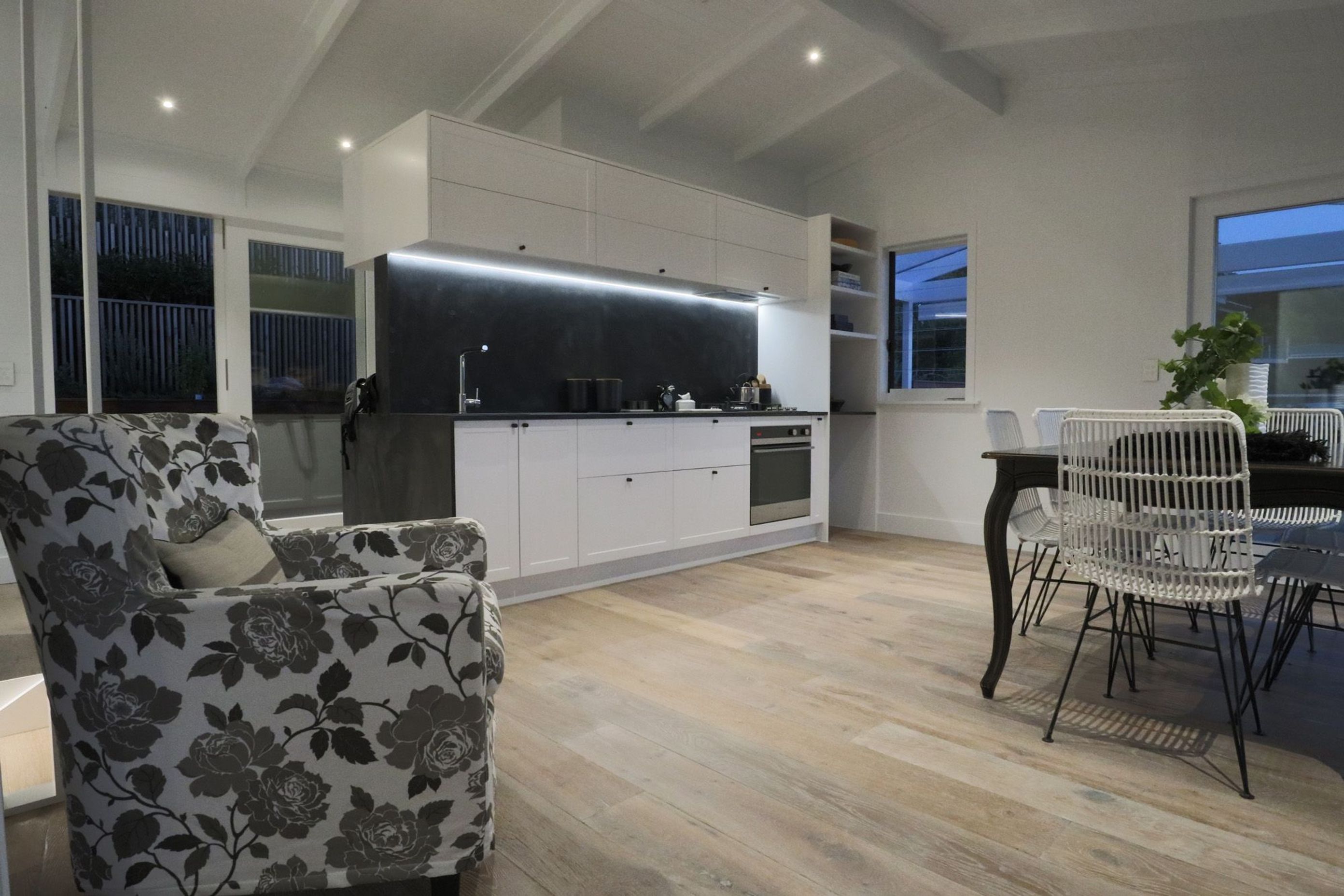 ArchiPro Project Summary - A modern twist on a classic Kiwi bach, featuring expertly designed lighting that enhances space and luxury, with a collaborative approach ensuring client involvement and satisfaction throughout the project.