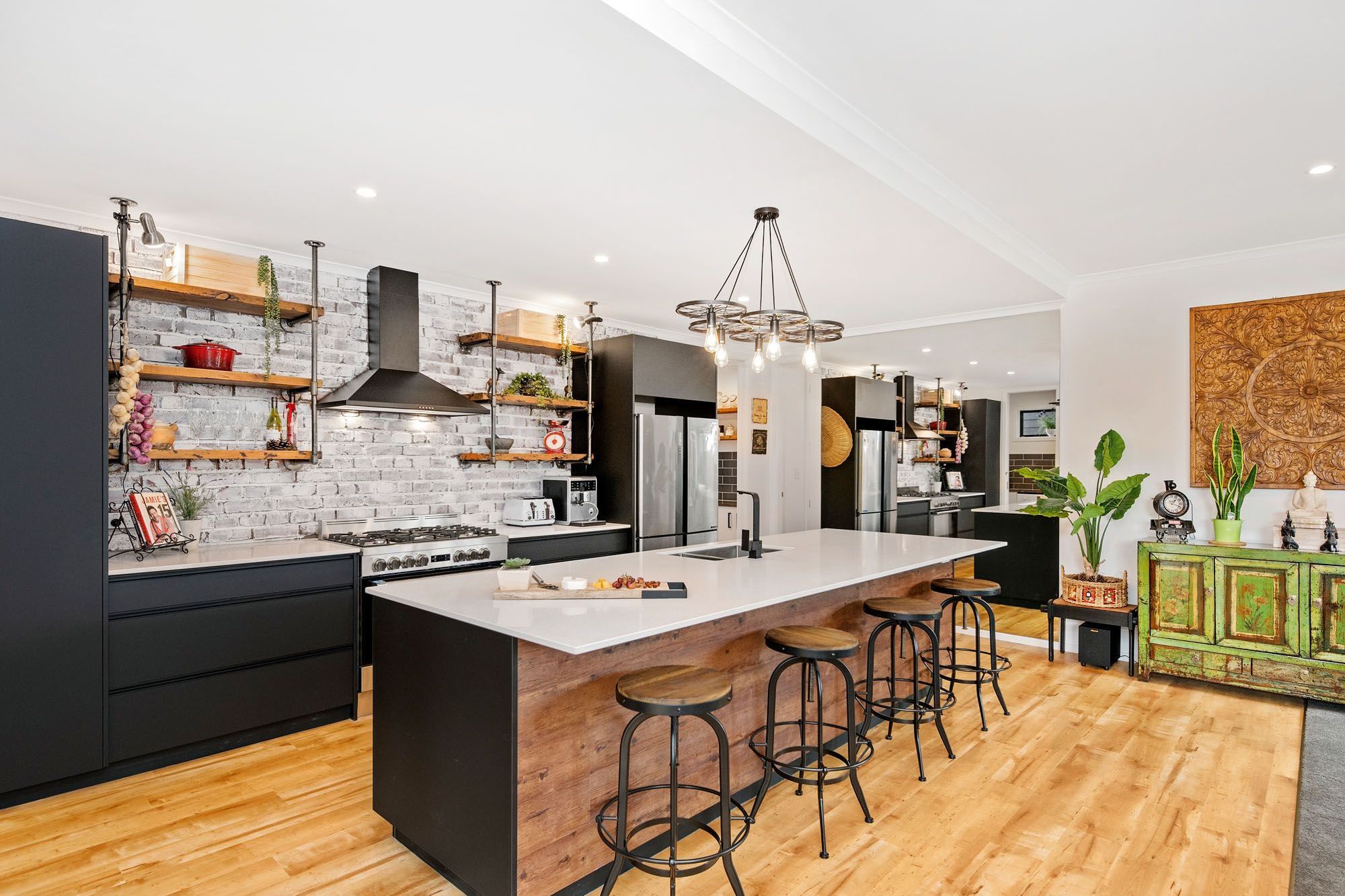ArchiPro Project Summary - Stylish single-level monopitch home featuring a blend of rustic and industrial elements, four bedrooms, three bathrooms, and a generous country kitchen, complemented by inviting outdoor spaces for relaxed entertaining.