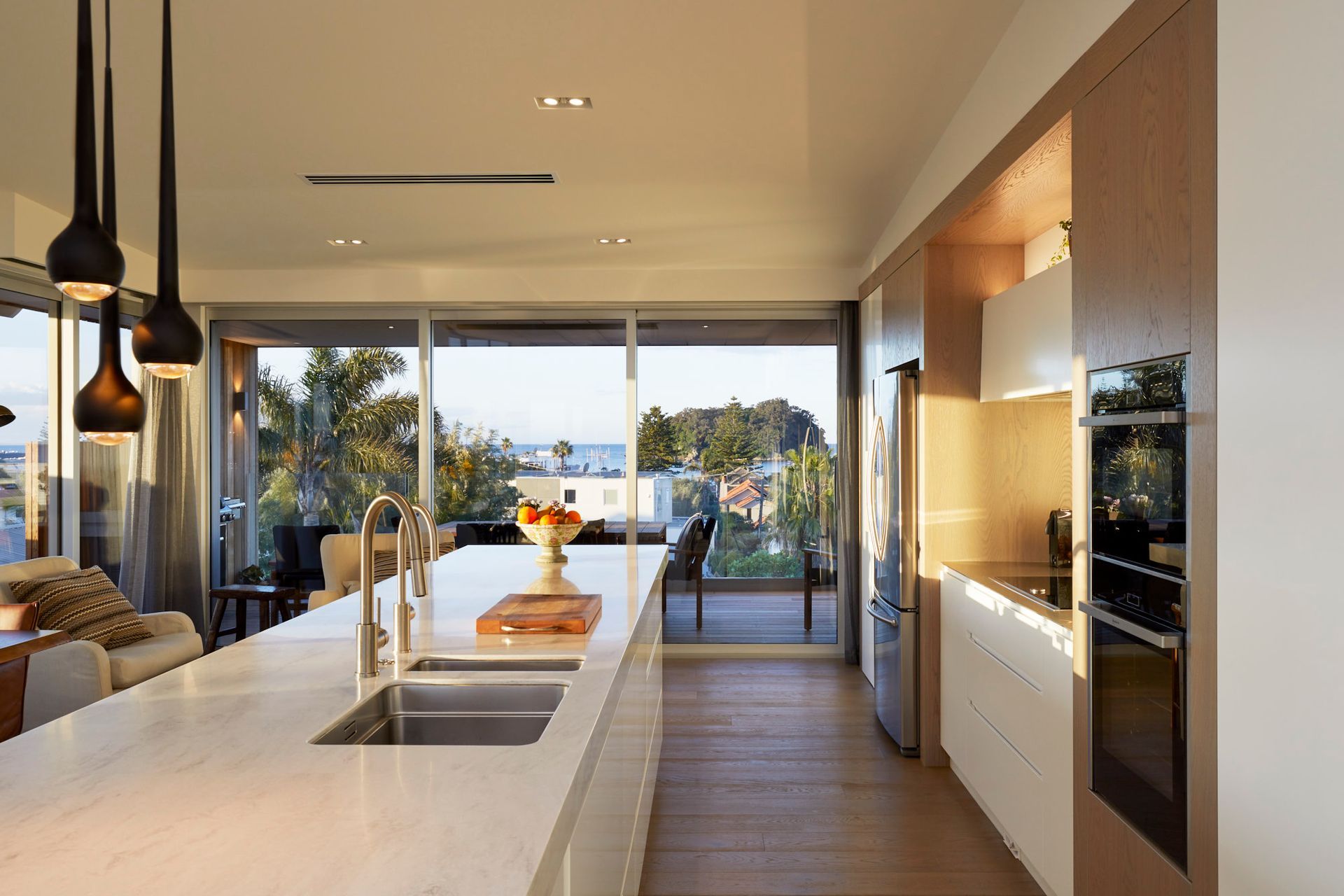 ArchiPro Project Summary - A stunning three-level residence in Mount Maunganui featuring panoramic ocean views, five bedrooms, and luxurious living spaces, complemented by a designer kitchen and advanced technology for comfort and convenience.