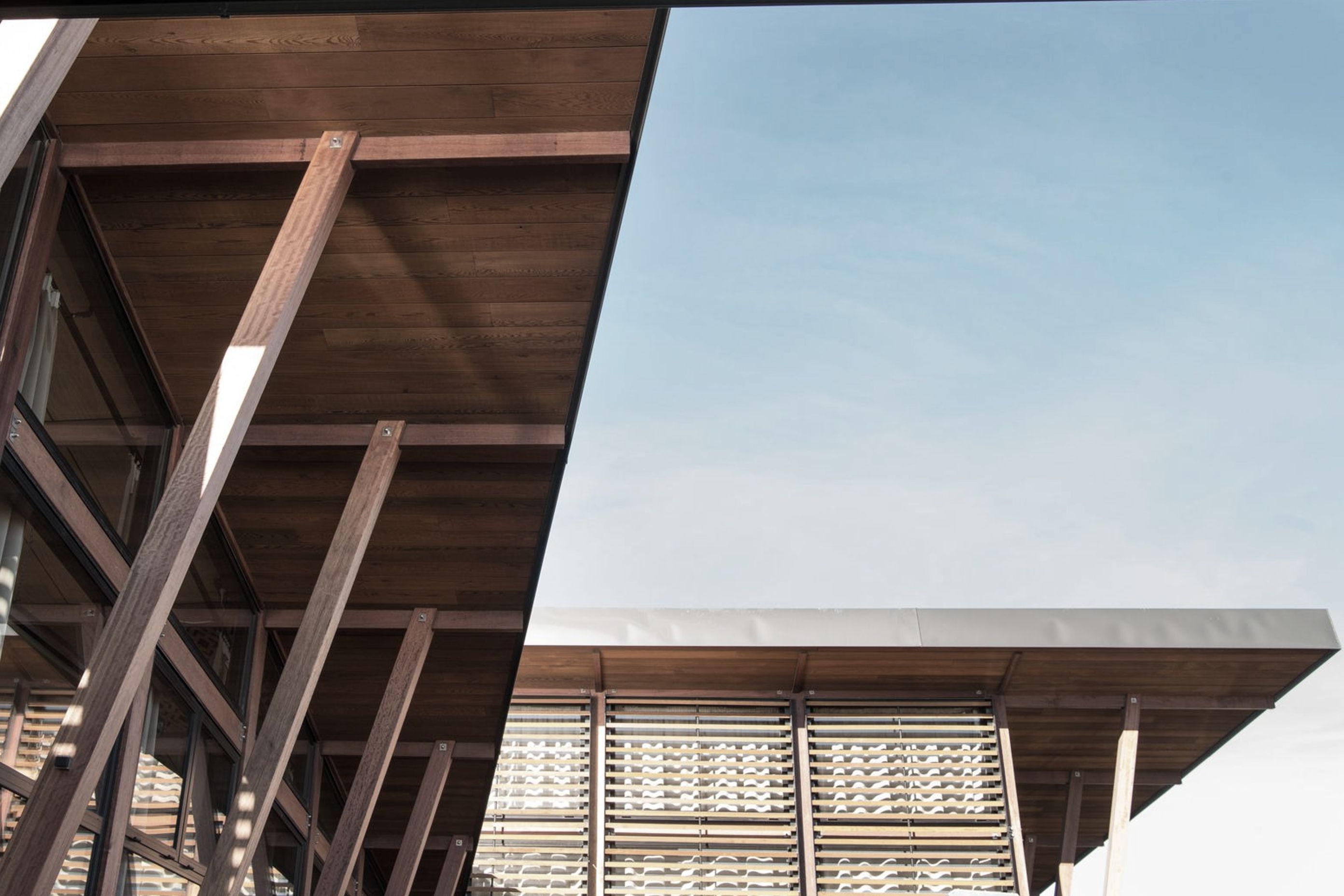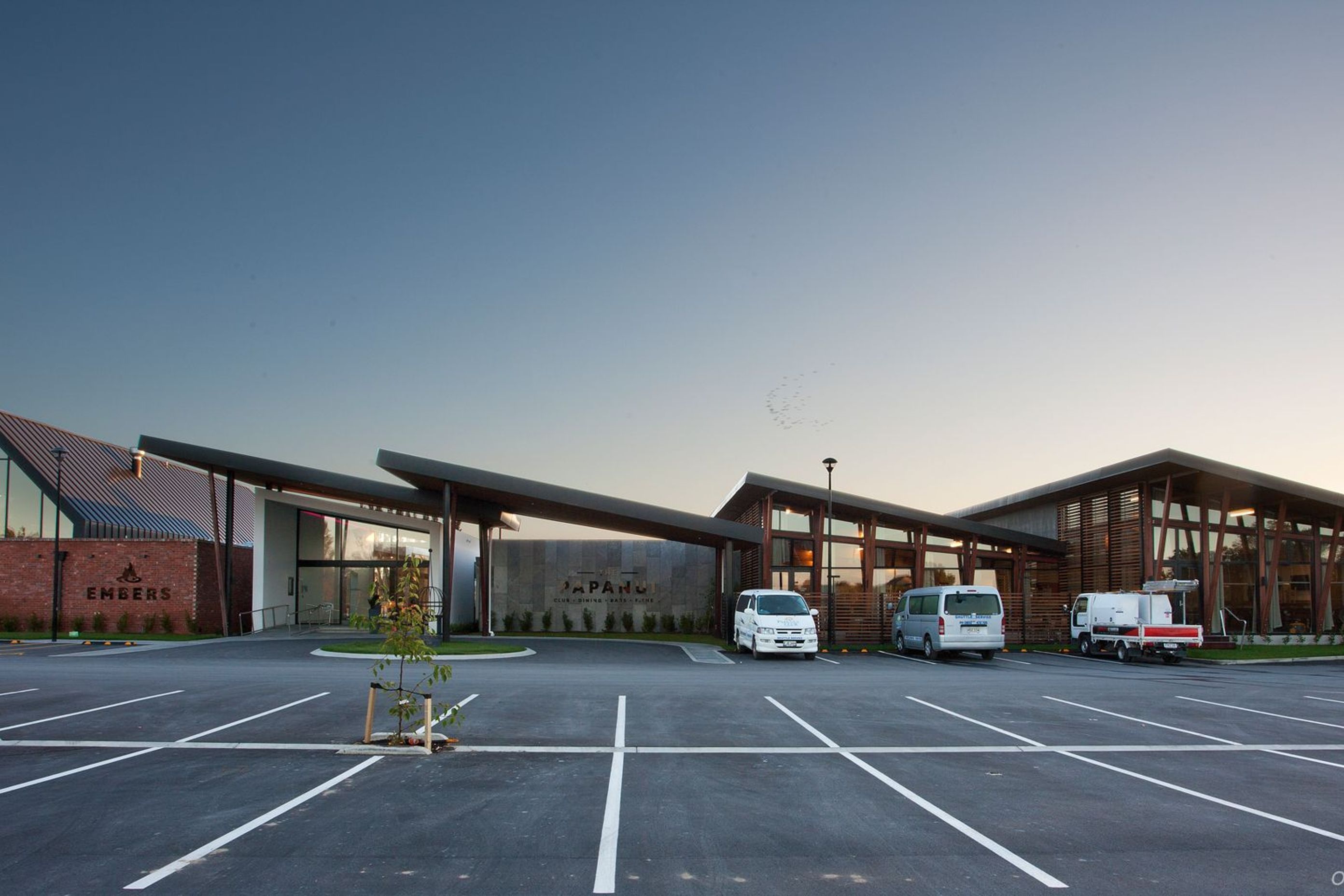 ArchiPro Project Summary - A striking timber structure featuring visible laminated New Zealand pinus, complemented by exotic timber purlins and purple heart outriggers, creating a resilient and aesthetically pleasing environment for the Papanui Club.