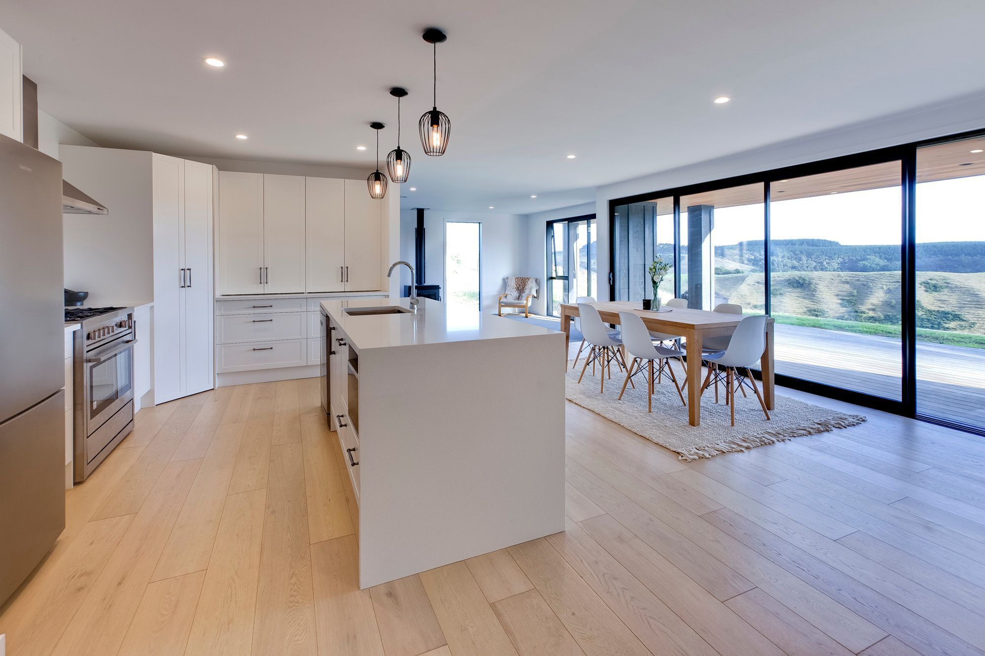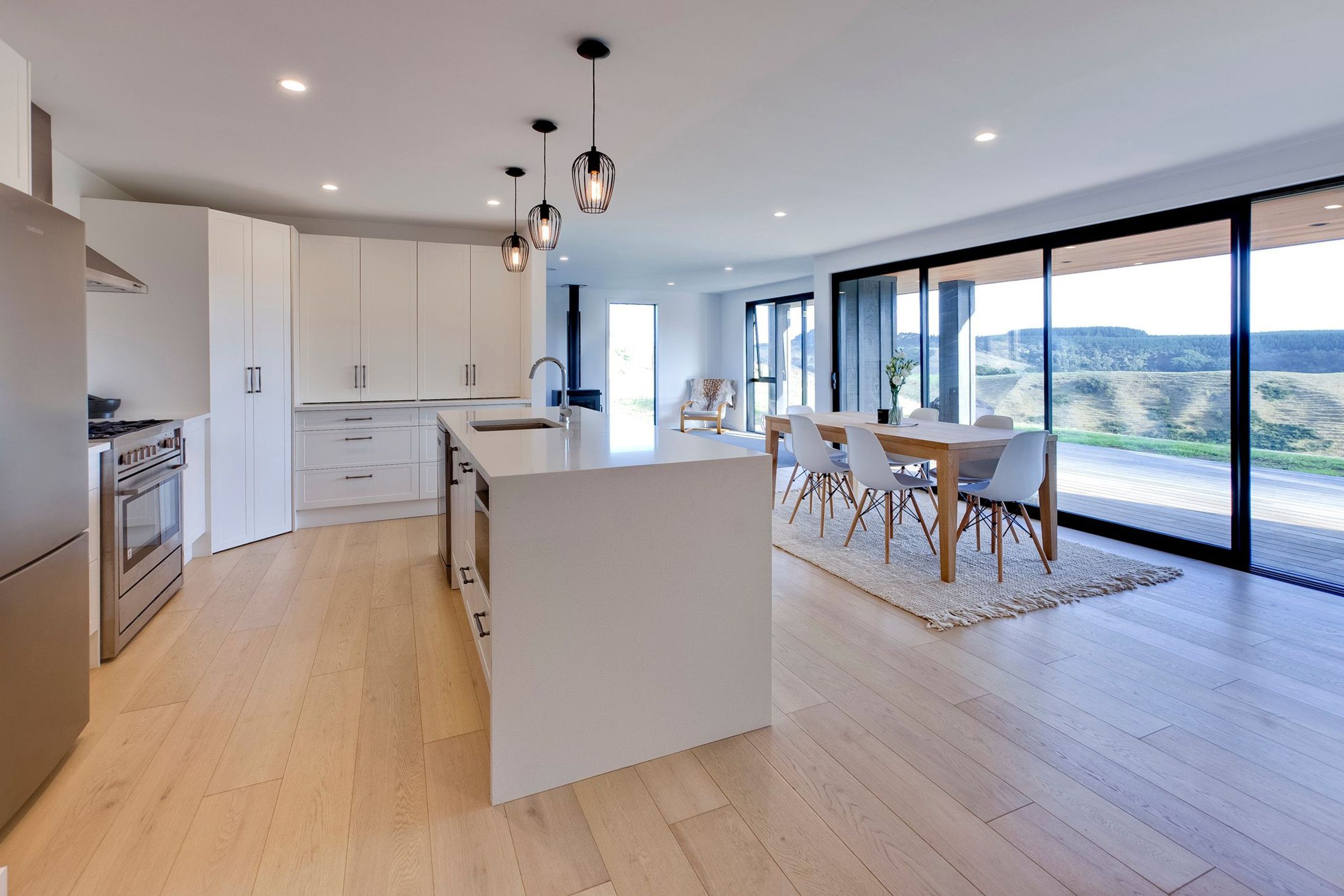 ArchiPro Project Summary - A modern, comfortable 136 sqm country-style home in Te Pua, Auckland, featuring 3 bedrooms, 1 bathroom, and an open-plan kitchen/living area with stunning views of the west coast hills, designed and constructed by Steadfast with high-end finishes.