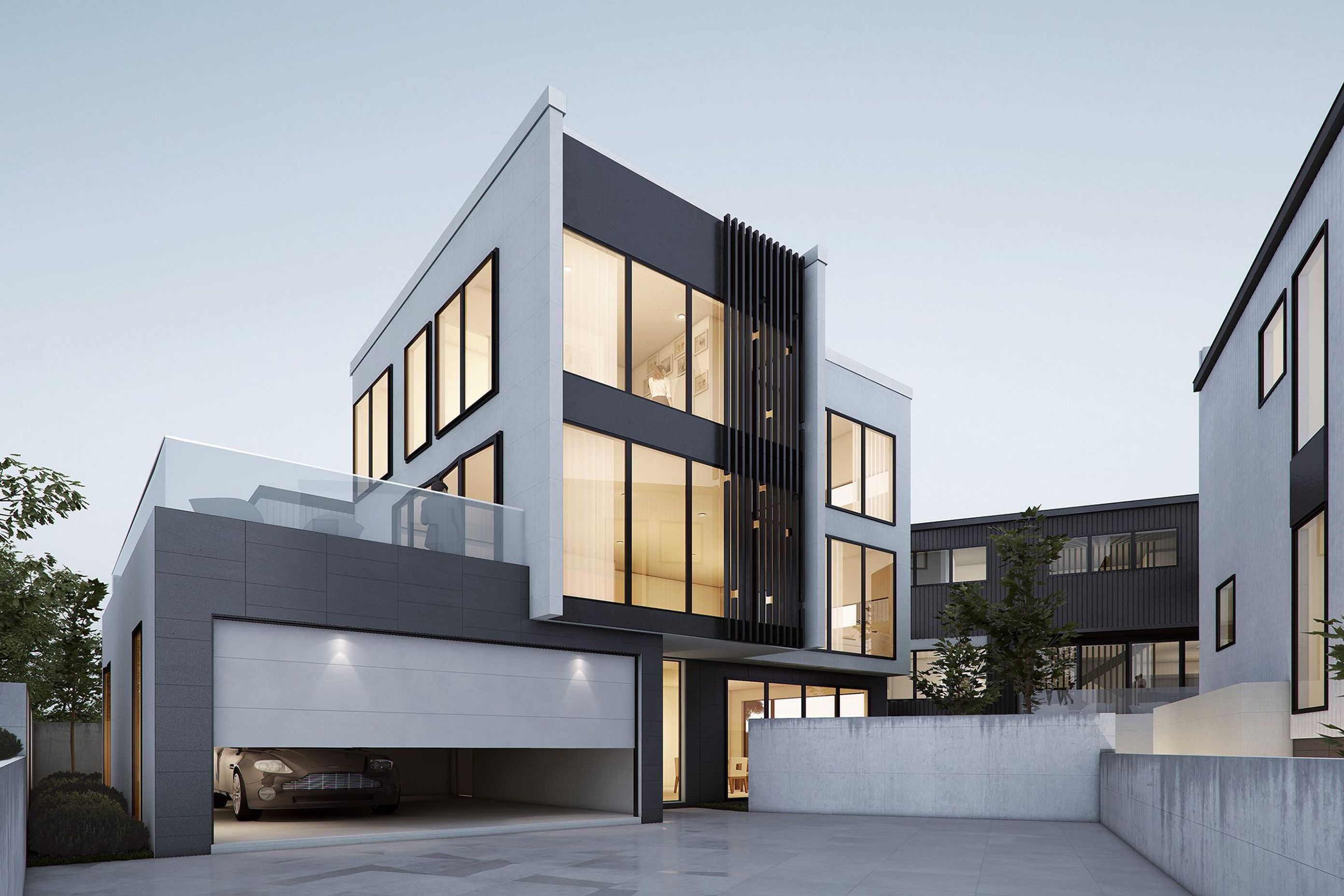ArchiPro Project Summary - A modern three-storey development featuring three luxurious detached homes, designed to maximize stunning views of Rangitoto and the bay, completed in 2018 in the prestigious St Heliers area.
