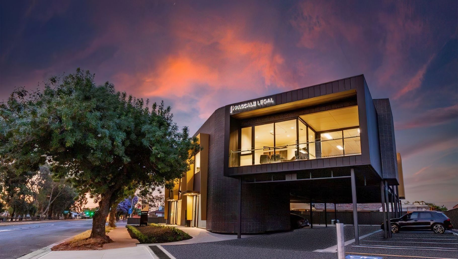 ArchiPro Project Summary - Pascale Legal Offices: A two-storey commercial development in Salisbury featuring meeting rooms, offices, and amenities, complemented by undercroft parking and an external balcony deck, serving as a landmark for the community.