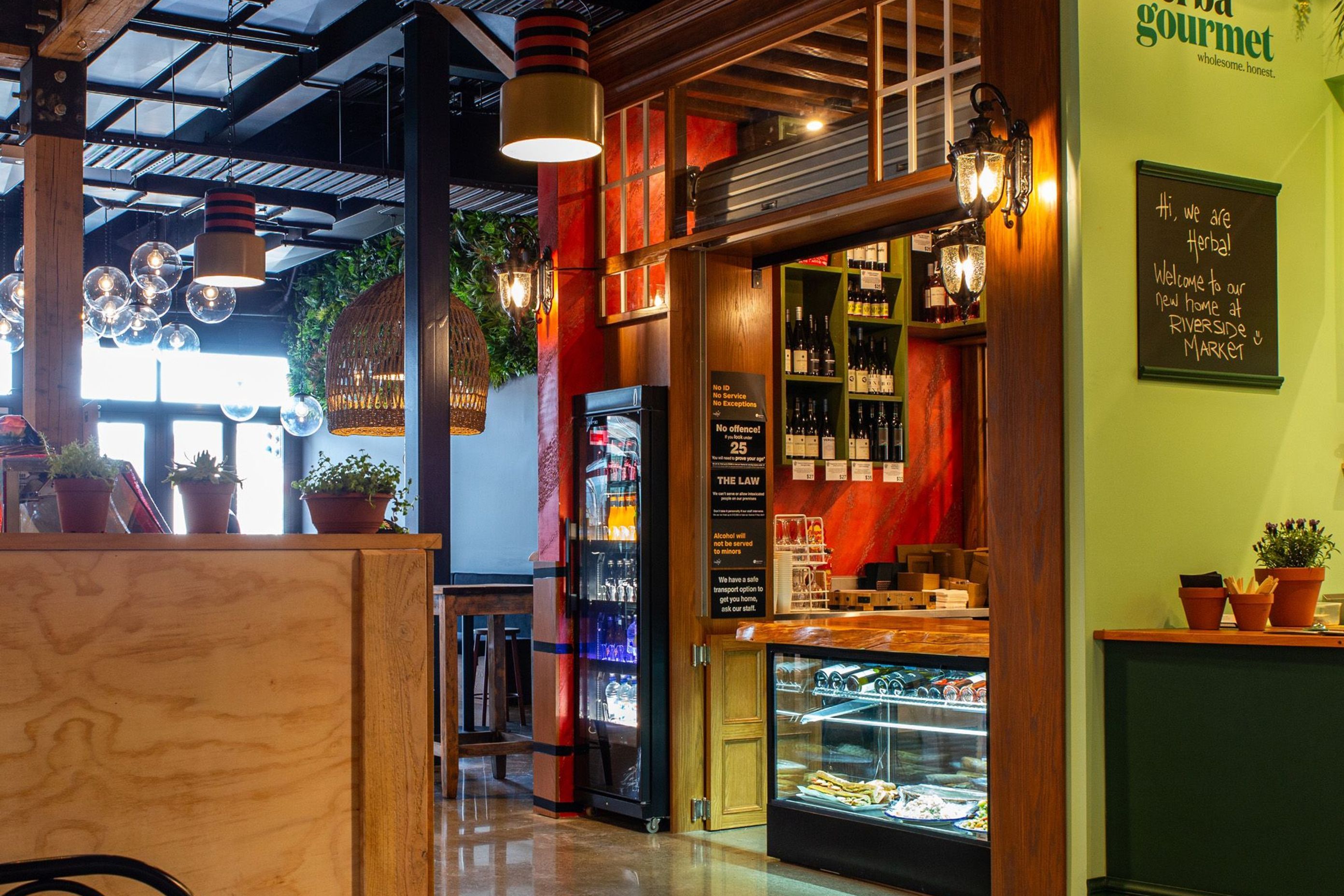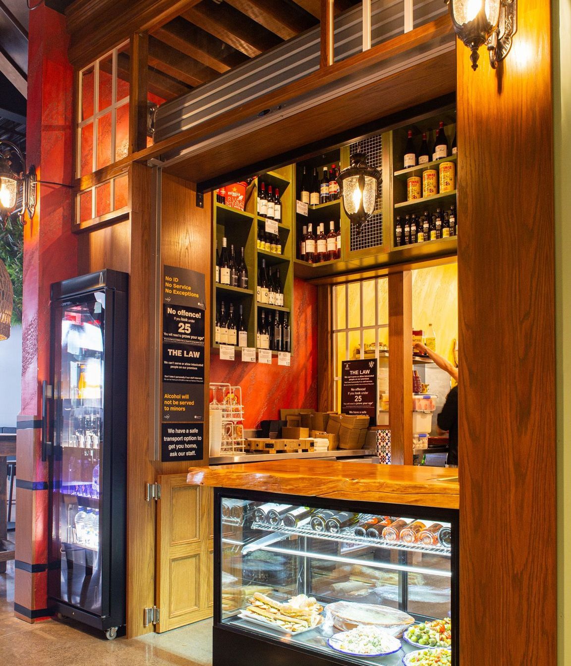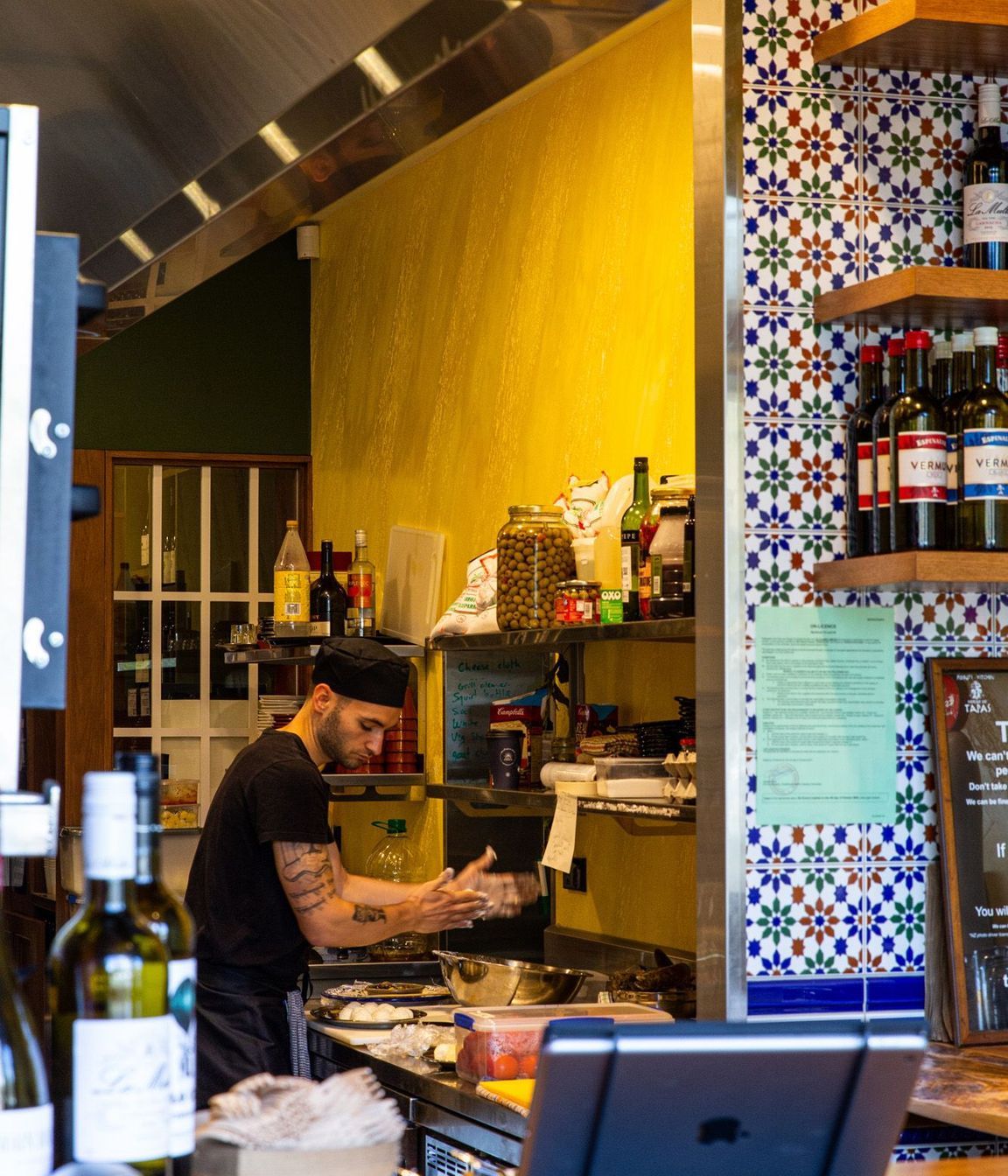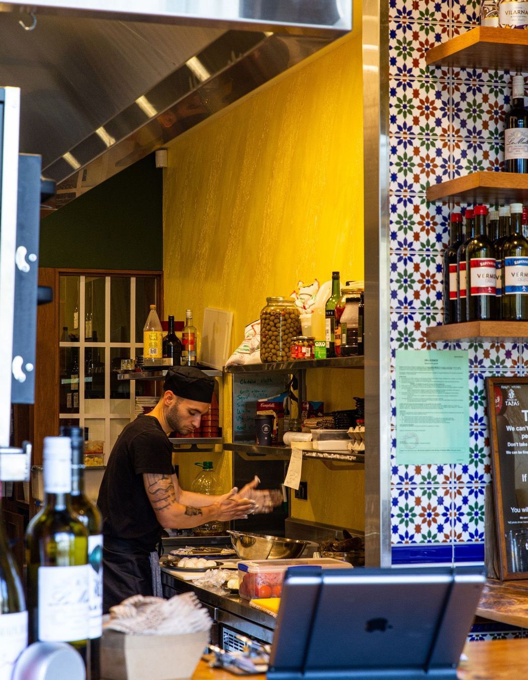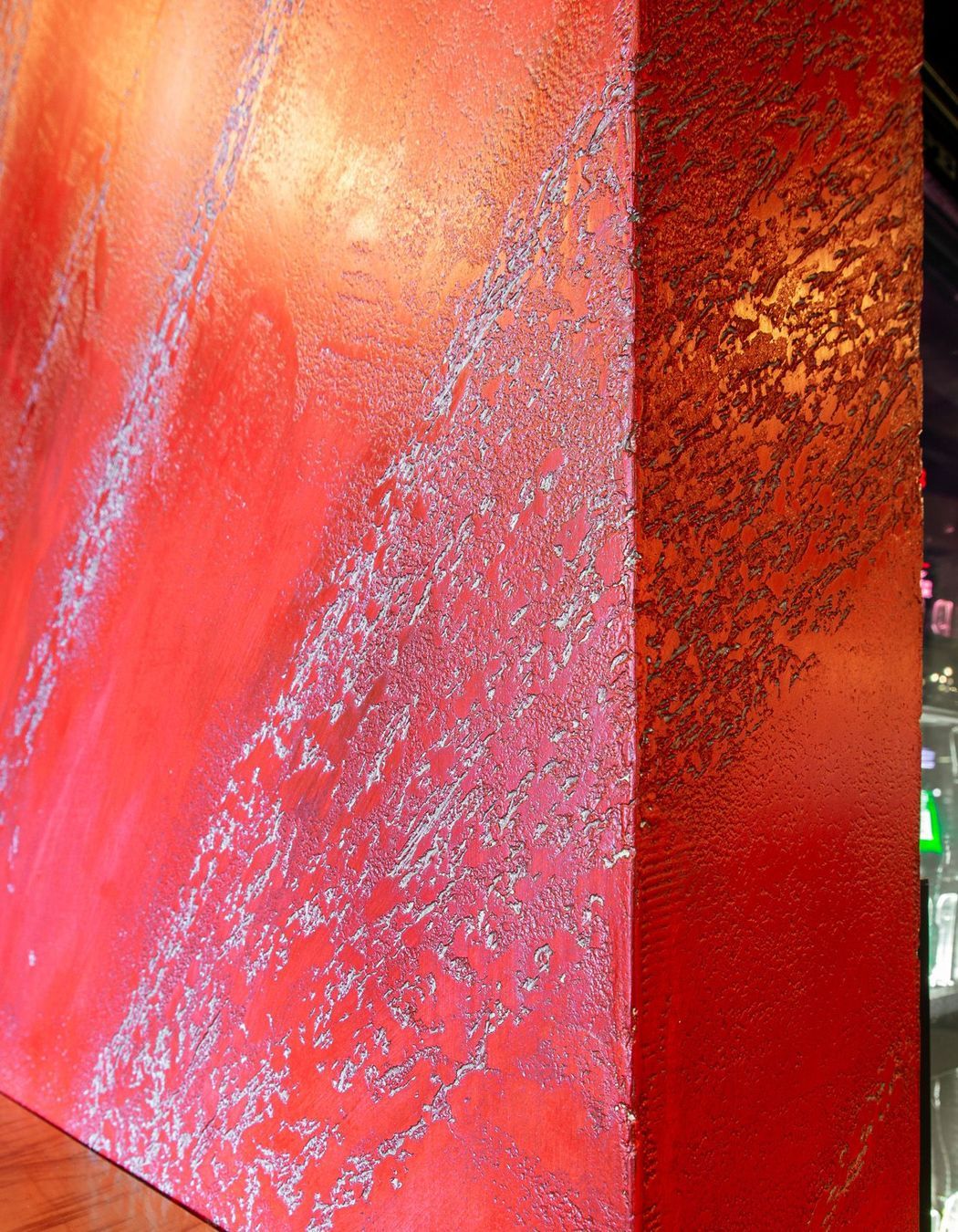 ArchiPro Project Summary - Unique polished plaster application in bold colors enhances the aesthetic of Pedros Kitchen, creating a distinctive atmosphere for this well-known eatery.