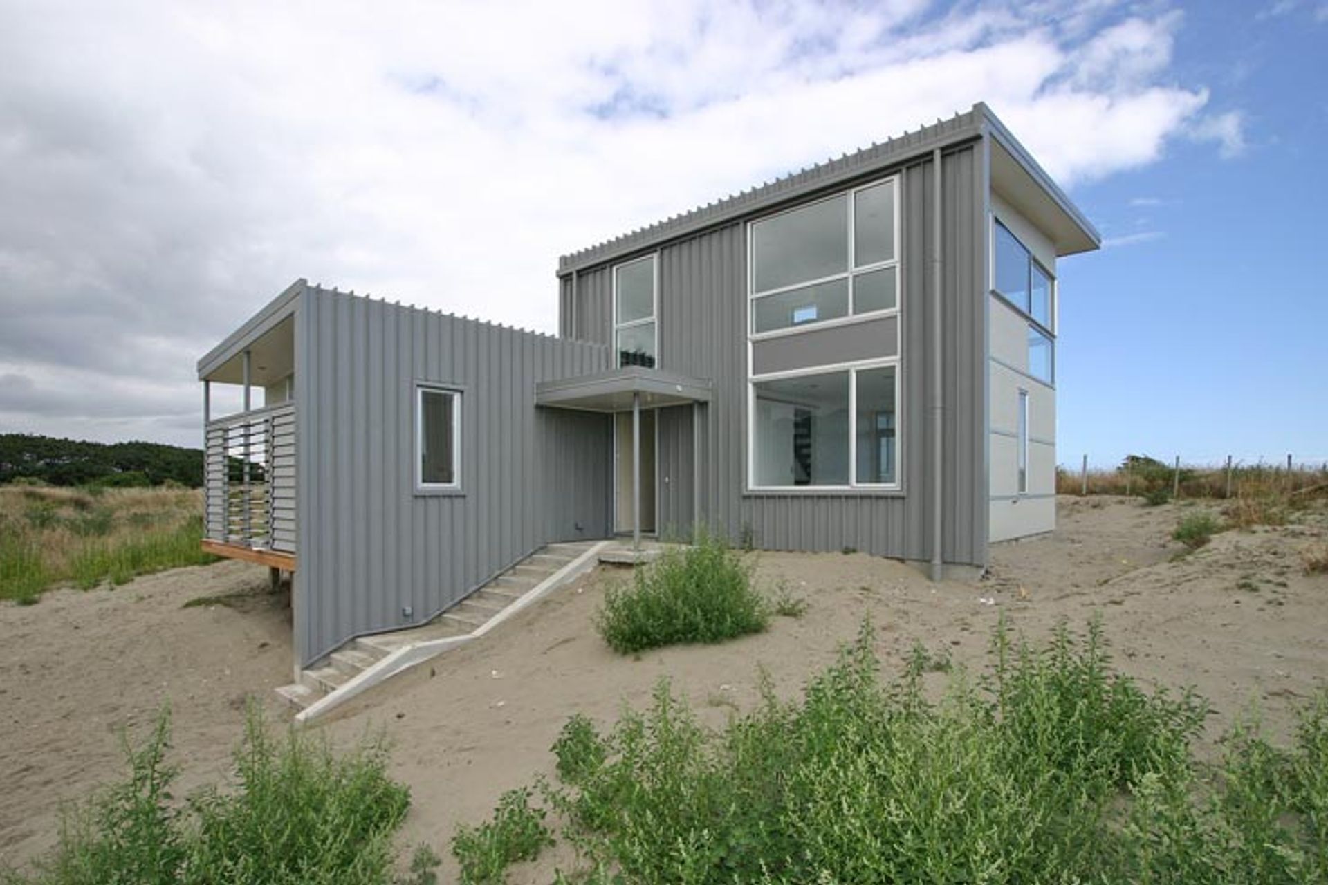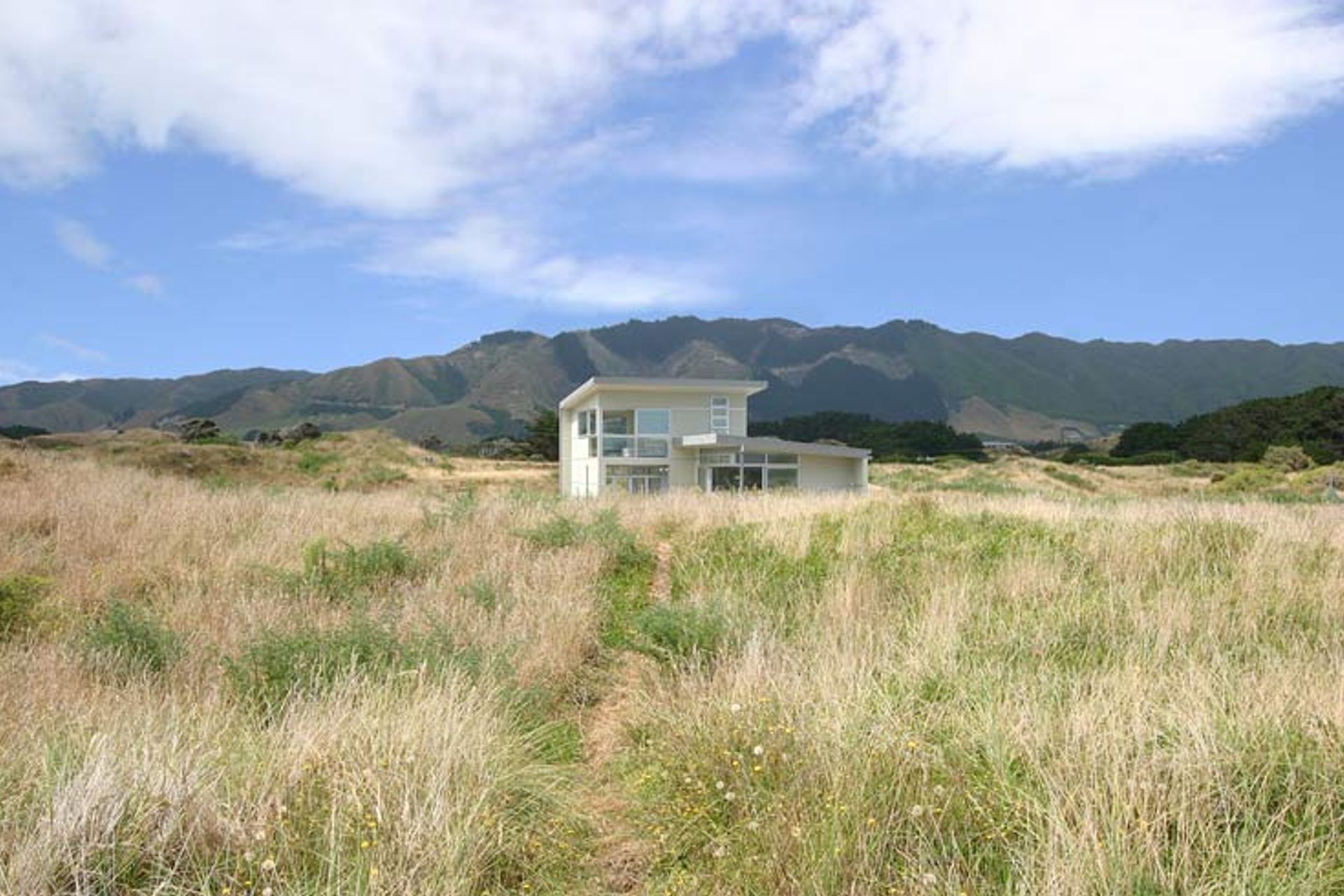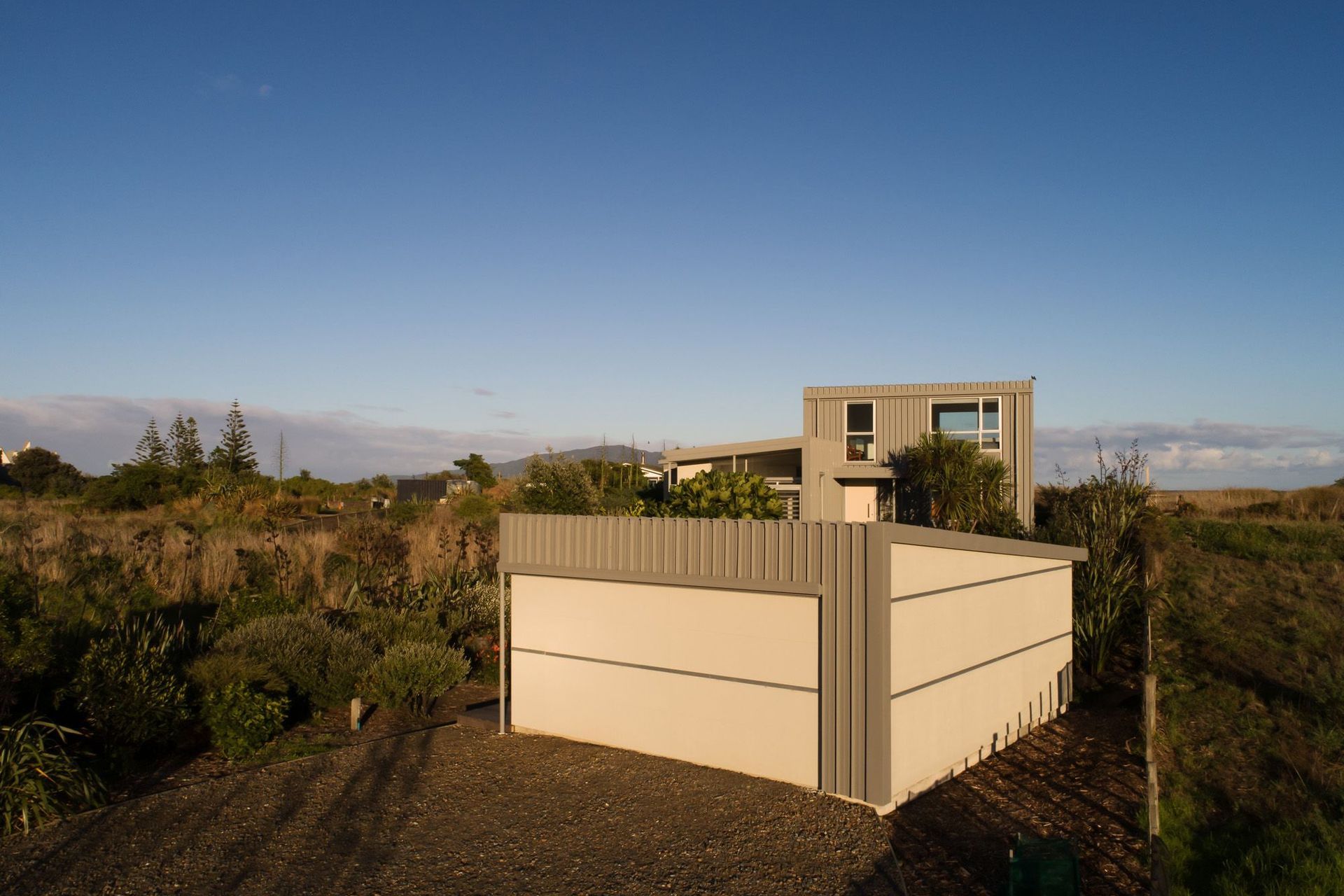 ArchiPro Project Summary - Coastal residence nestled within natural dunes, adjacent to a coastal preservation zone on the Kapiti Coast.