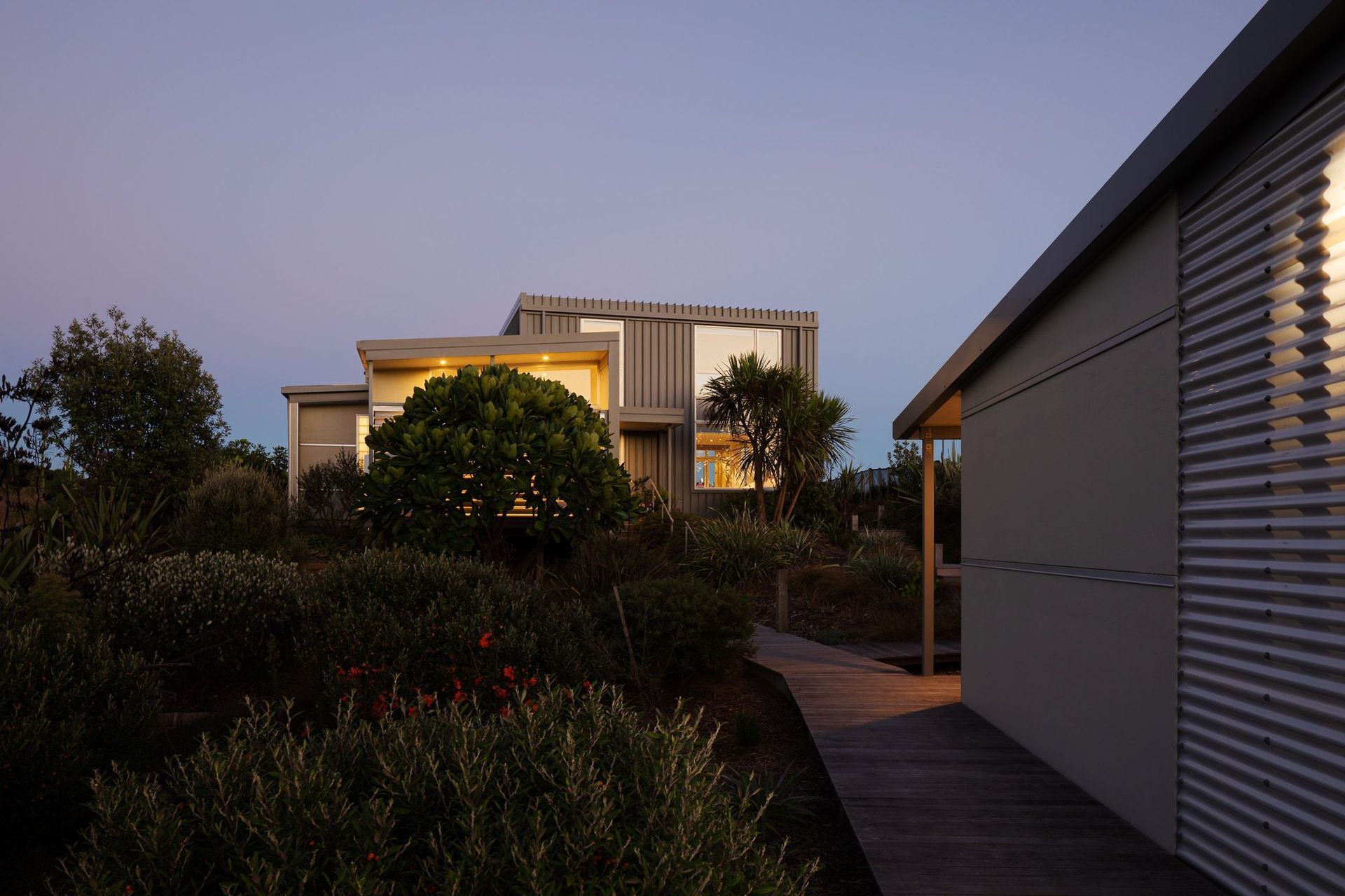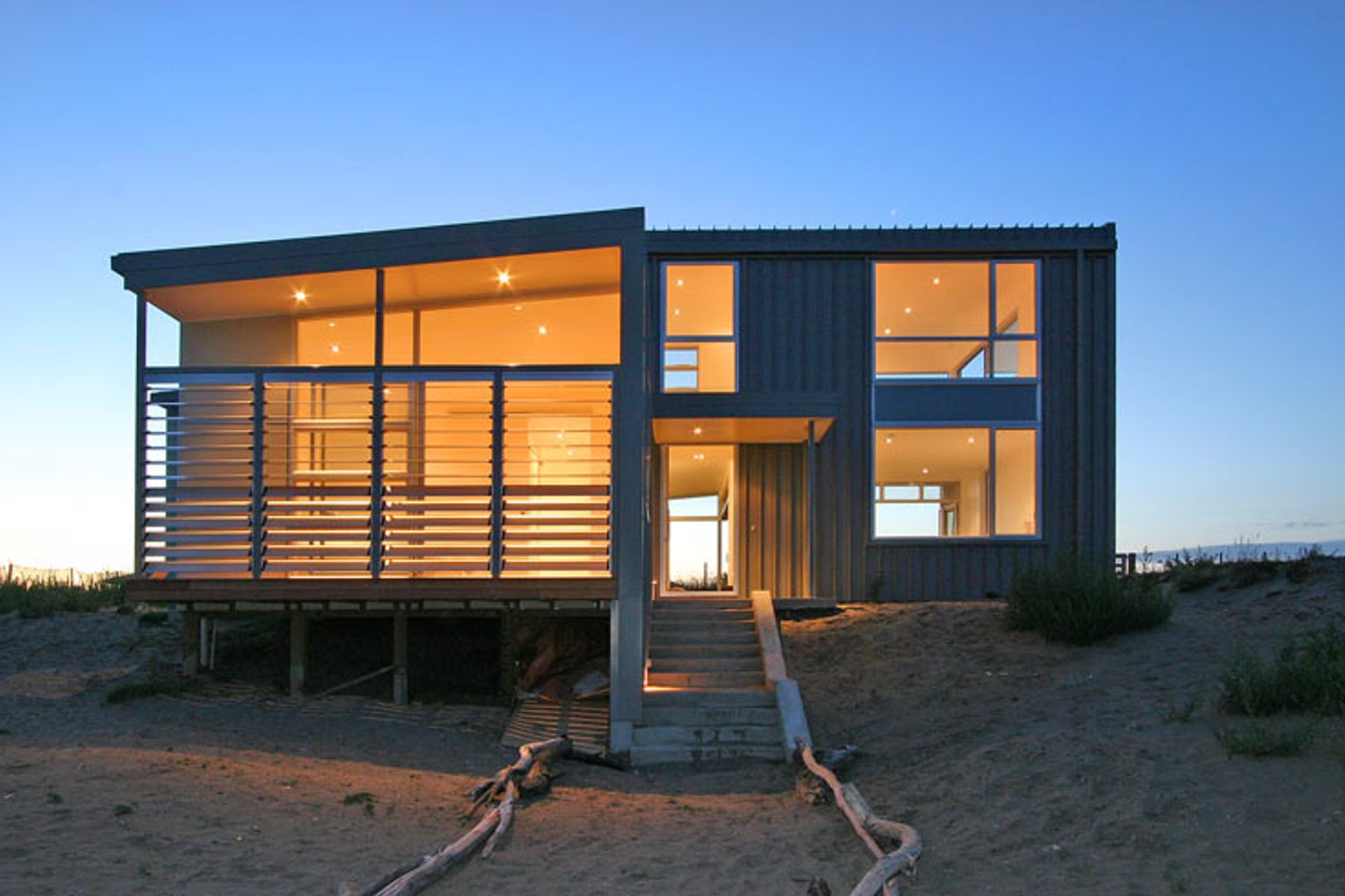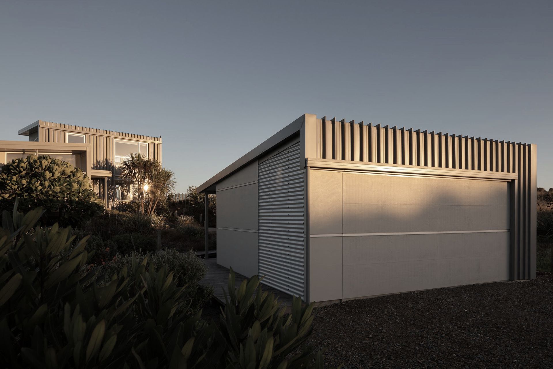 ArchiPro Project Summary - Coastal residence nestled within natural dunes, adjacent to a coastal preservation zone on the Kapiti Coast.