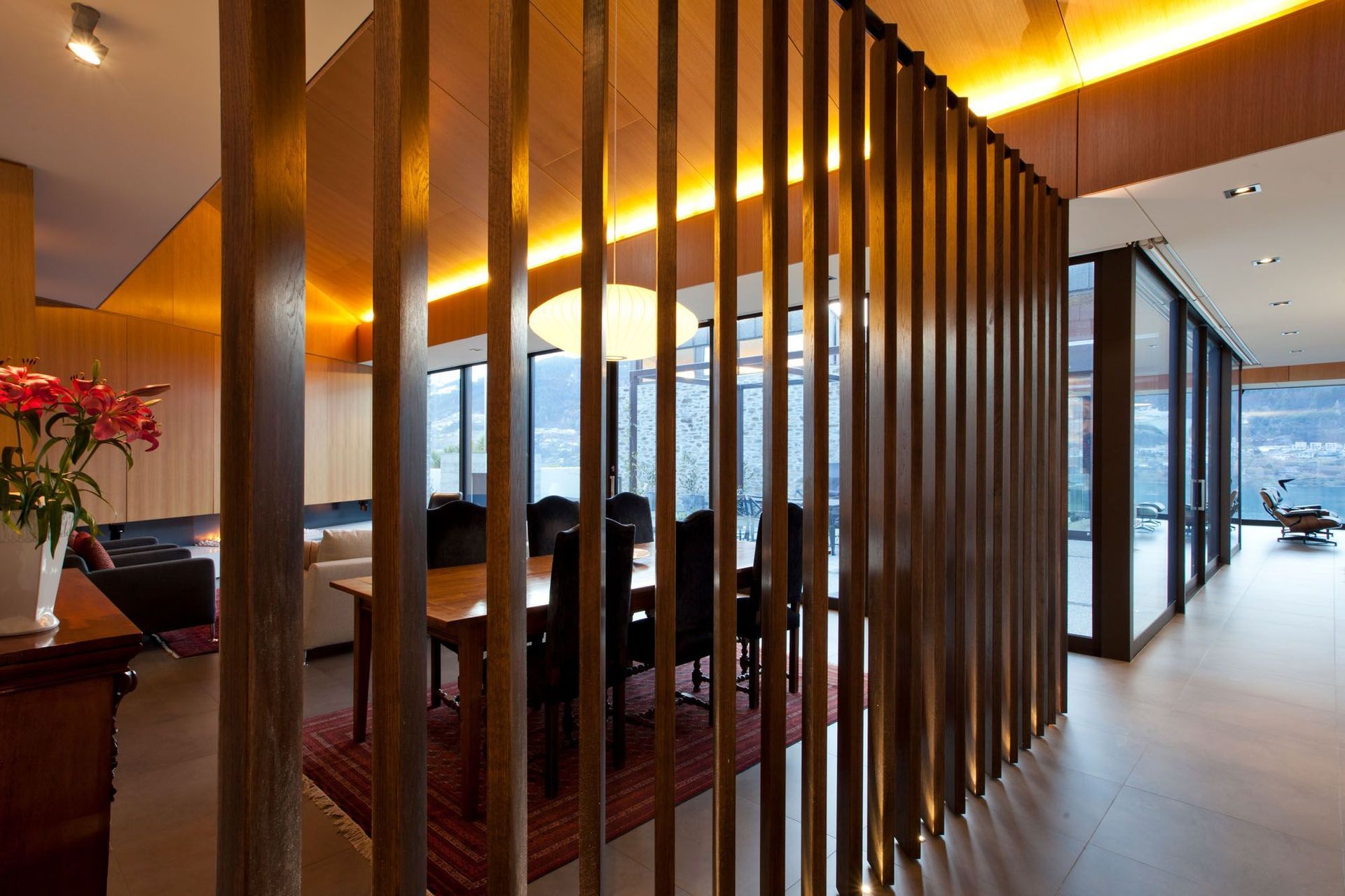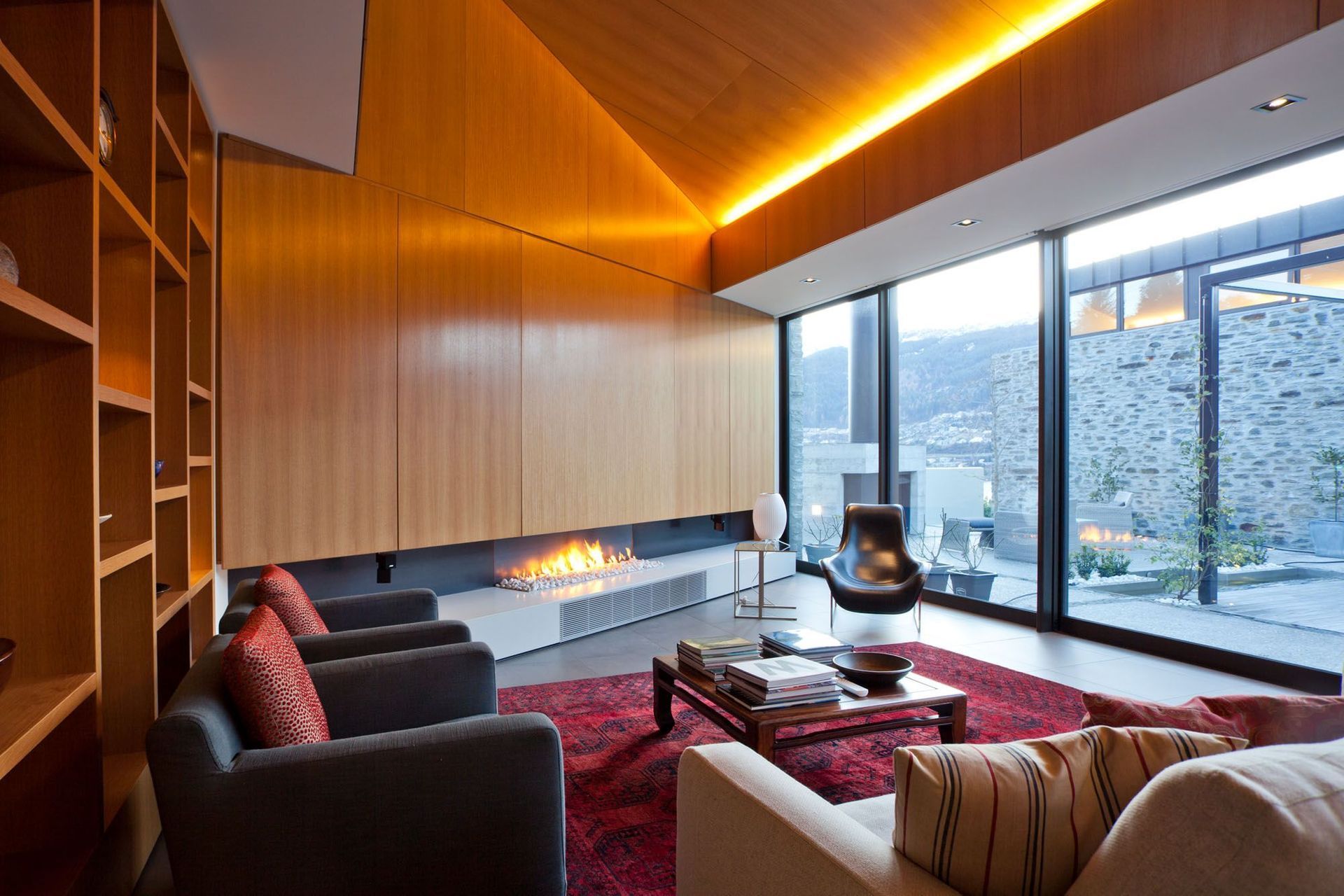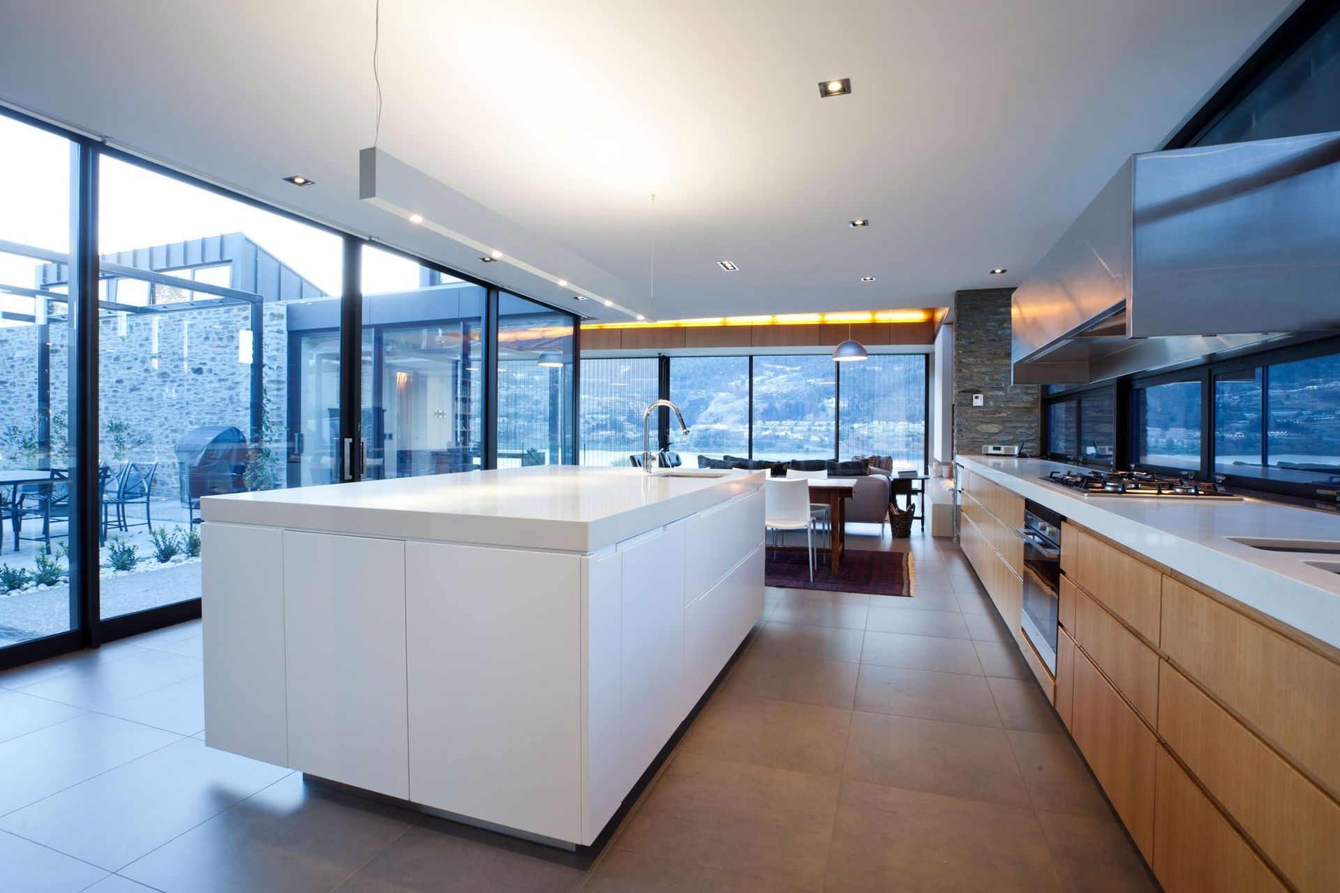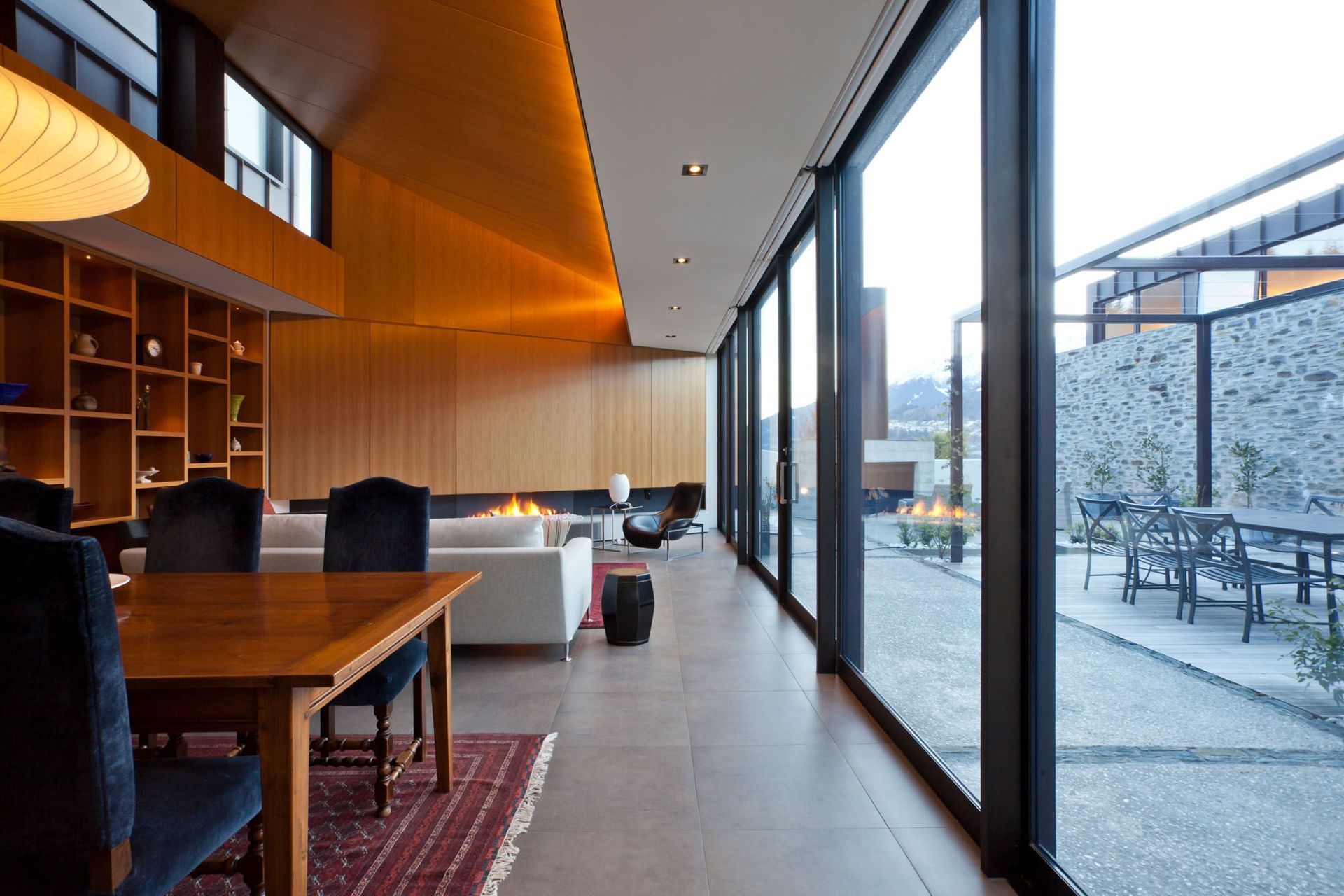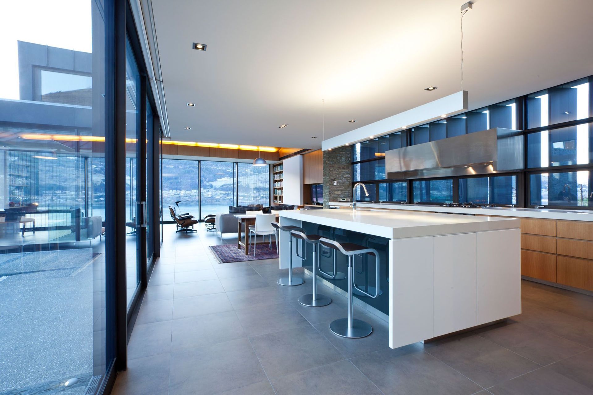 ArchiPro Project Summary - A masterfully designed residence by Warren & Mahoney Architects, seamlessly integrating with a challenging site while maximizing views of Lake Wakatipu through a fluid connection of indoor and outdoor spaces.