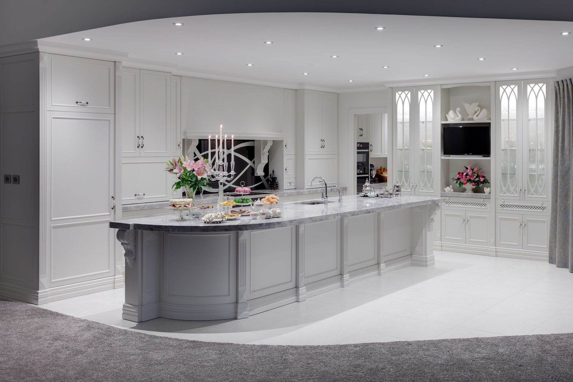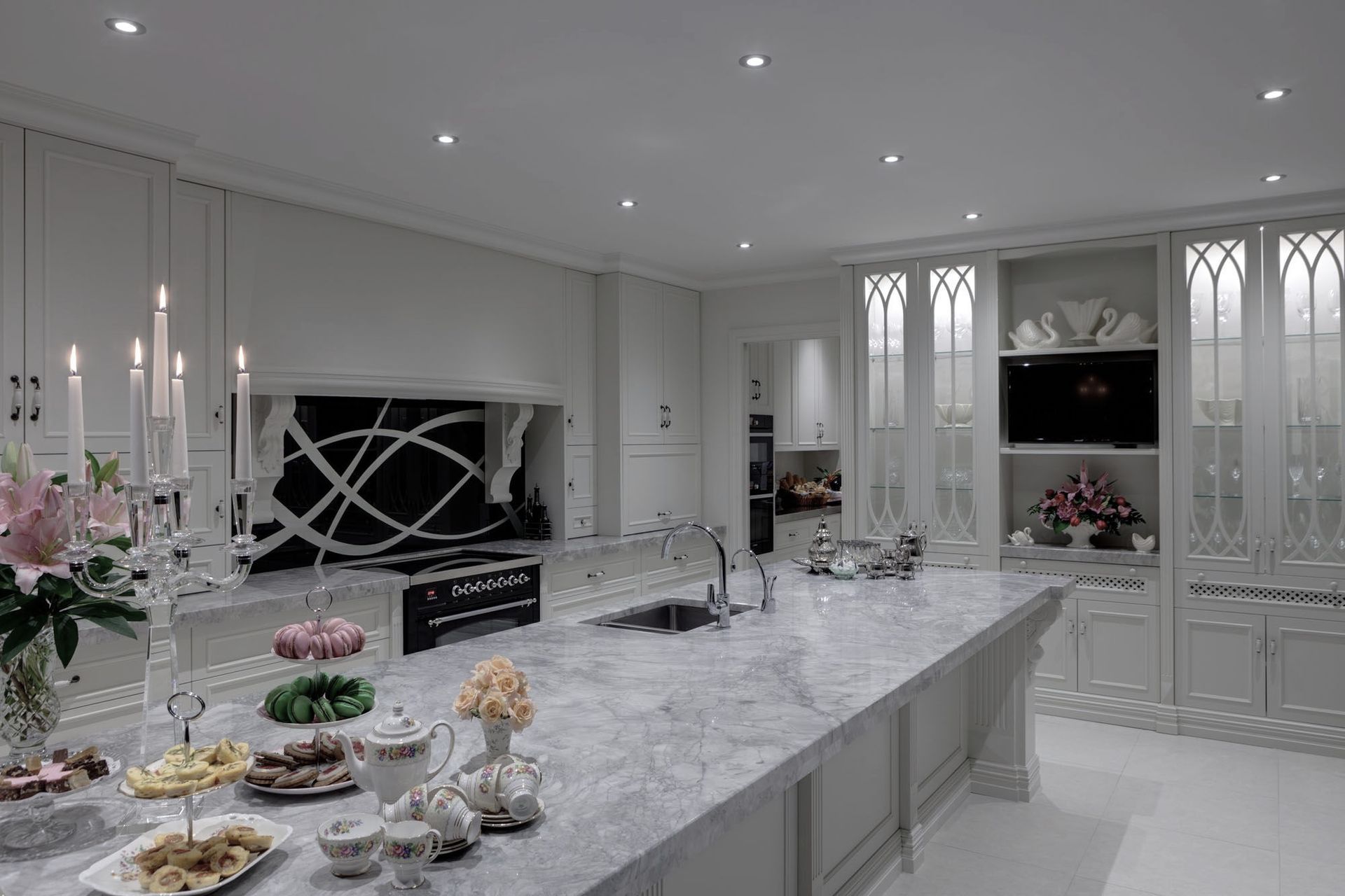 ArchiPro Project Summary - Award-winning kitchen featuring a blend of classical and gothic design elements, designed for entertaining with a spacious scullery and bespoke finishes, highlighted by a unique splashback and elegant curved features.
