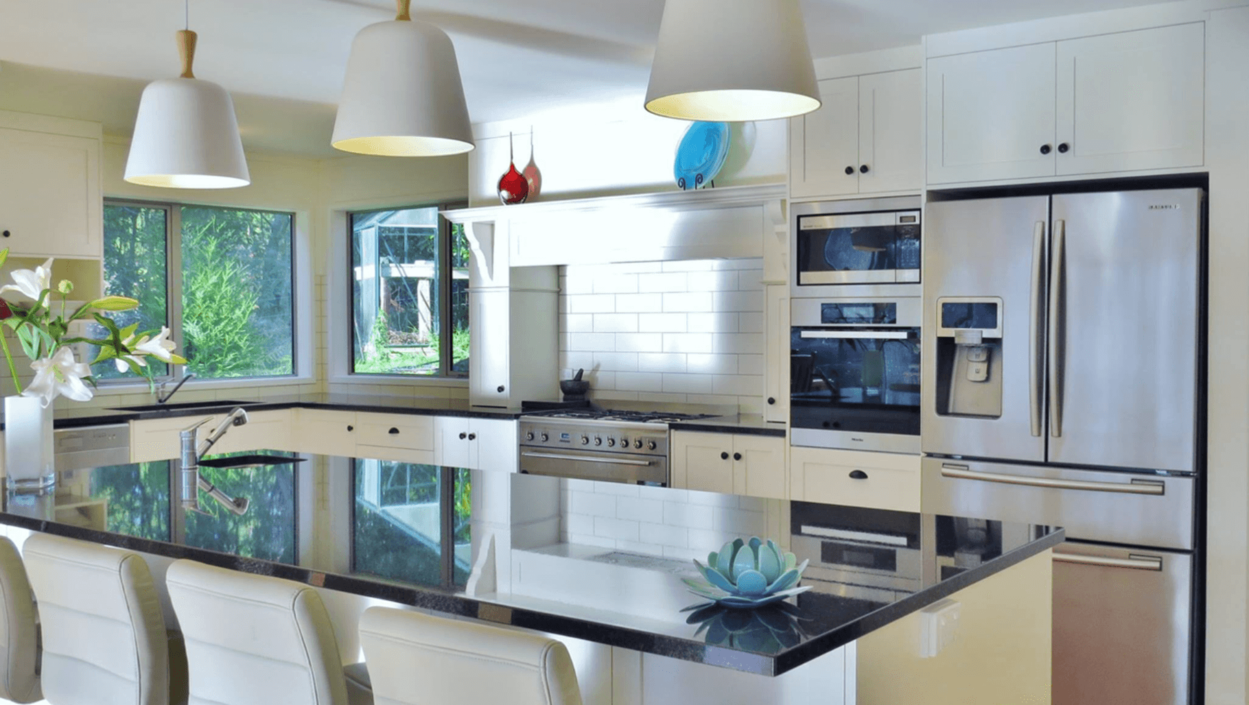 ArchiPro Project Summary - Elegant kitchen renovation featuring satin lacquered shaker style doors and Labrador black granite bench tops in a newly built extension of a charming country home in Plimmerton.