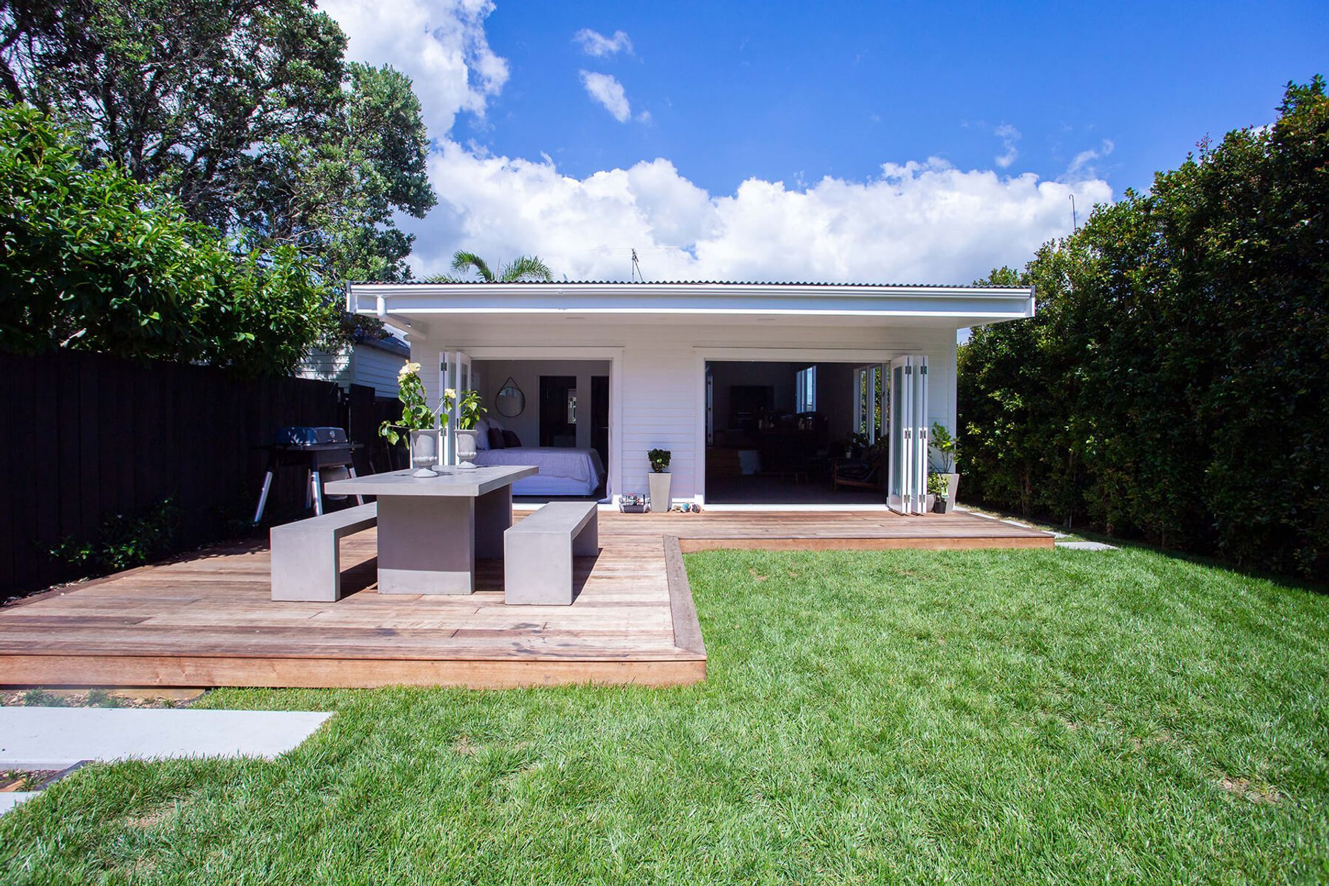 ArchiPro Project Summary - Expansive home extension in Point Chevalier featuring a new master bedroom with ensuite and walk-in wardrobe, along with an open kitchen and living area, complemented by a spacious outdoor deck and patio for enhanced outdoor living.