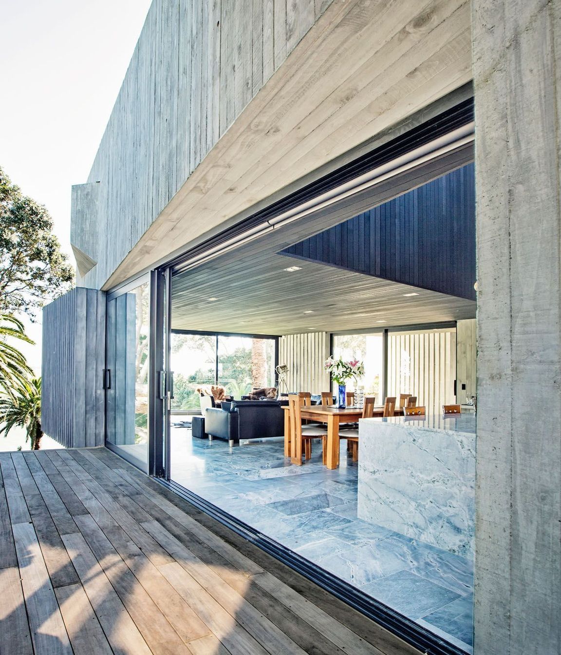 ArchiPro Project Summary - The Point Chevalier House features eco-friendly design, hardwood flooring, and a serene atmosphere with palm trees.