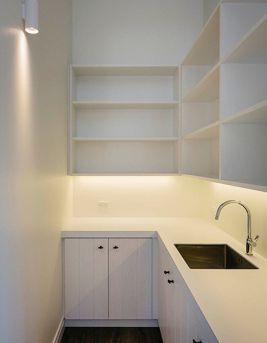 ArchiPro Project Summary - A sophisticated contemporary black and white architect-designed new build in Point Wells, featuring impressive details and a relaxed atmosphere.