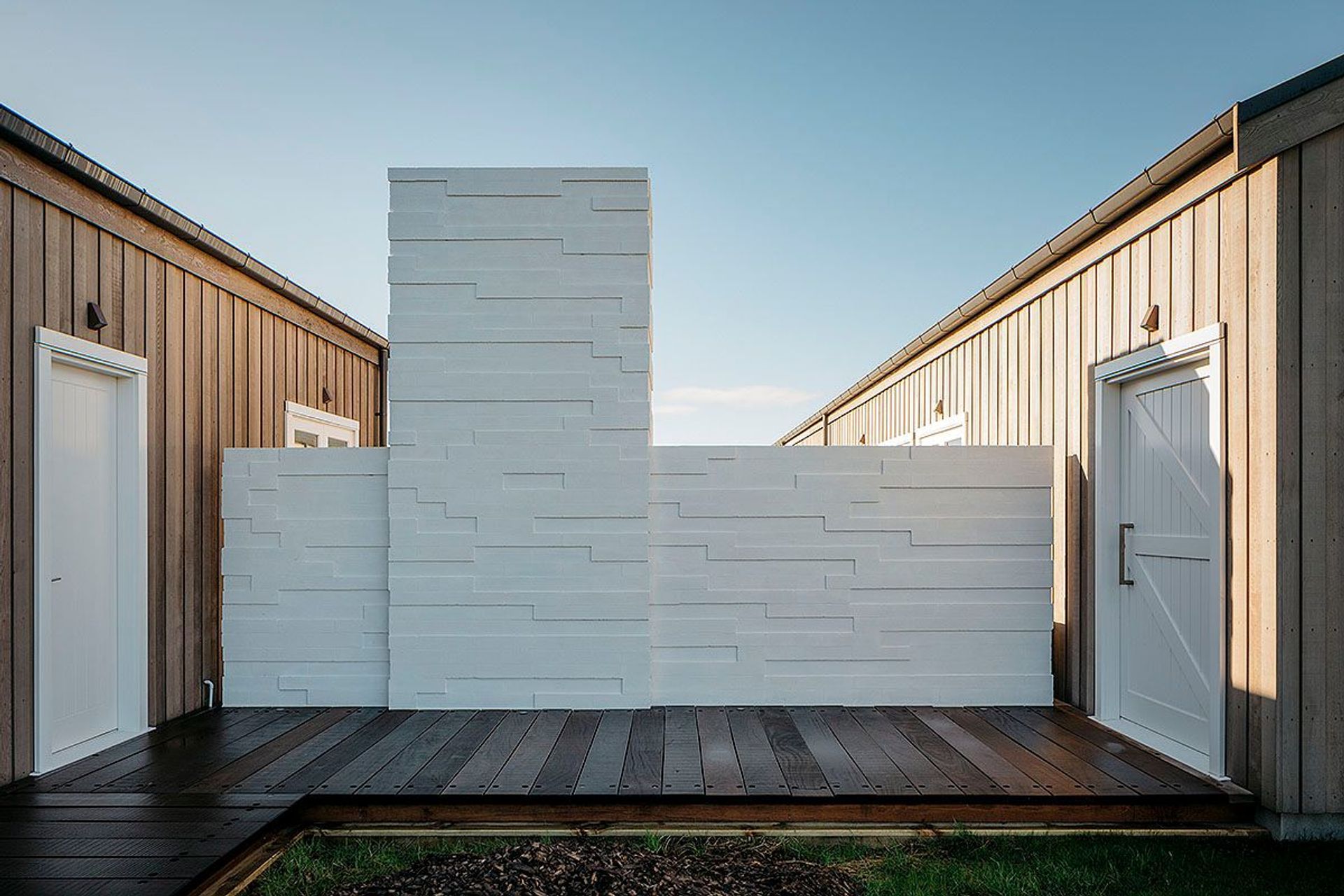 ArchiPro Project Summary - Contemporary cedar-clad home featuring two interconnected pods and a striking block wall, completed in early 2015.