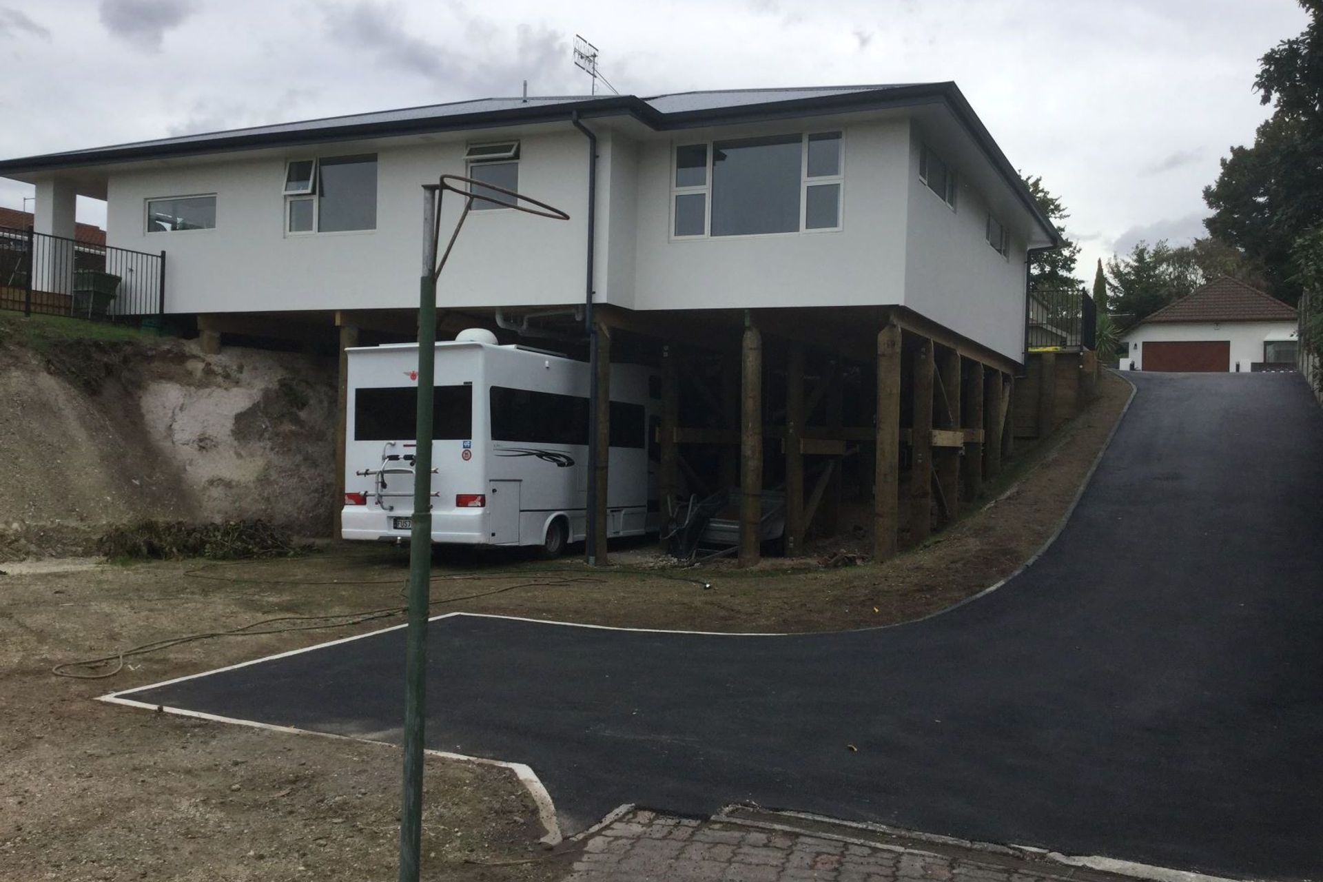 ArchiPro Project Summary - Classic Taupo residence featuring innovative engineering solutions for a challenging site, completed in 2019, with enhanced structural integrity and design accommodating motorhome parking.