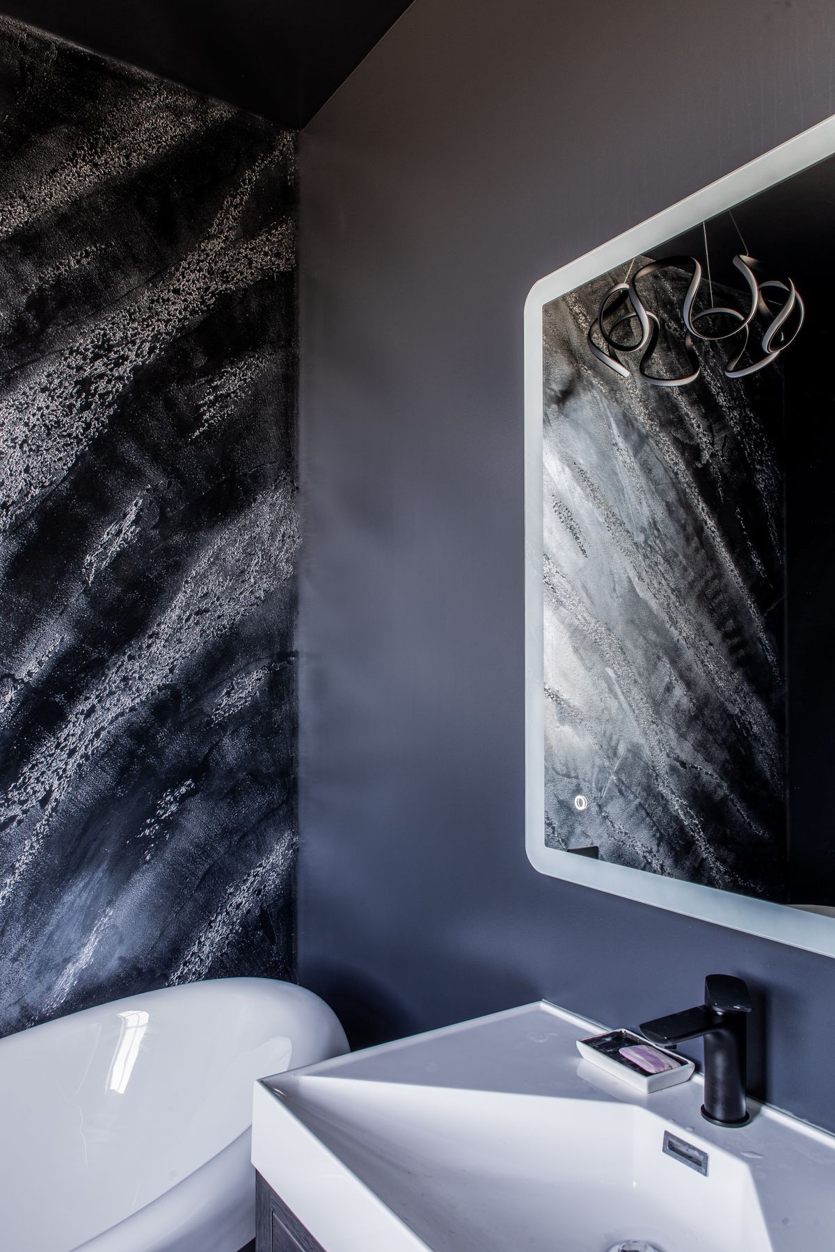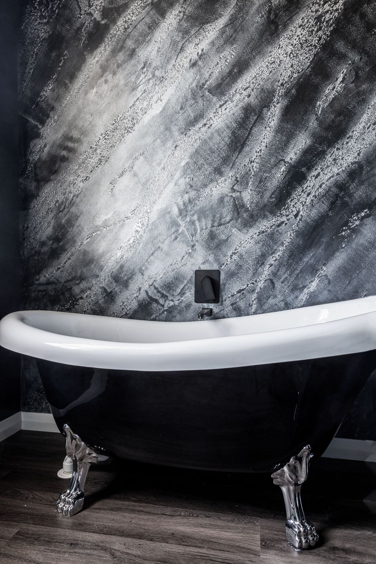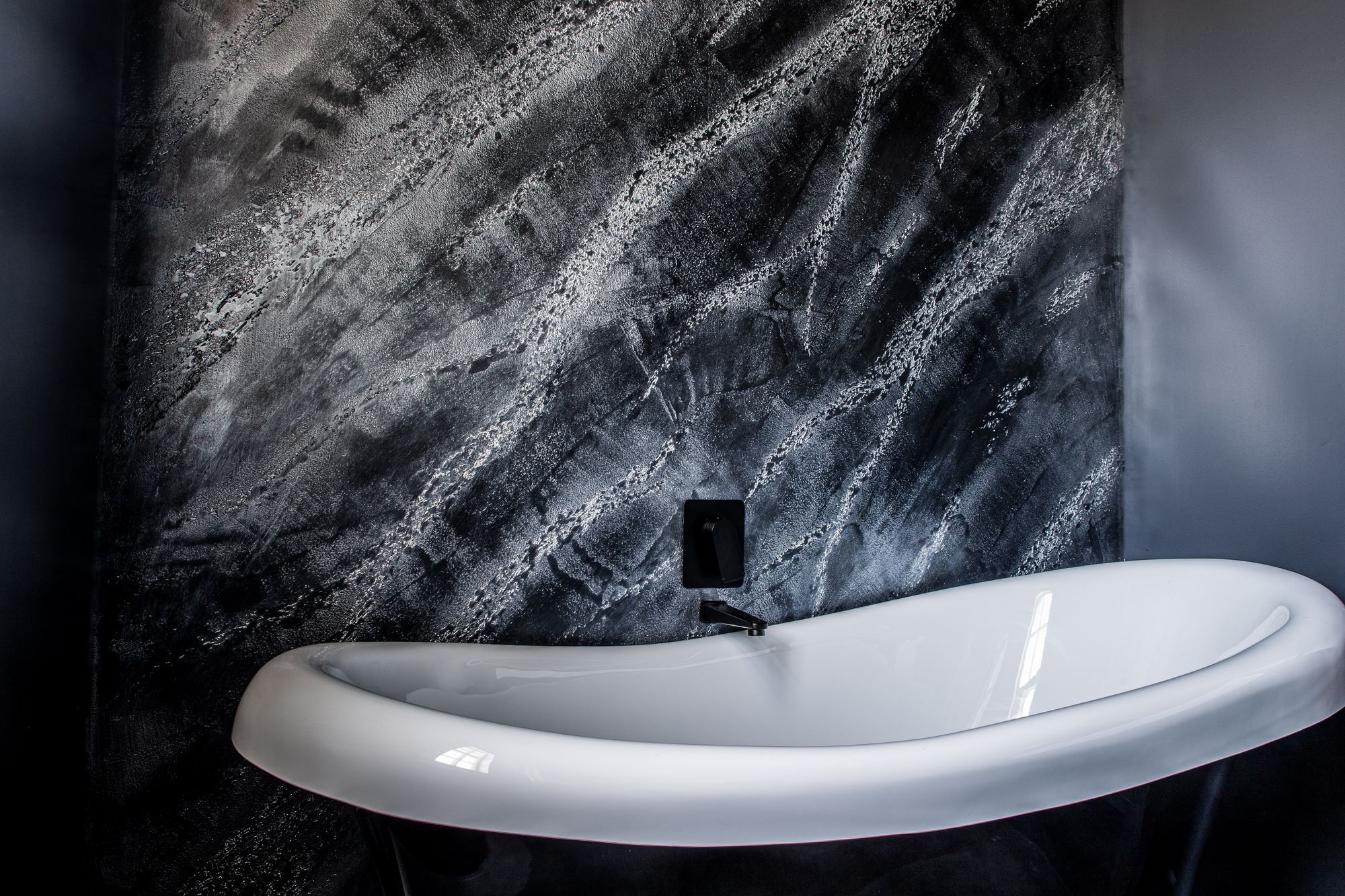ArchiPro Project Summary - Elegant bathroom featuring a stunning split stone effect achieved through polished plaster techniques.