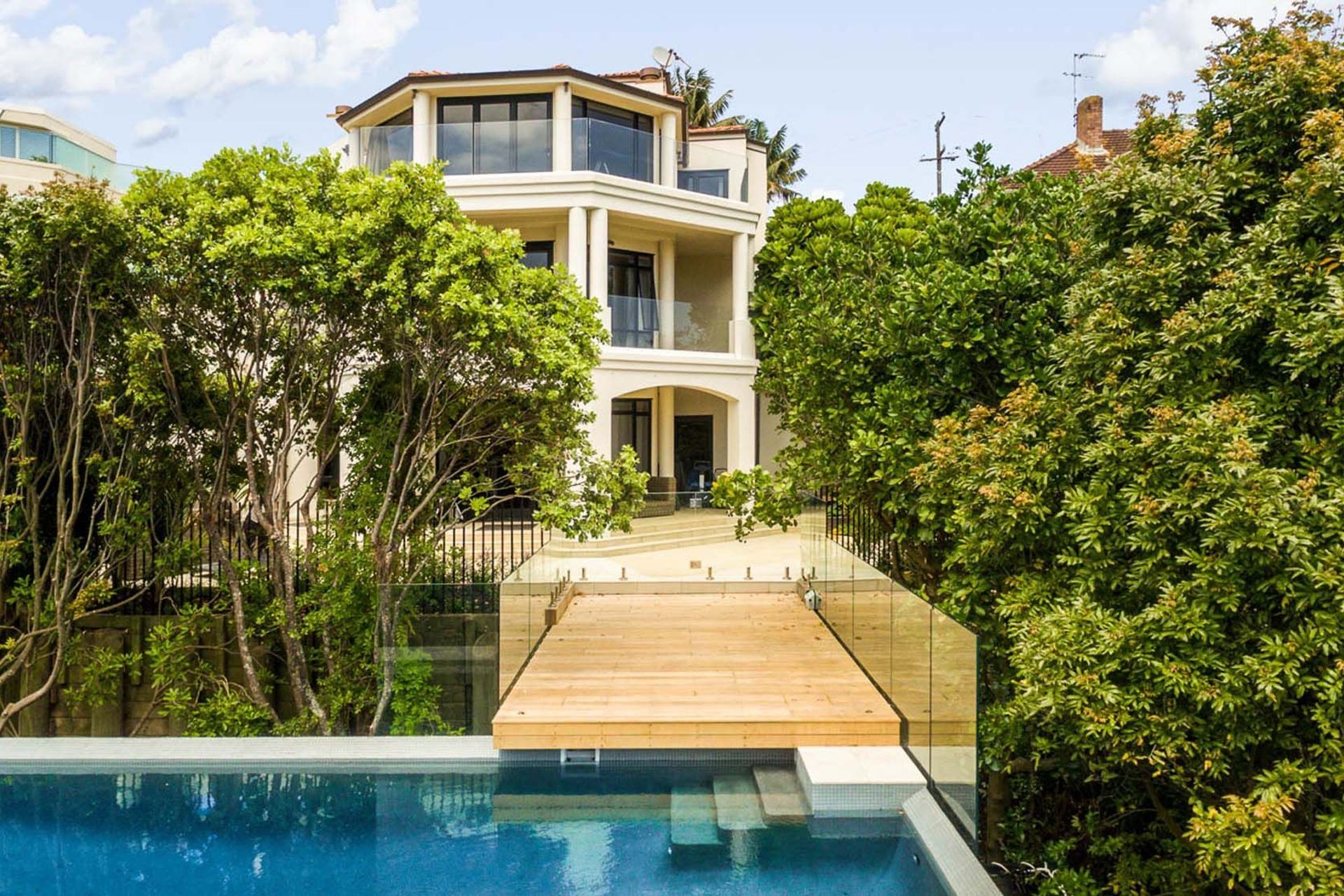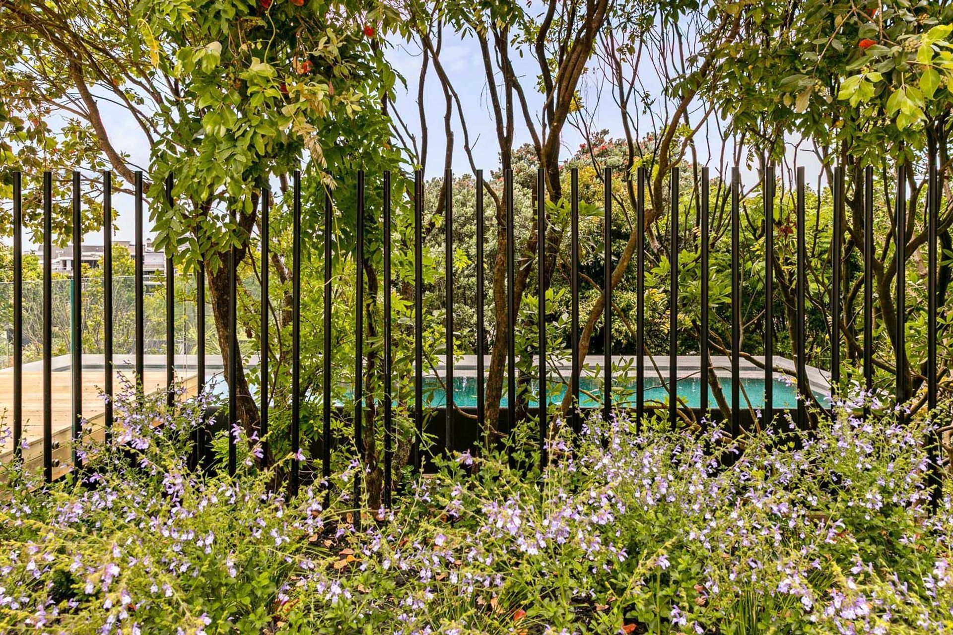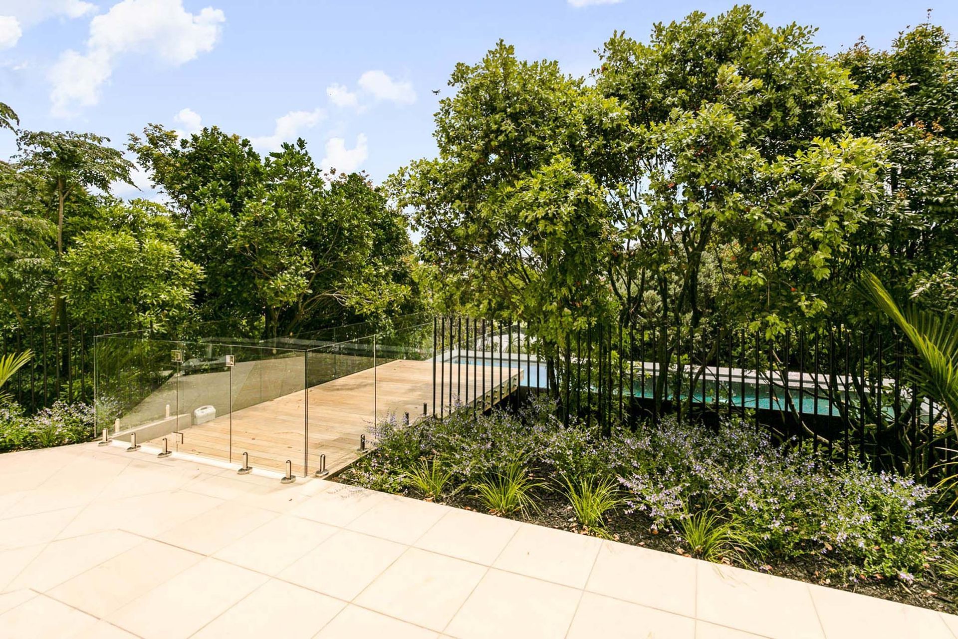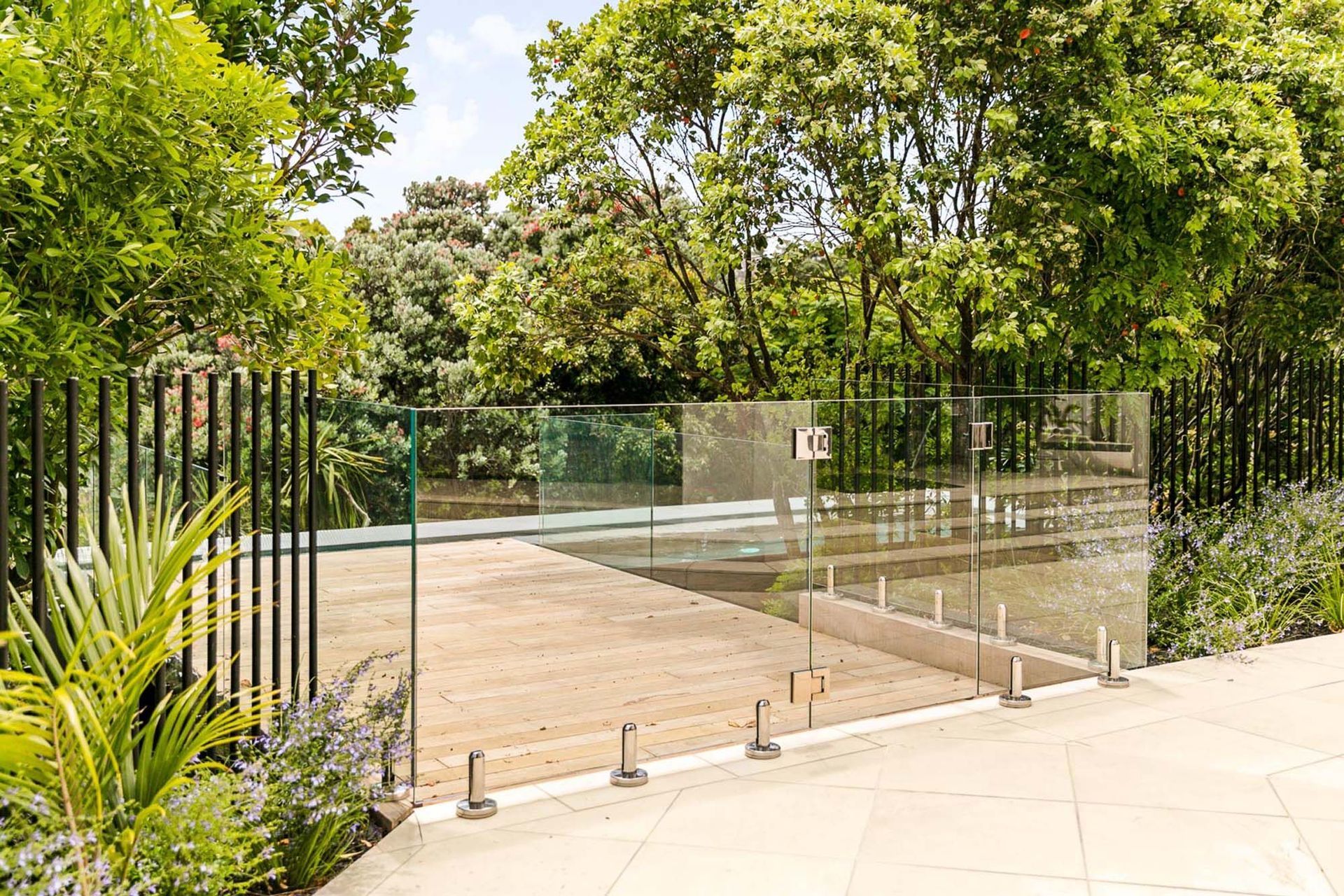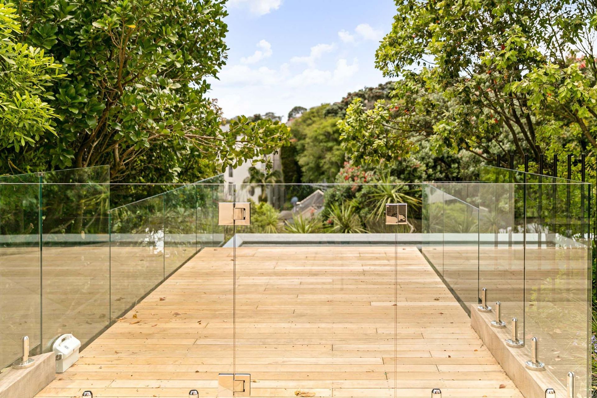 ArchiPro Project Summary - Innovative lap pool construction on a challenging slope, featuring hardwood decking and stunning Auckland harbour views, designed with careful planning and engineering to ensure safety and aesthetic appeal.