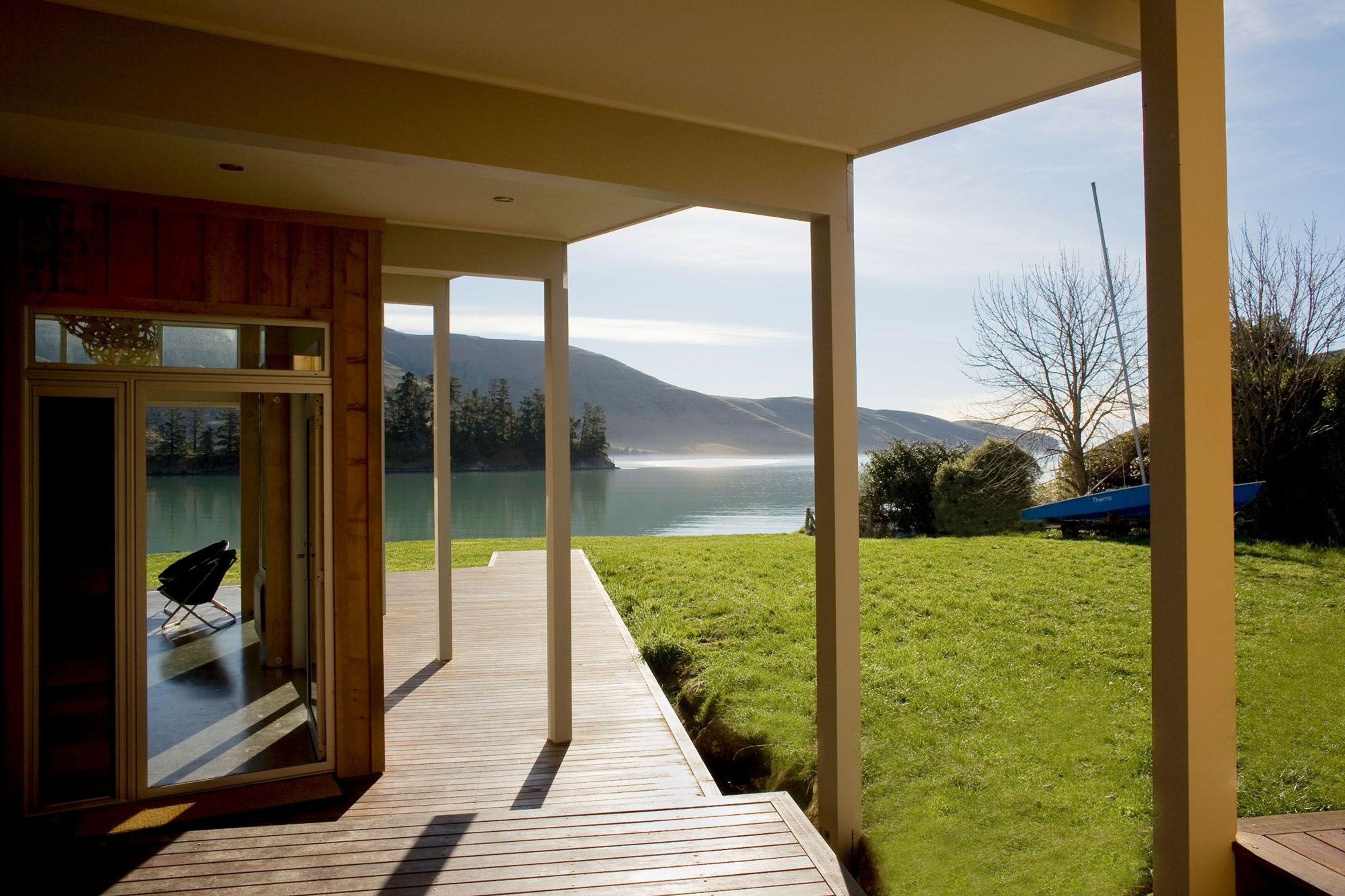 ArchiPro Project Summary - A unique kiwi bach in Port Levy Harbour, featuring separate living and sleeping wings, interconnected by decks, and designed to embrace the natural landscape while promoting an informal, relaxed holiday experience.