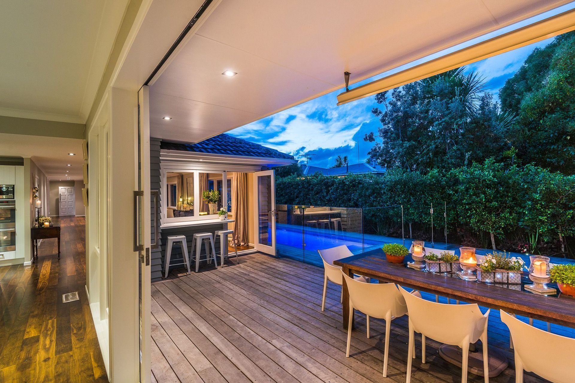 ArchiPro Project Summary - A beautifully extended 1970s weatherboard home in Remuera, featuring enhanced outdoor living spaces, a new kitchen, and an indoor/outdoor bar, all while preserving the original charm and optimizing privacy for luxurious poolside entertaining.