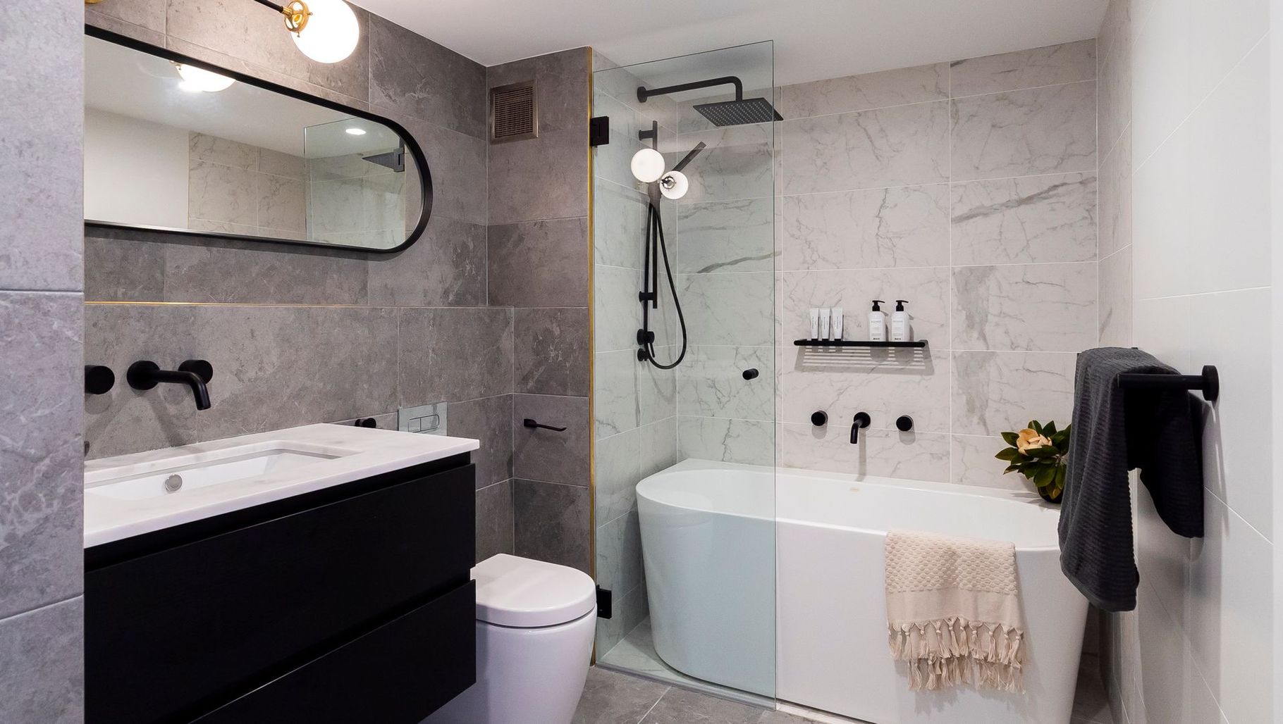 ArchiPro Project Summary - Comprehensive bathroom renovation in Potts Point, featuring a space-efficient layout designed by Sweijer Design, integrating laundry facilities for enhanced functionality and modern aesthetics.