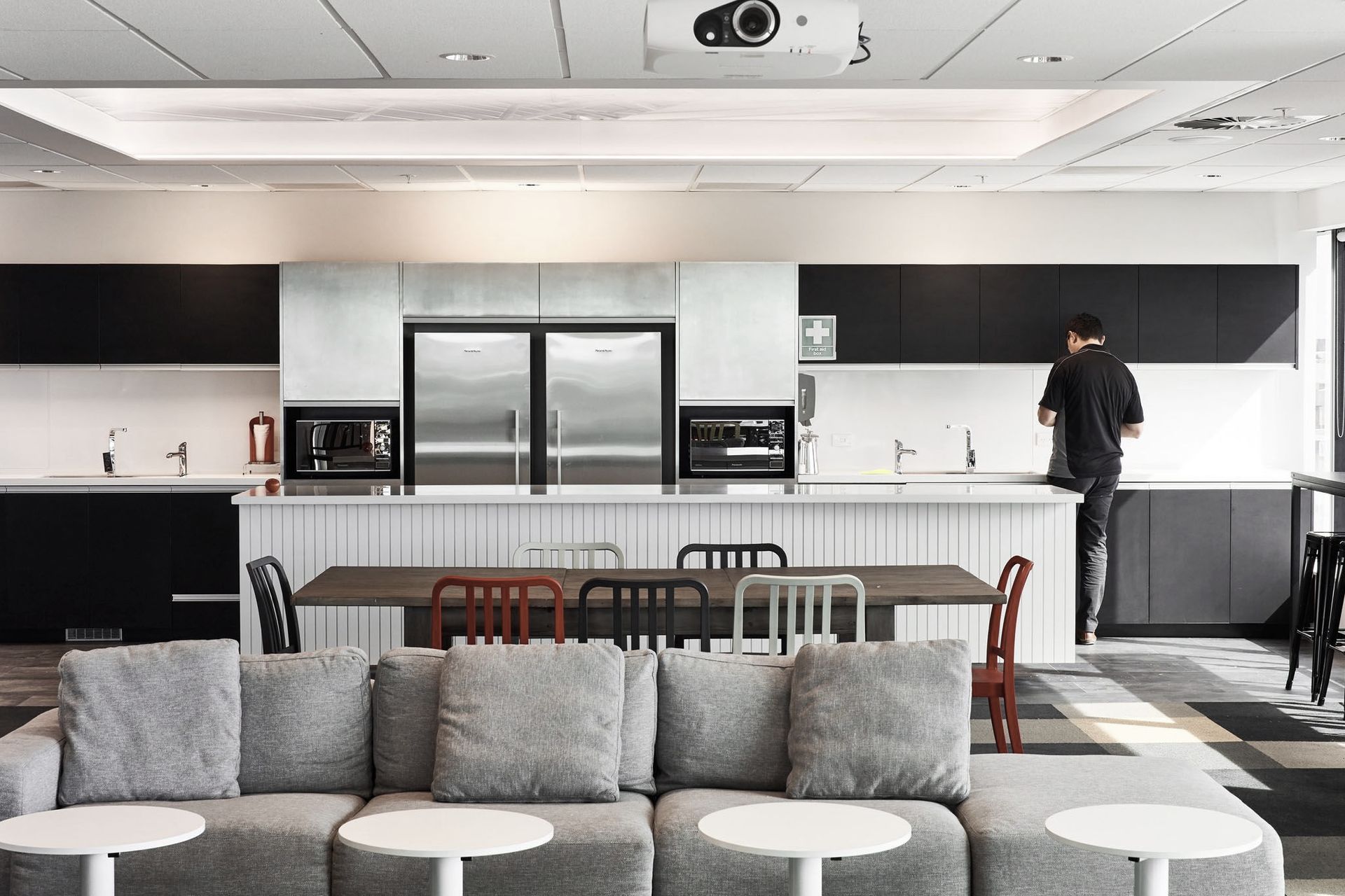 ArchiPro Project Summary - A collaborative and inviting workspace designed for Powell Fenwick, featuring a relaxed atmosphere and strategic layout elements that enhance connectivity and engagement throughout the environment.