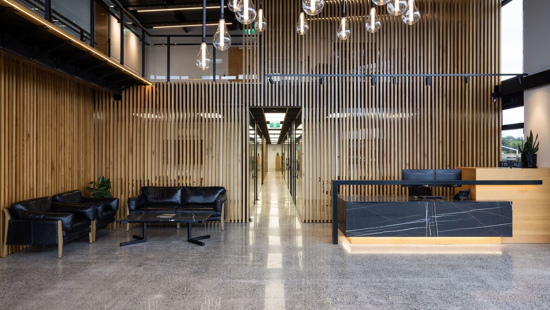 ArchiPro Project Summary - Refurbishment of Pragma Homes' Hamilton offices featuring solid American Oak elements, designed to enhance collaboration and employee well-being while maximizing natural light.