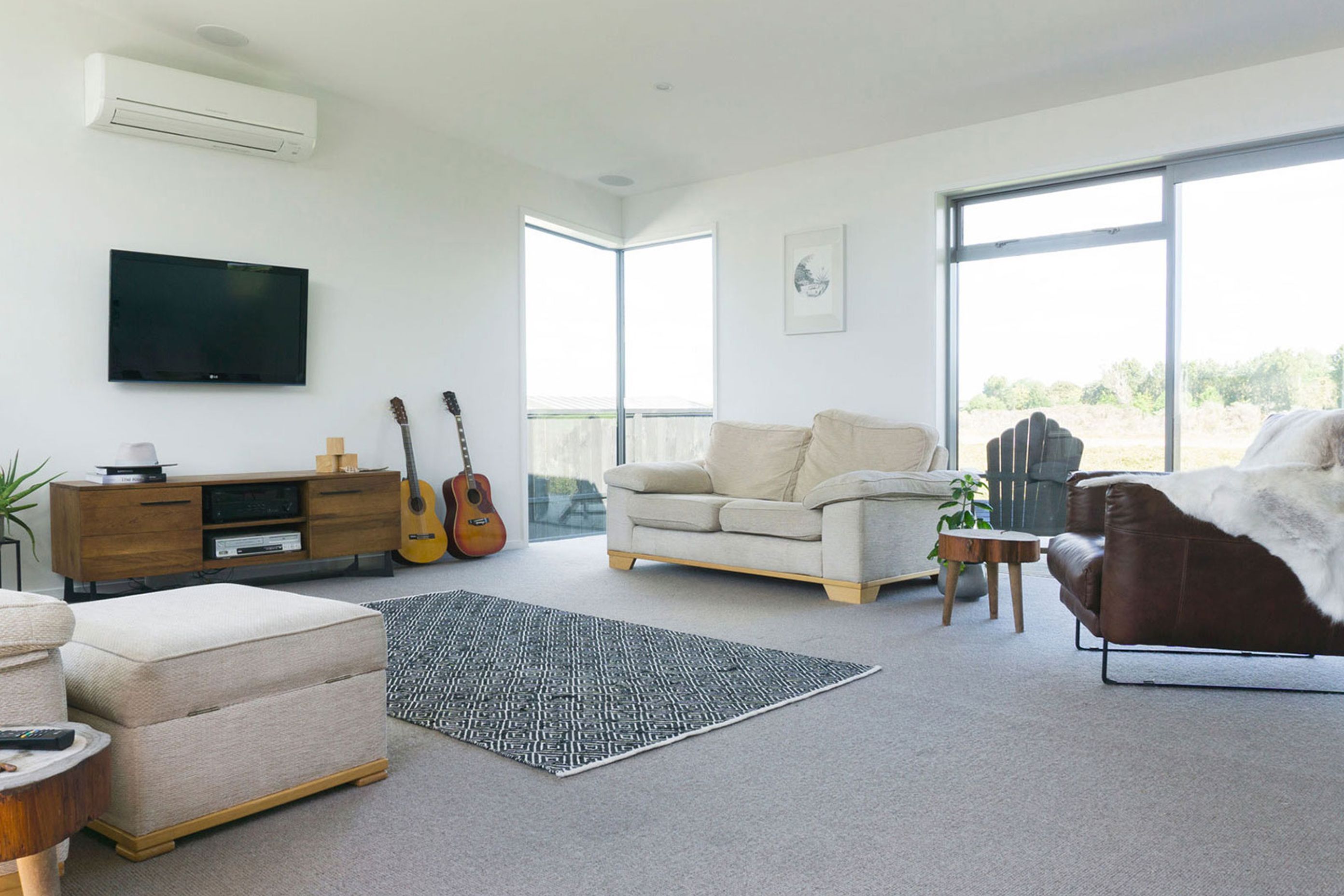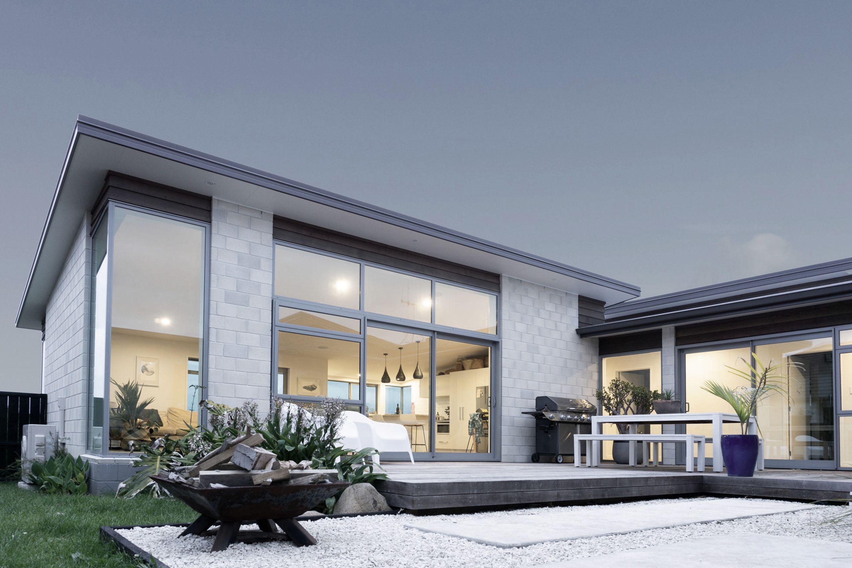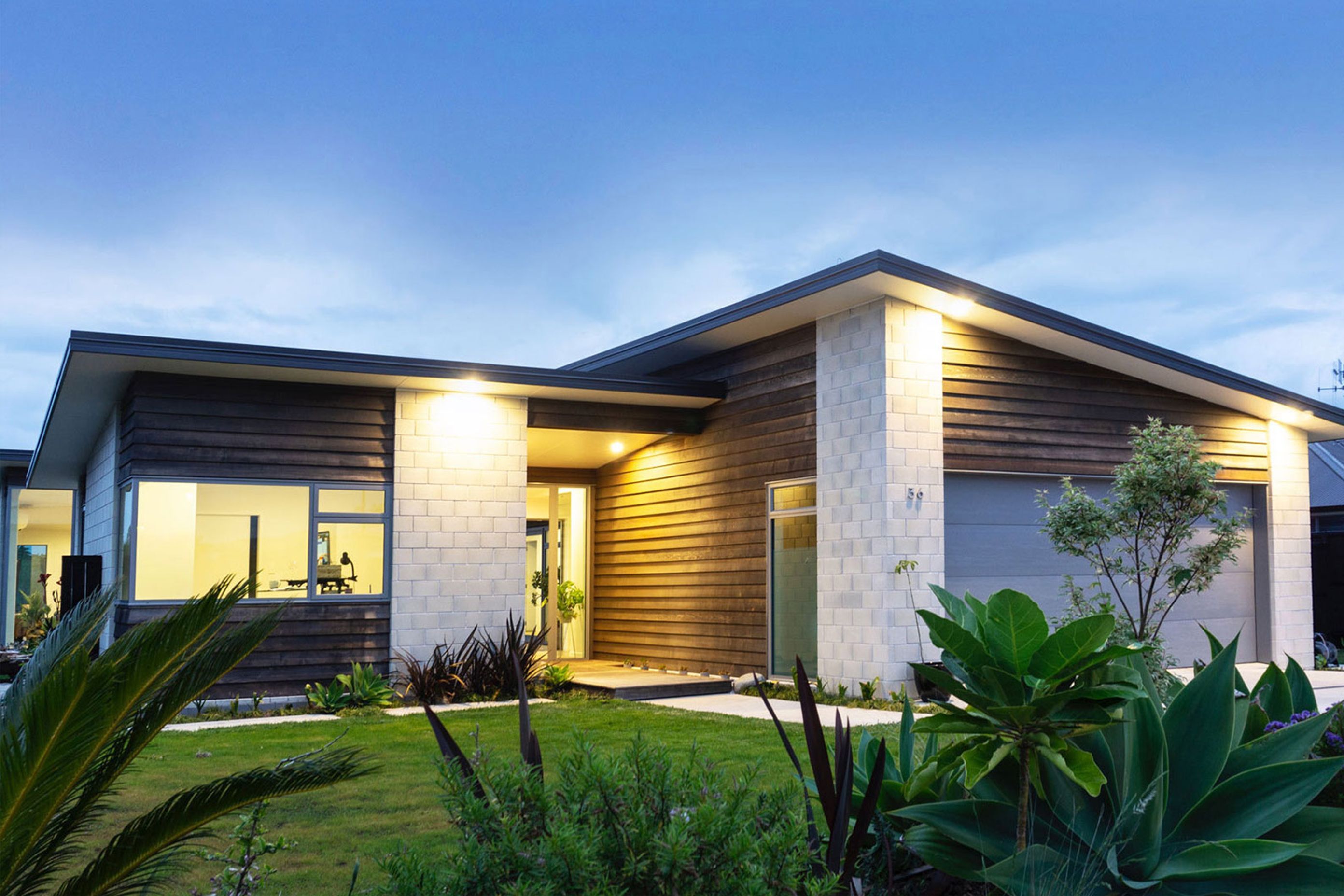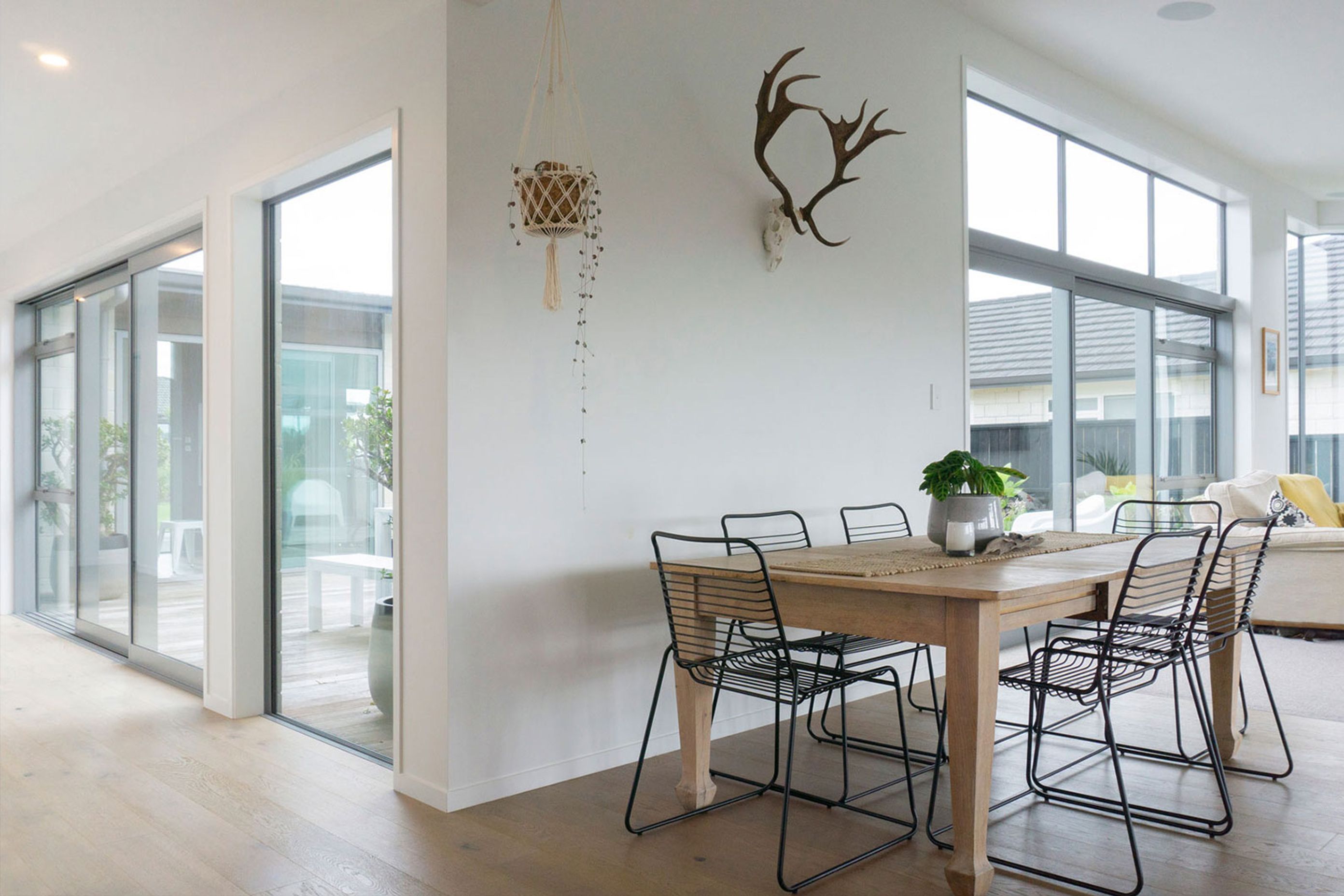 ArchiPro Project Summary - Coastal-inspired architectural home featuring 4 bedrooms, 3 bathrooms, and 2 car garaging, designed with high-stud ceilings and expansive blue-tint windows to enhance natural light and serene estuary views.