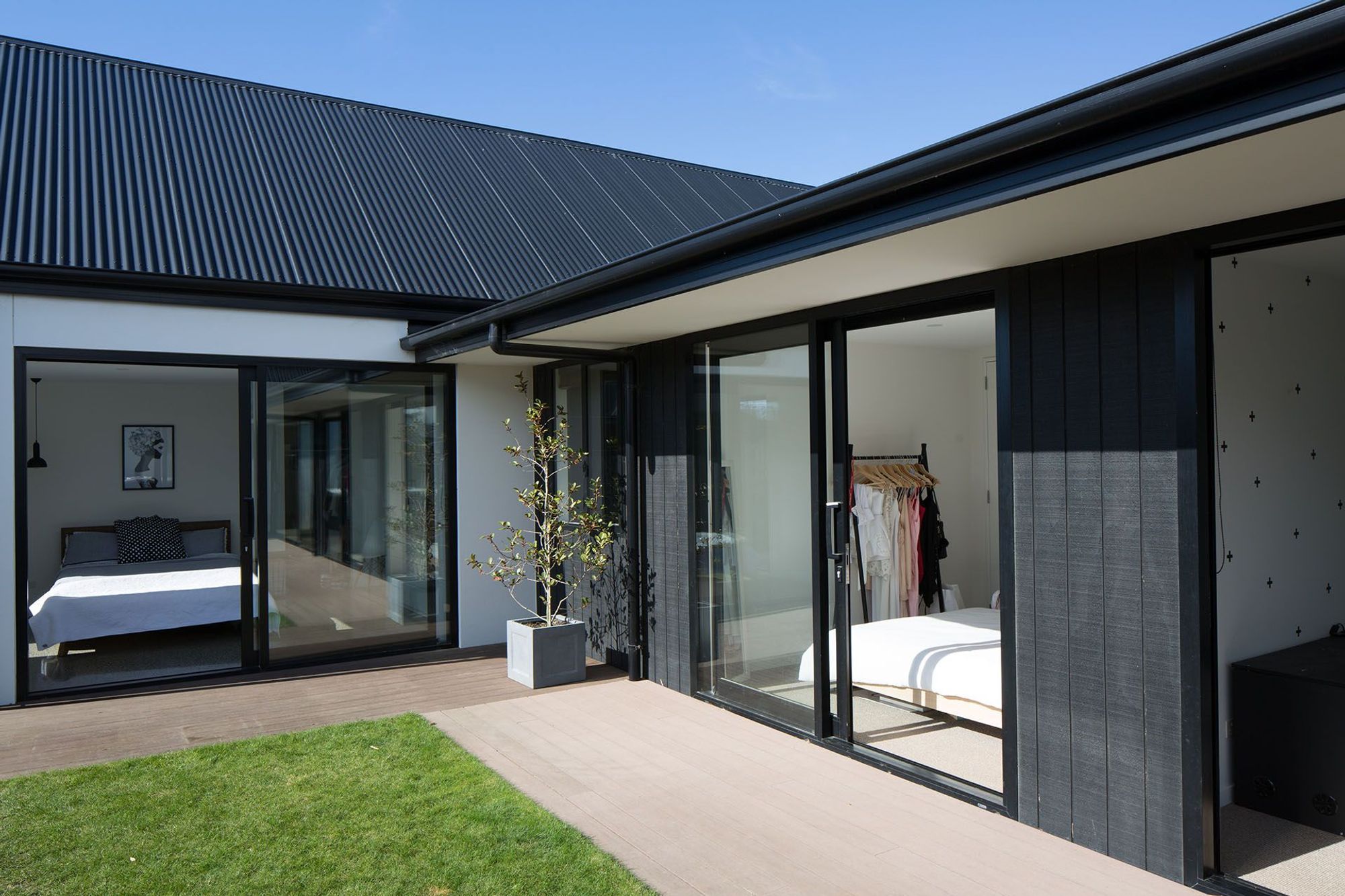ArchiPro Project Summary - Contemporary H-shaped residence in Christchurch featuring open-plan living, four bedrooms, and energy-efficient design elements.
