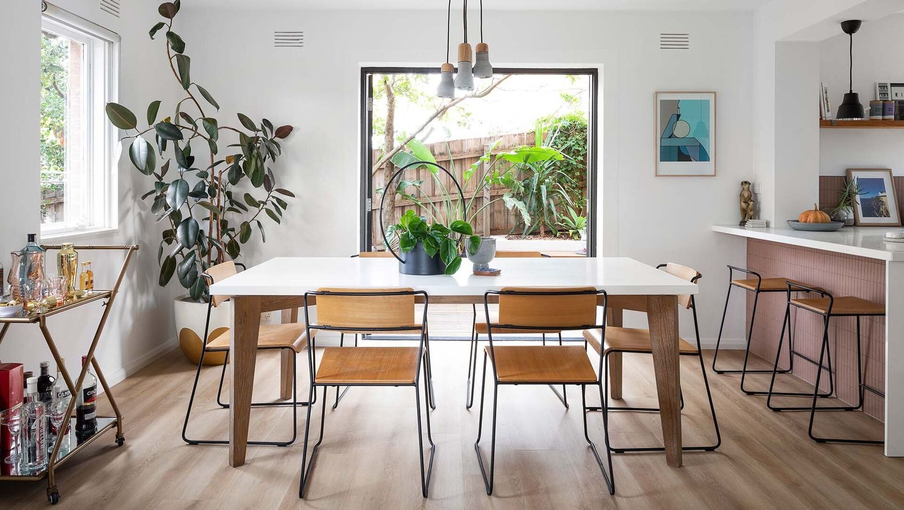 ArchiPro Project Summary - Project Heidelberg features modern design with elegant furniture and flooring, creating a warm atmosphere for dining and relaxation.