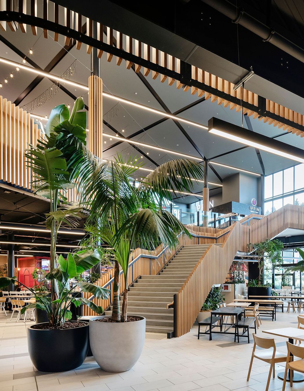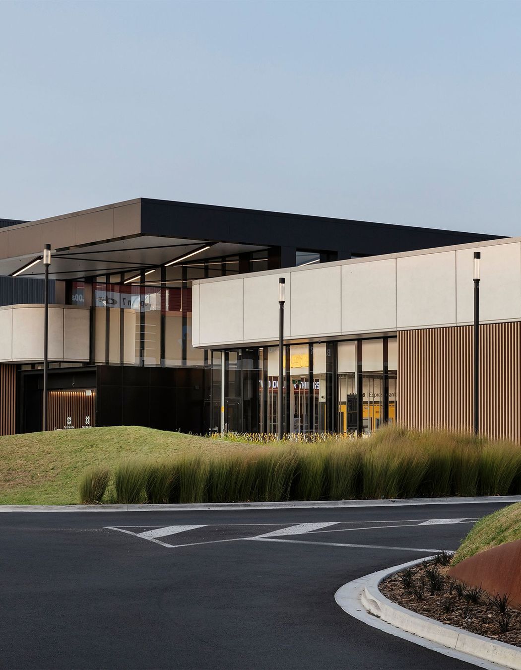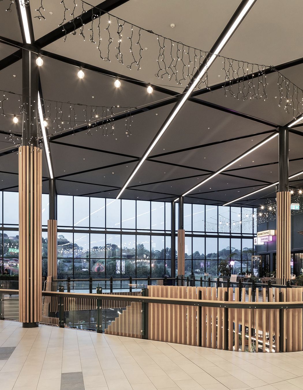 ArchiPro Project Summary - Tauranga Crossing, a 35,000m2 regional shopping centre in Tauriko, designed by Warren and Mahoney, features Western Hemlock battens for interior stability and EverGreen Radiata Pine for exterior fencing, combining aesthetics with cost-effectiveness.