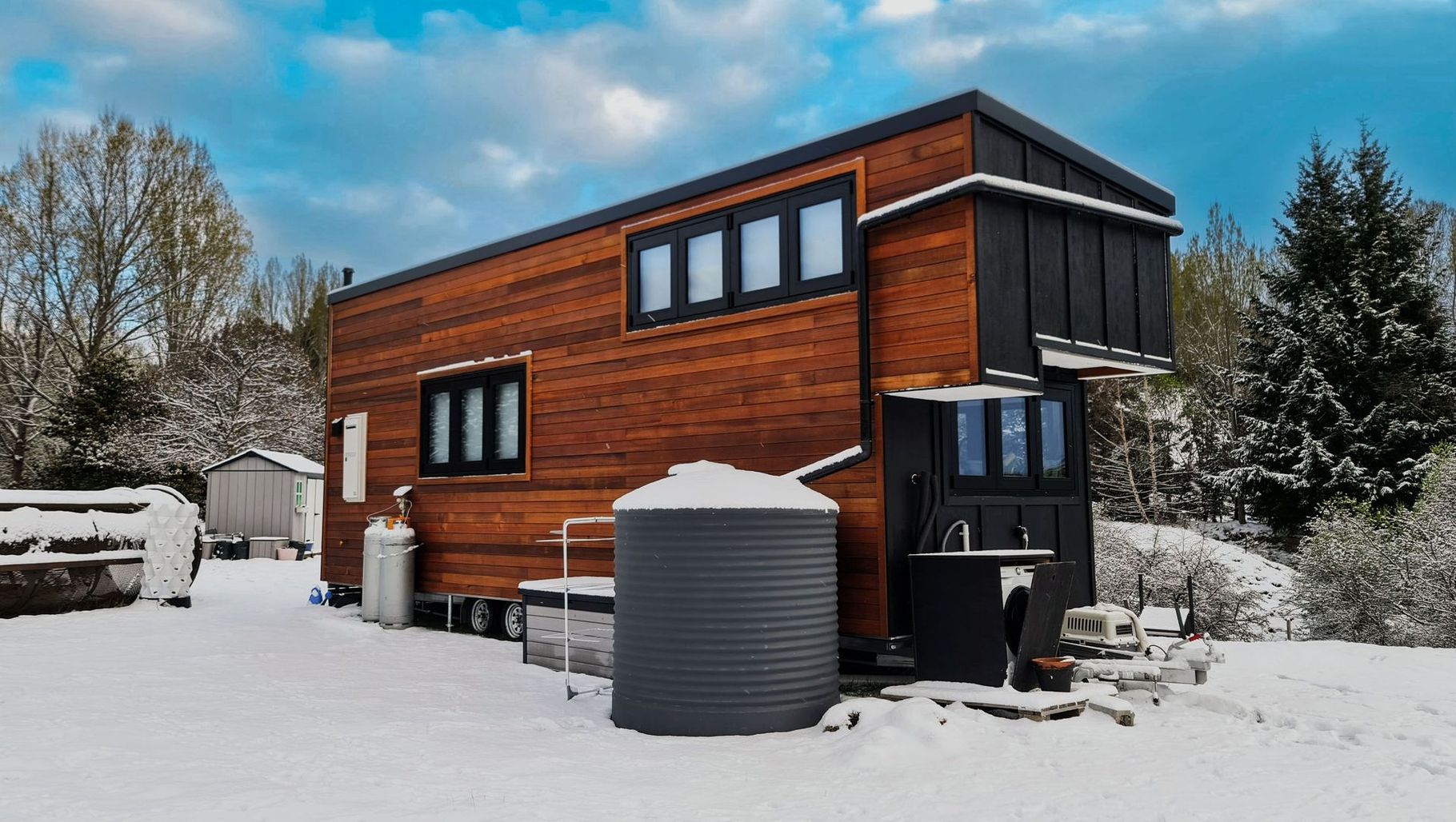 ArchiPro Project Summary - Promax's 3,000 litre ENDURO tank supports Leon and Jariya's tiny home in Queenstown, providing a reliable rainwater harvesting solution that enhances sustainability while ensuring access to water throughout the year.