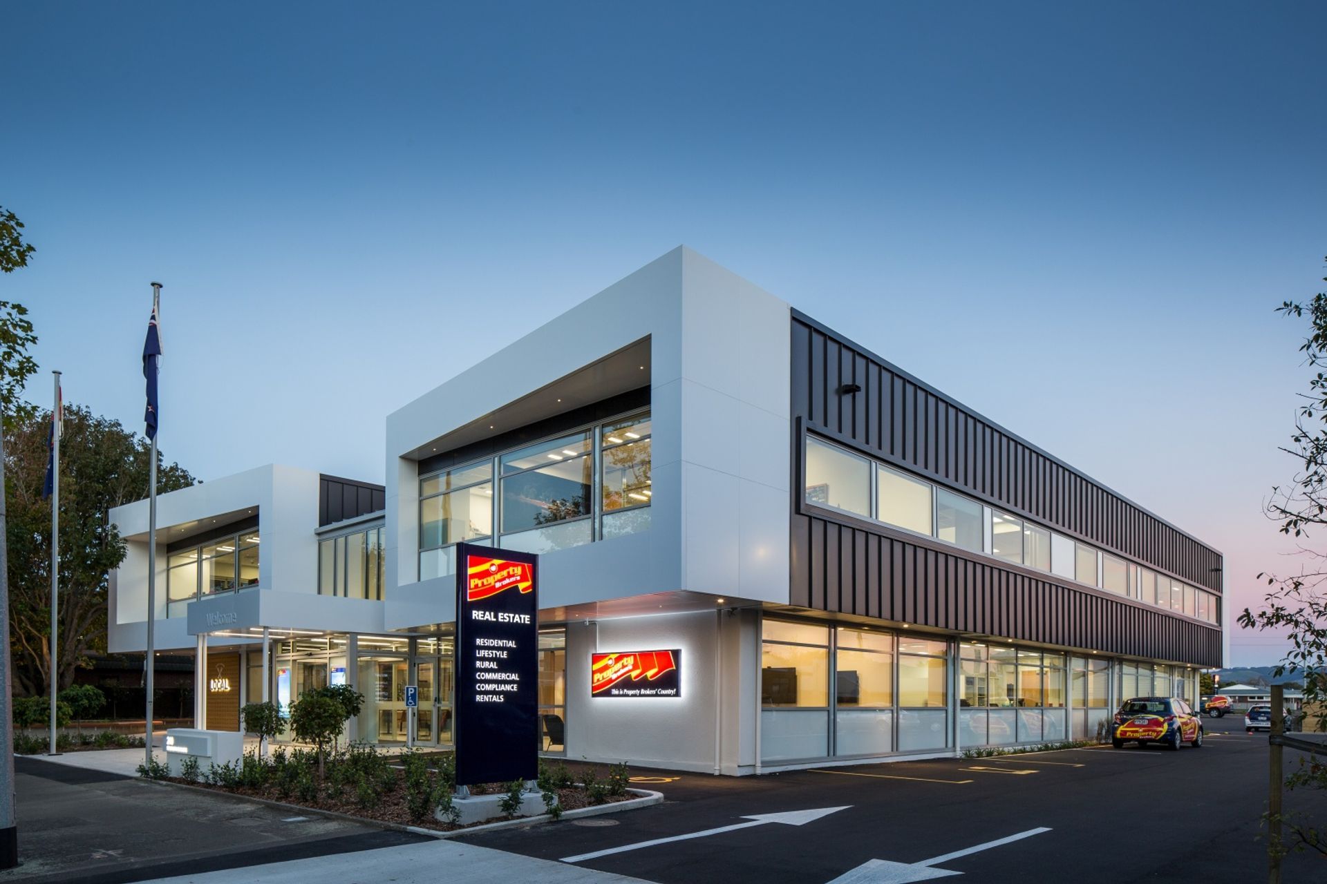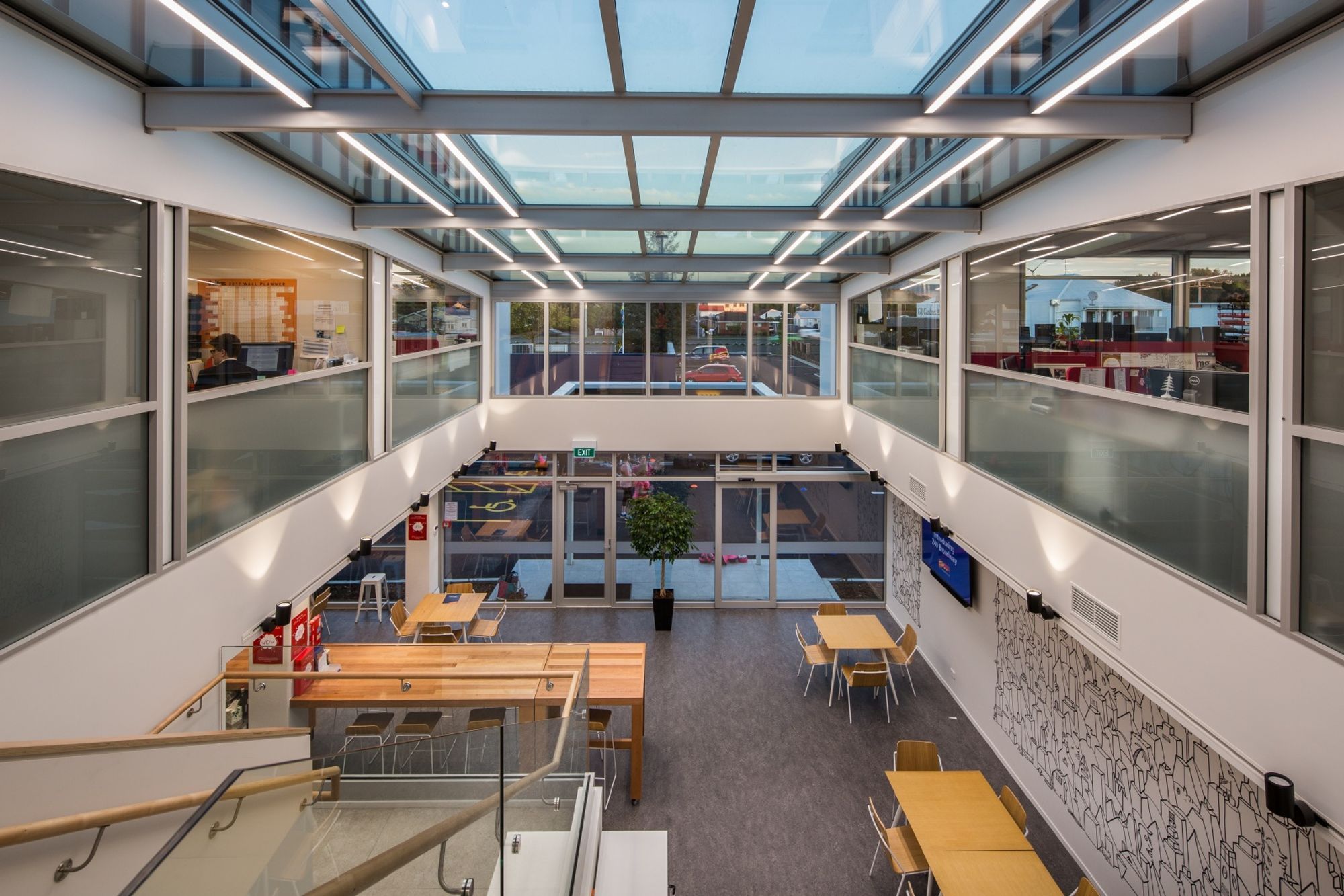 ArchiPro Project Summary - Innovative head office design for Property Brokers, featuring open-plan spaces, collaborative areas, and a public café, fostering a positive workplace culture and enhancing community engagement in Palmerston North.