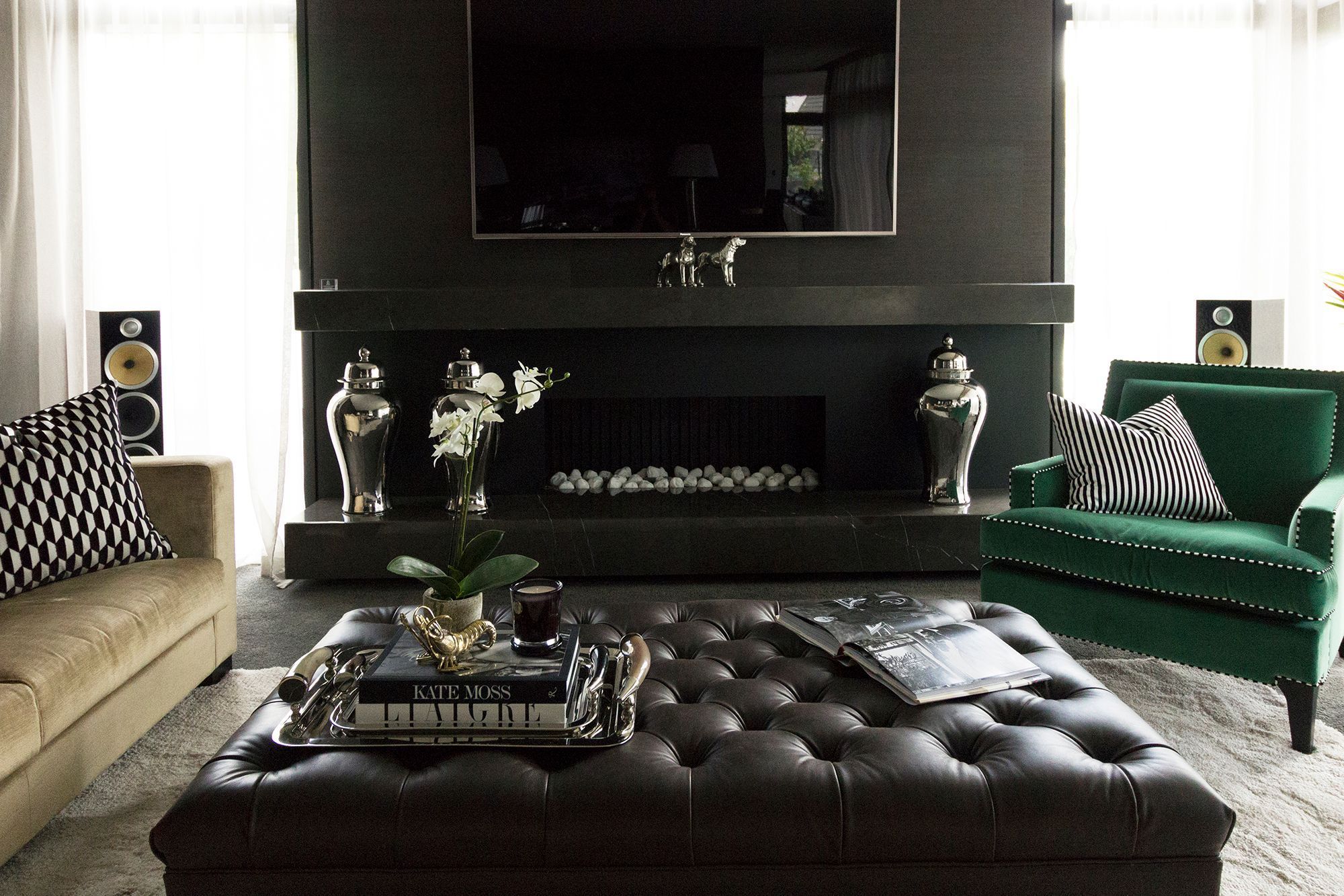 ArchiPro Project Summary - The Prosser project highlights modern interior design with a stylish living room featuring a grey couch, black accents, and elegant furnishings.