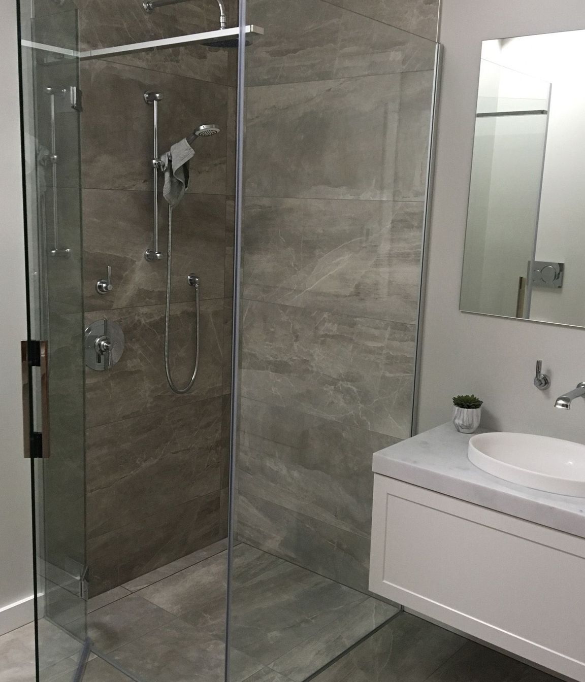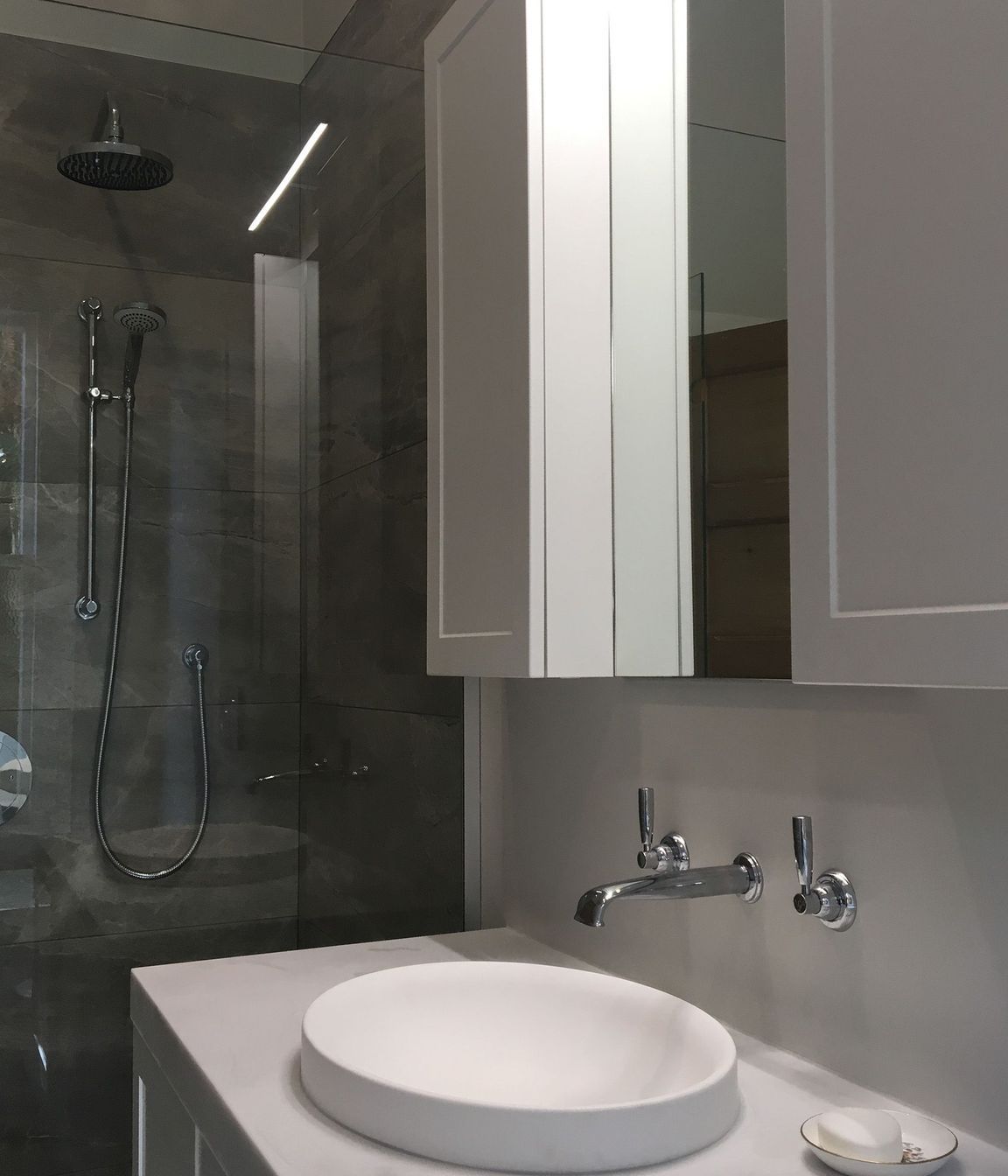 ArchiPro Project Summary - Complete renovation of main ensuite and master bathroom in a 1920's Greenwoods Corner home, featuring heated flooring, Italian ceramic tiles, St Michelle cabinetry, and premium tapware and lighting, ensuring a luxurious finish for the clients' home sale.