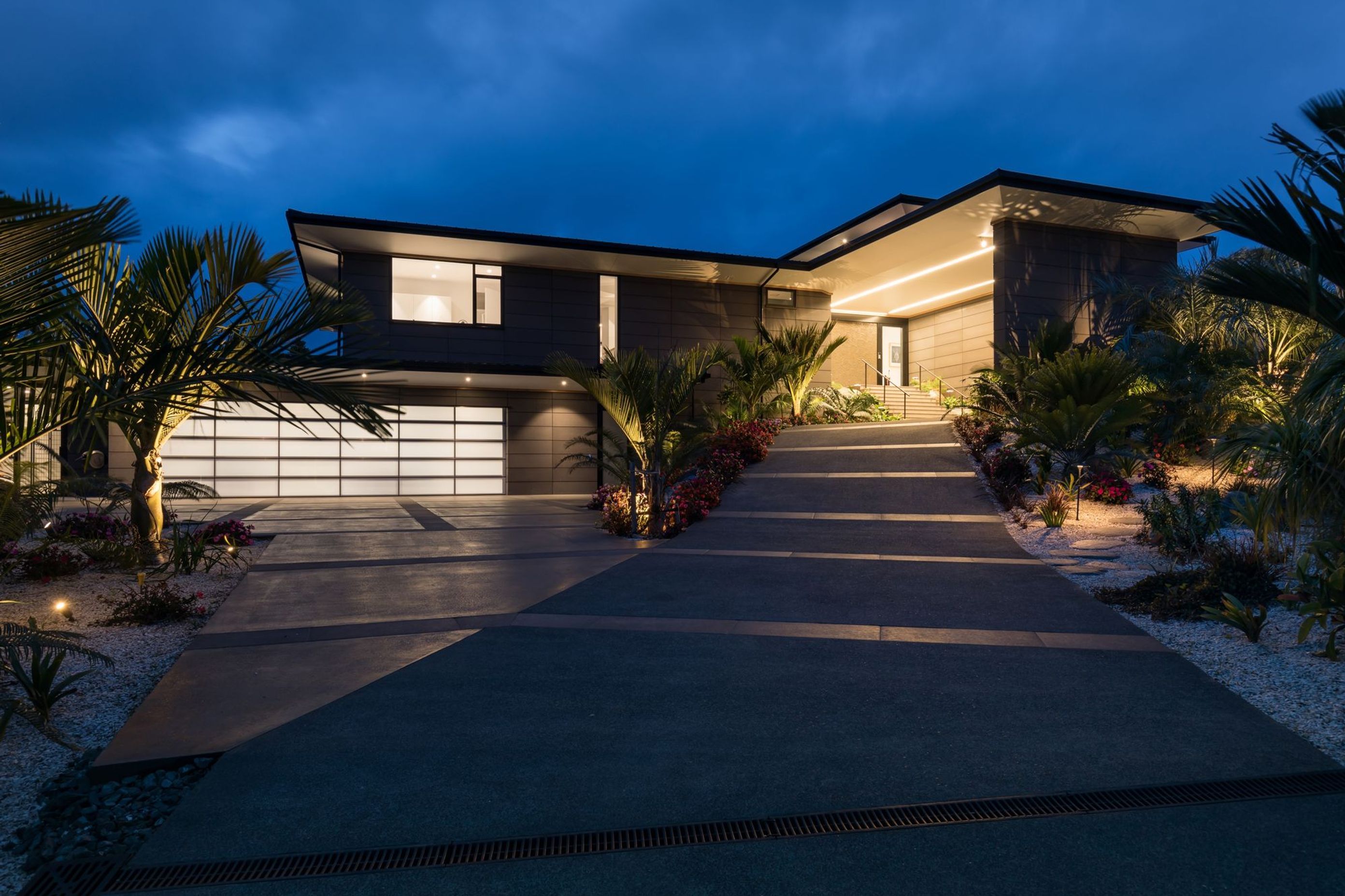 ArchiPro Project Summary - A sophisticated swimming pool project featuring advanced design elements, including an automatic cover, custom swimmers, and eco-friendly sanitation, all contributing to a stunning minimalist aesthetic in the Pukenui home.