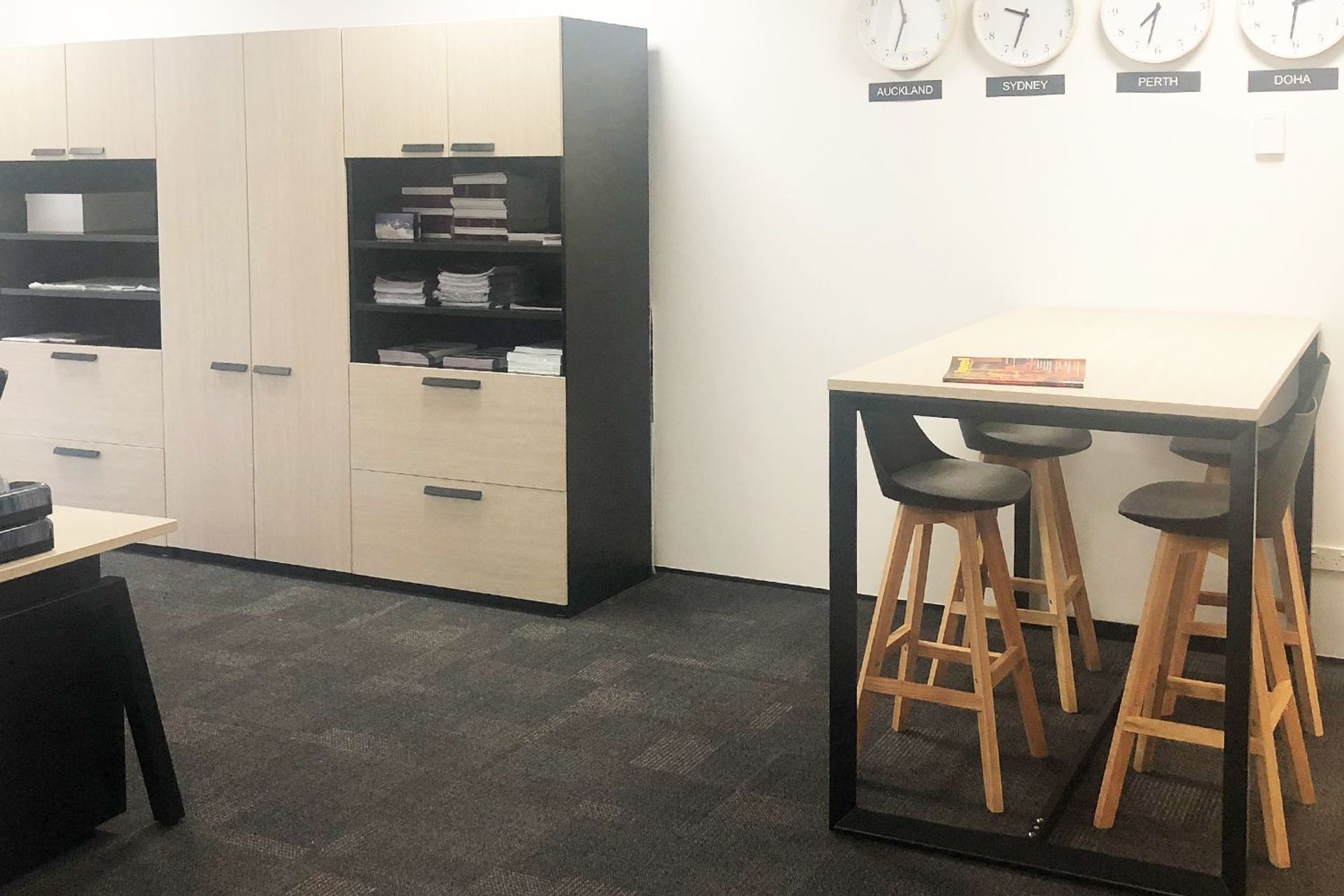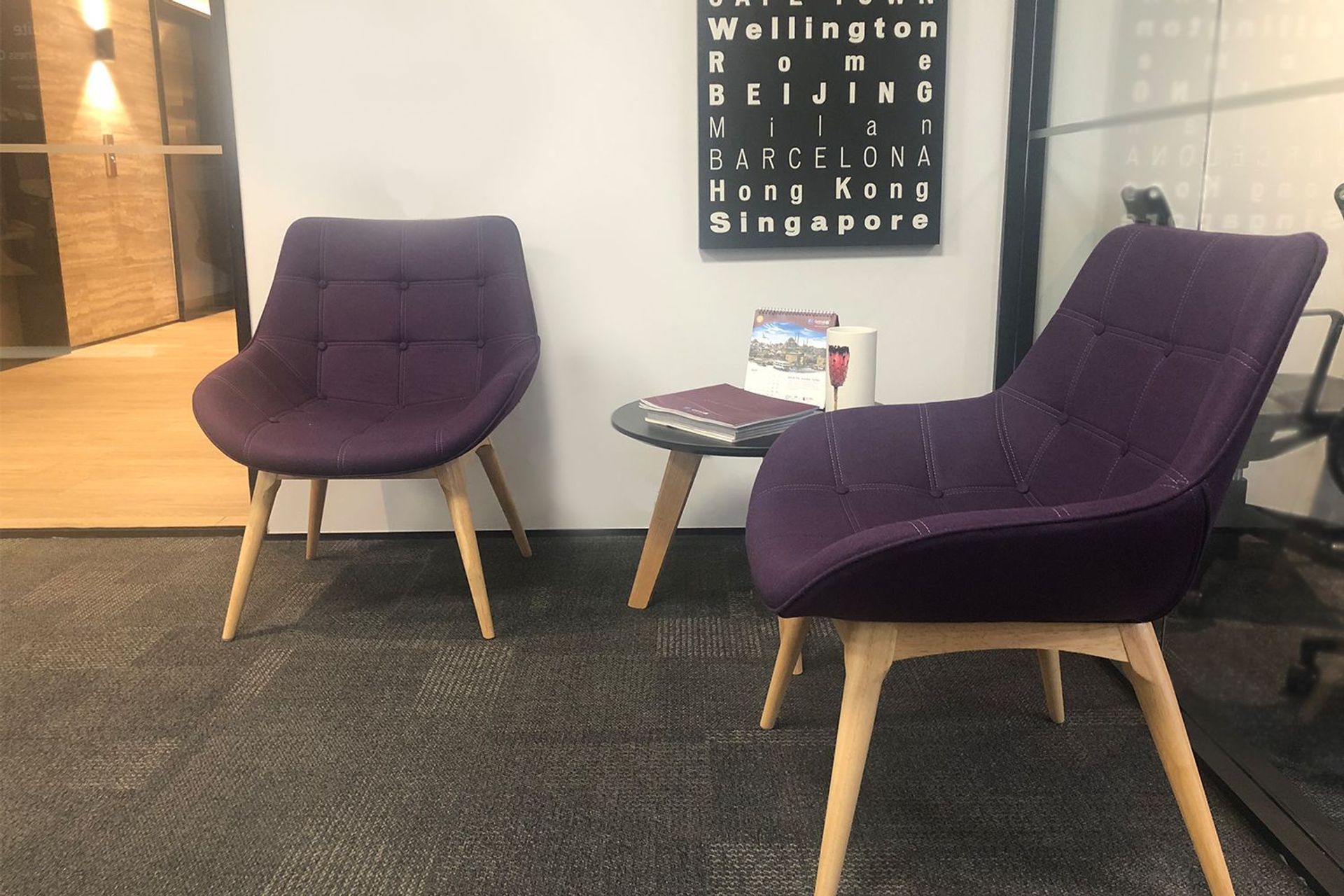 ArchiPro Project Summary - Functional and stylish office fitout for Qatar Airways featuring rich timber grains, warm wool-blend felts, and customized seating solutions to enhance informal meeting areas.