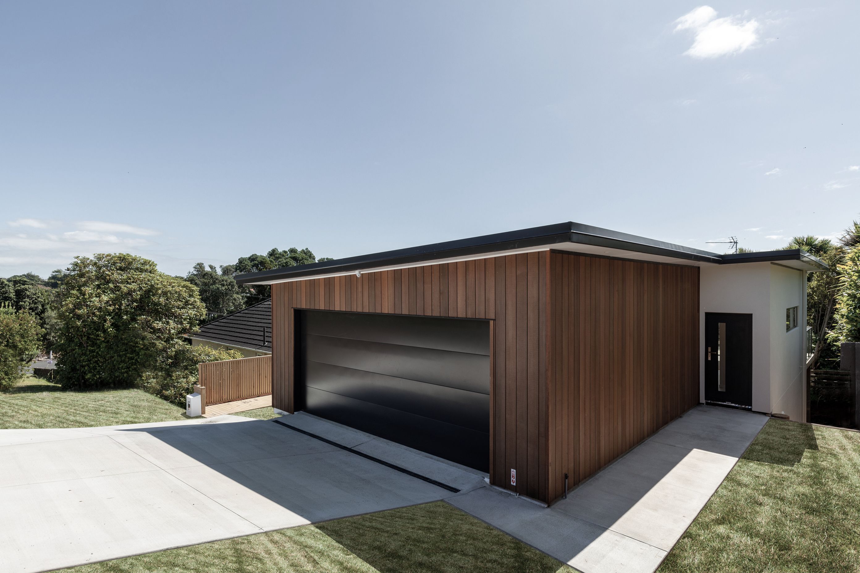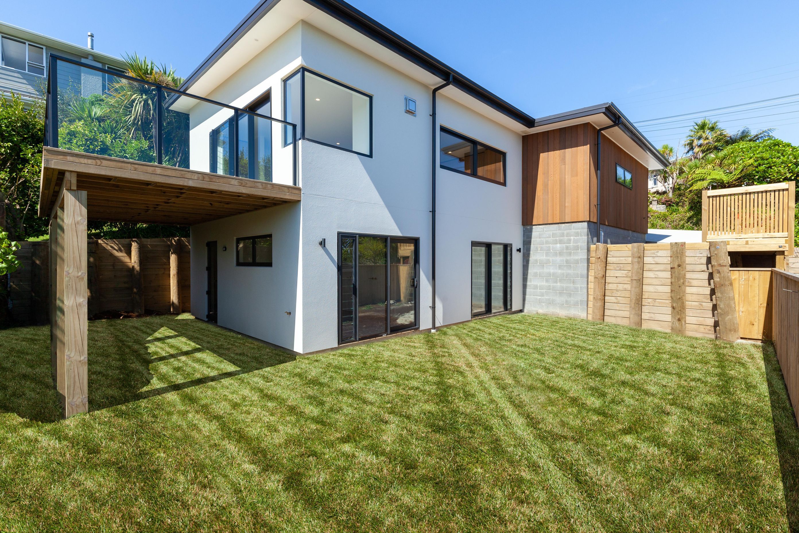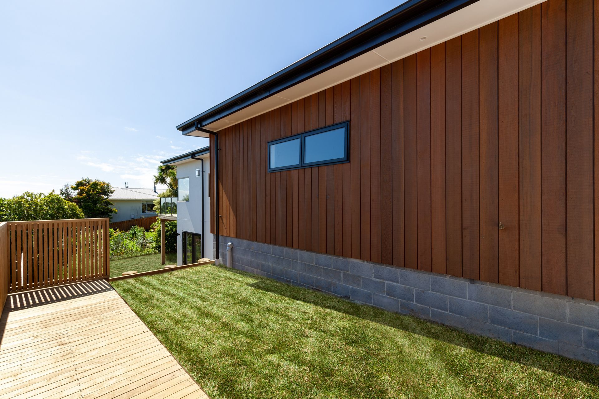 ArchiPro Project Summary - Custom-designed two-storey home featuring vertical cedar weatherboard, open-plan living spaces, and stunning ocean views, built by Location Homes on an elevated block.