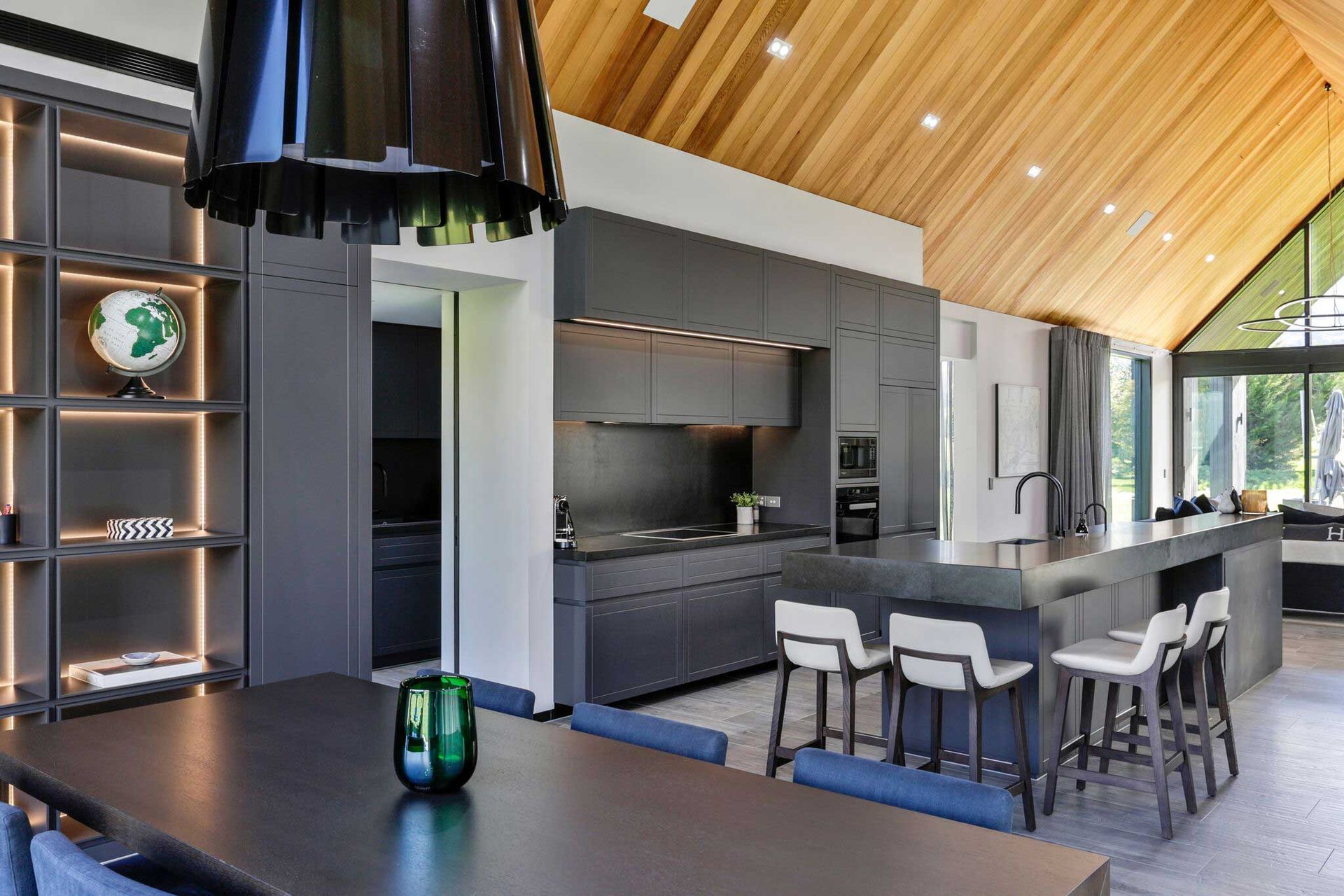 ArchiPro Project Summary - A functional kitchen design that seamlessly integrates into a family home, featuring a spacious galley layout, classic detailing, and a harmonious blend of contemporary materials, textures, and forms to enhance the dining experience.