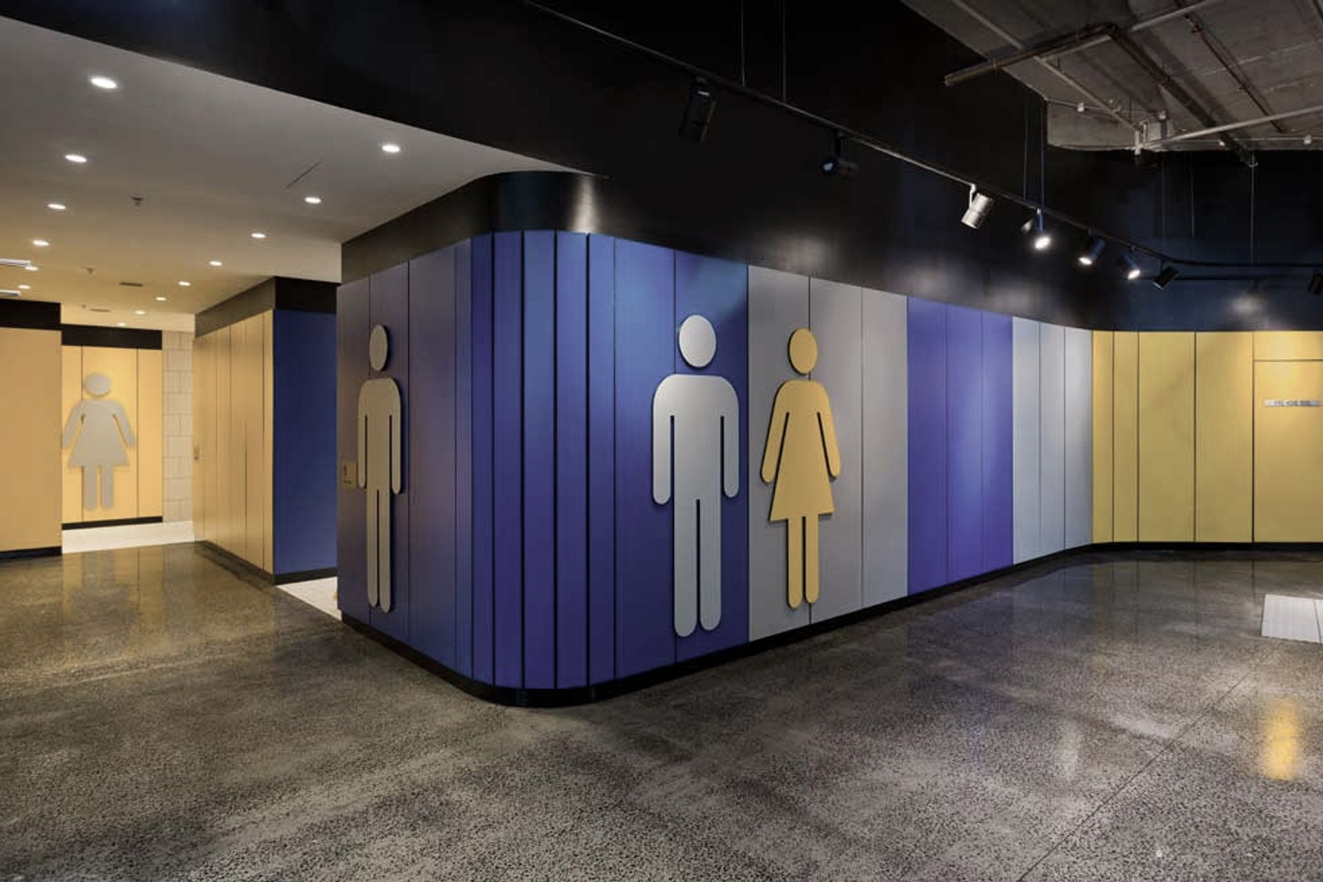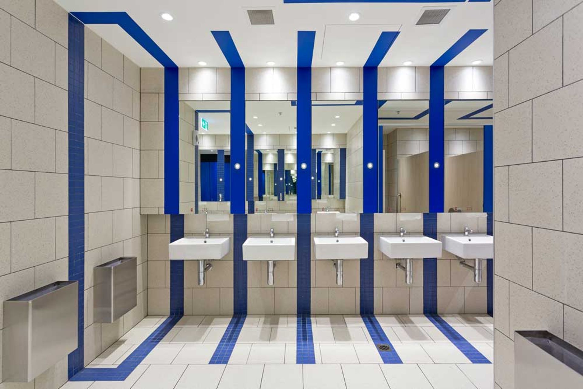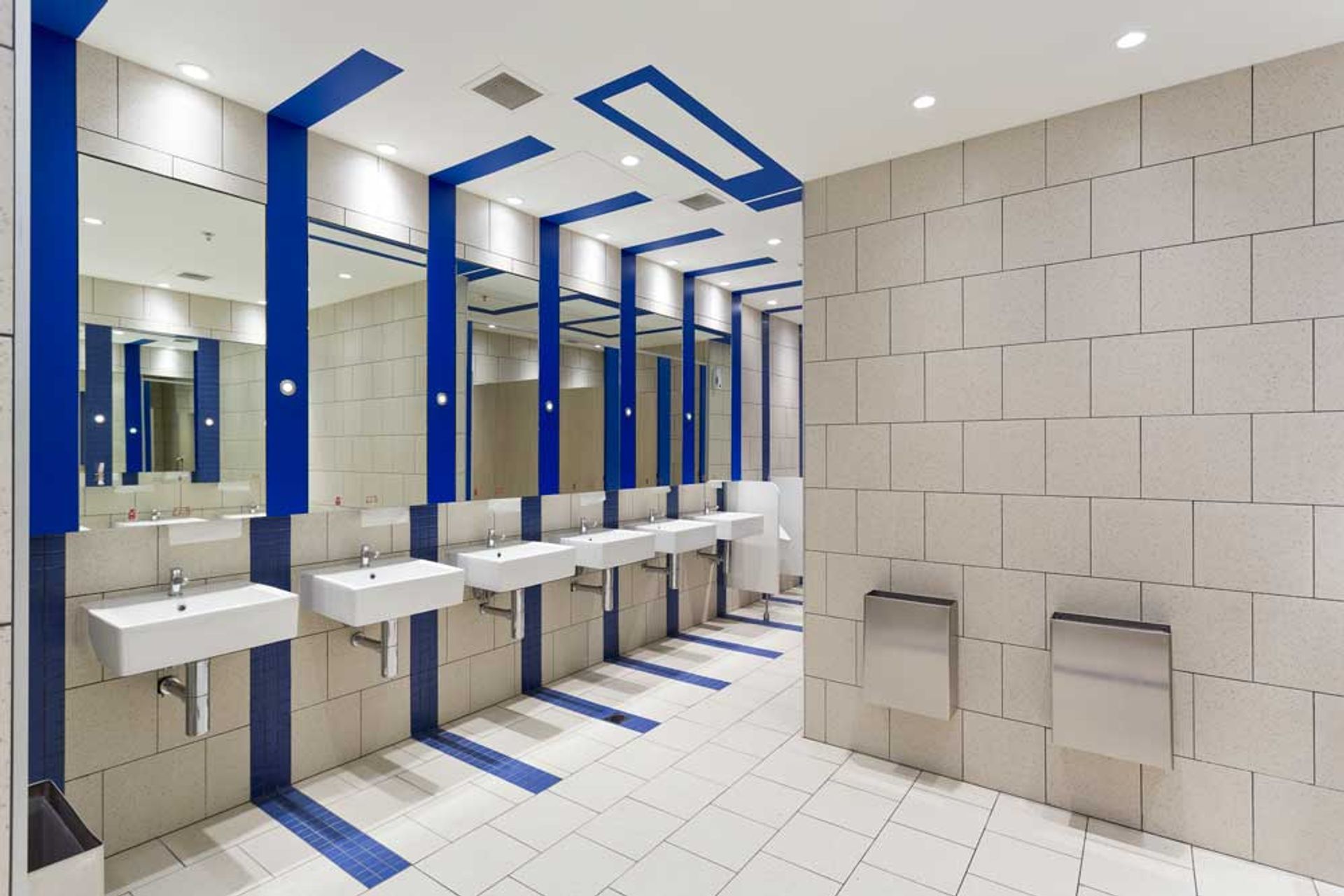 ArchiPro Project Summary - Renovation of the QV Centre bathrooms in Melbourne, featuring design by Russell & George, with comprehensive detail, documentation, and project delivery completed during employment.