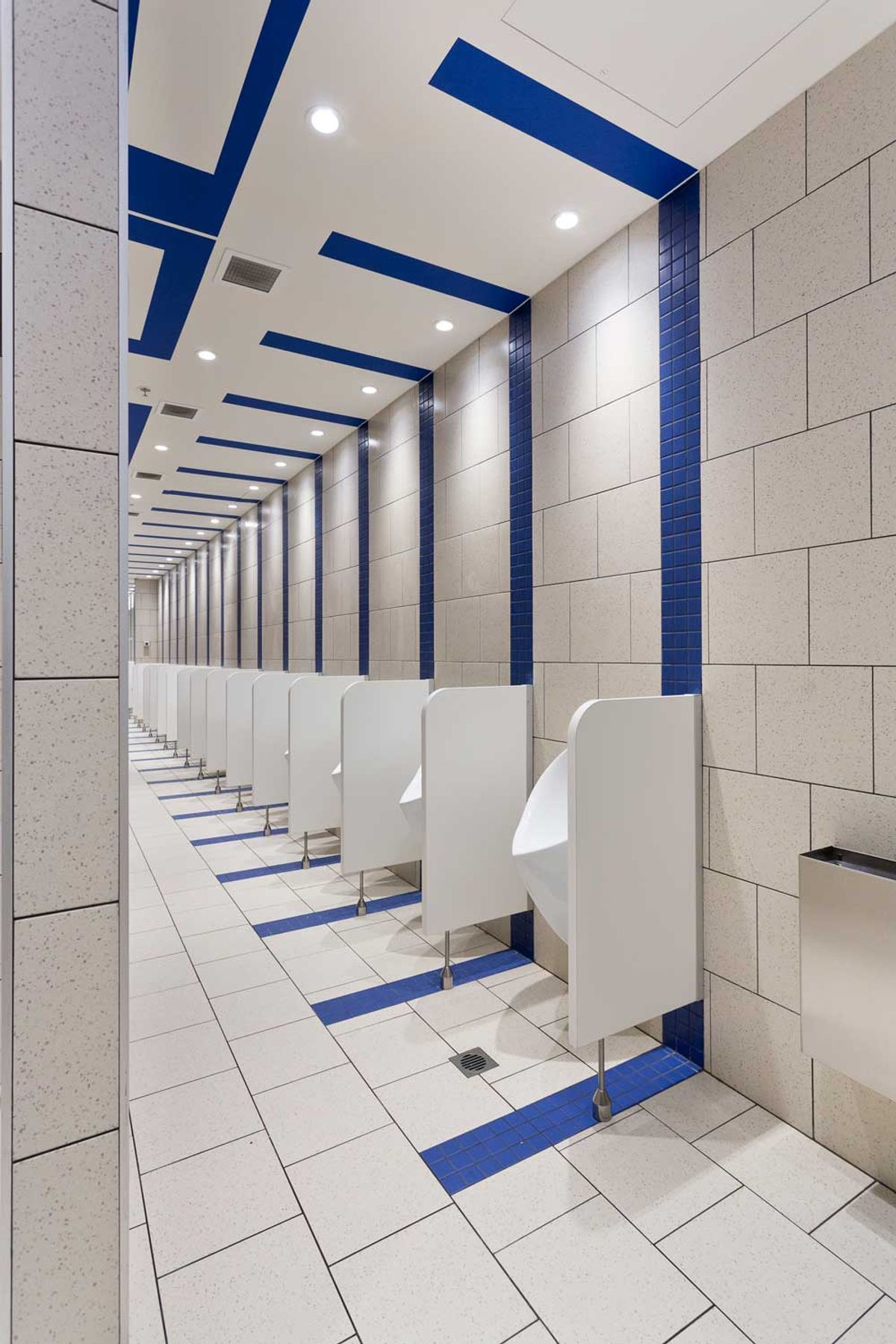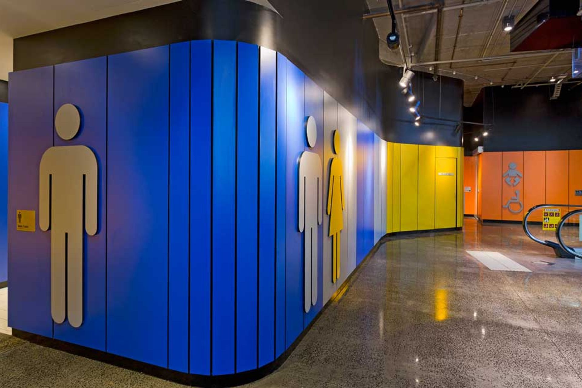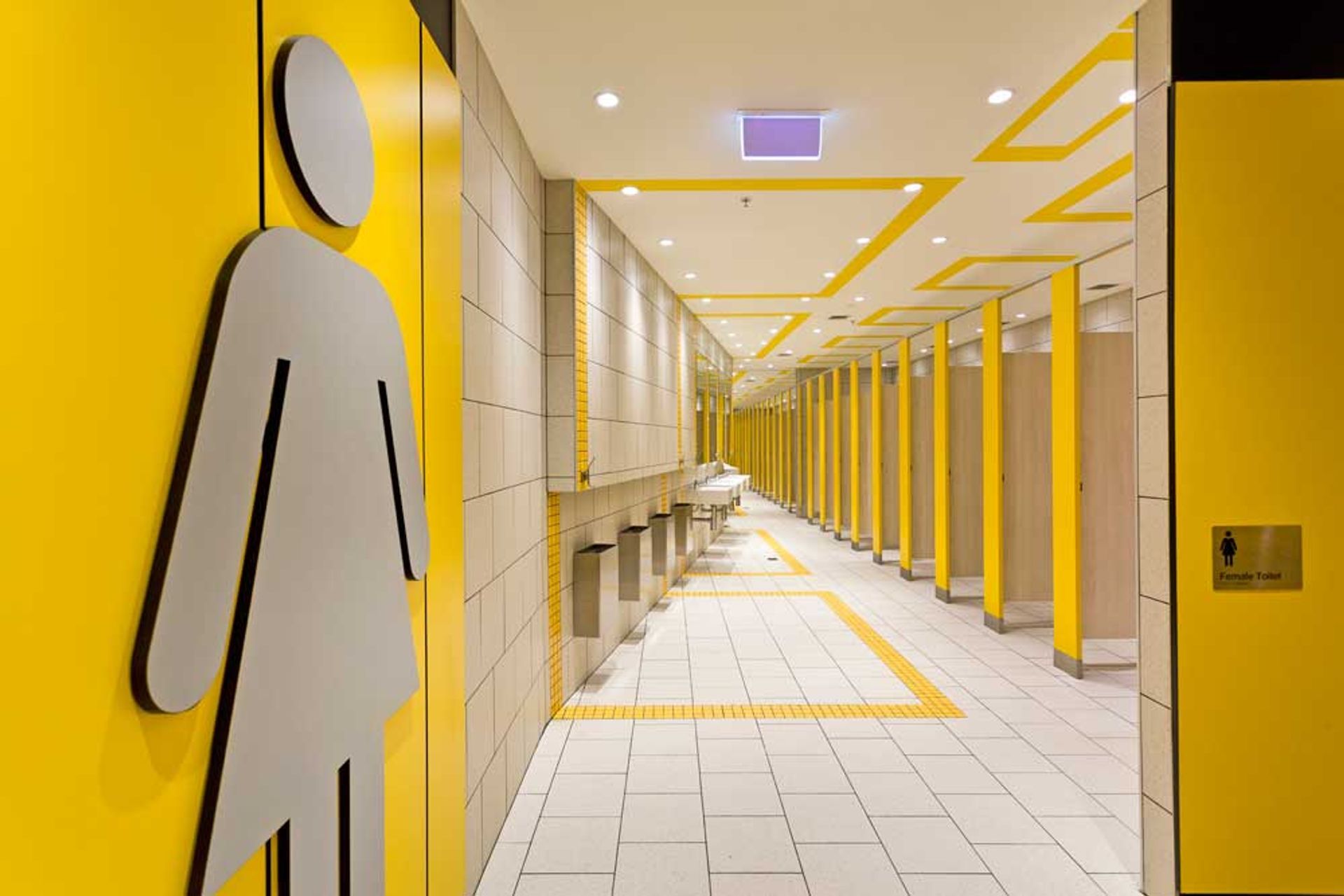 ArchiPro Project Summary - Renovation of the QV Centre bathrooms in Melbourne, featuring design by Russell & George, with comprehensive detail, documentation, and project delivery completed during employment.