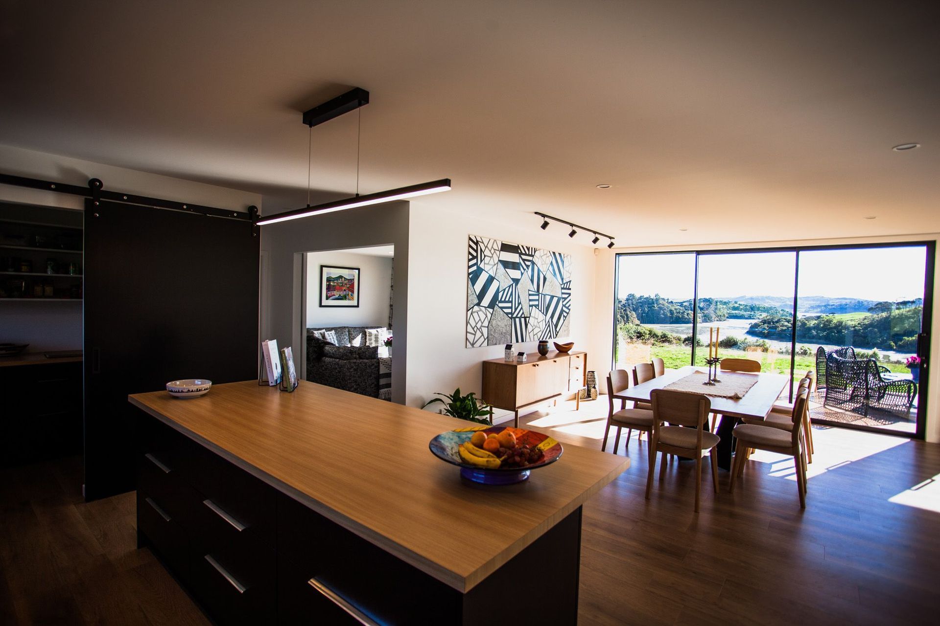ArchiPro Project Summary - Three Streams Serenity showcases modern architecture with open-plan living, sustainable materials, and stunning views in Raglan.