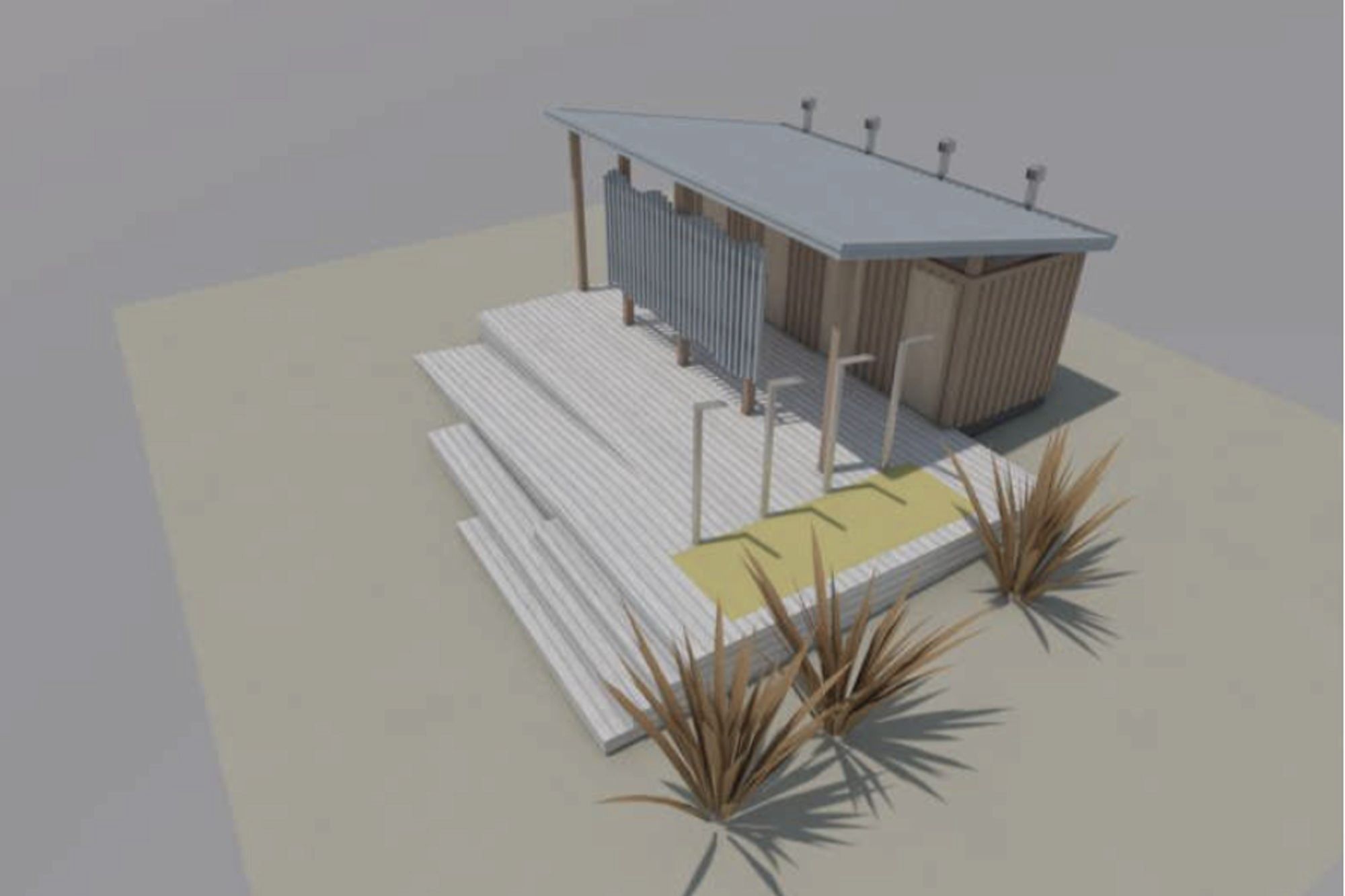 ArchiPro Project Summary - New public toilet and shower facility at Ngarunui Beach, featuring eco-friendly design and materials, completed in 2020 for Waikato District Council.