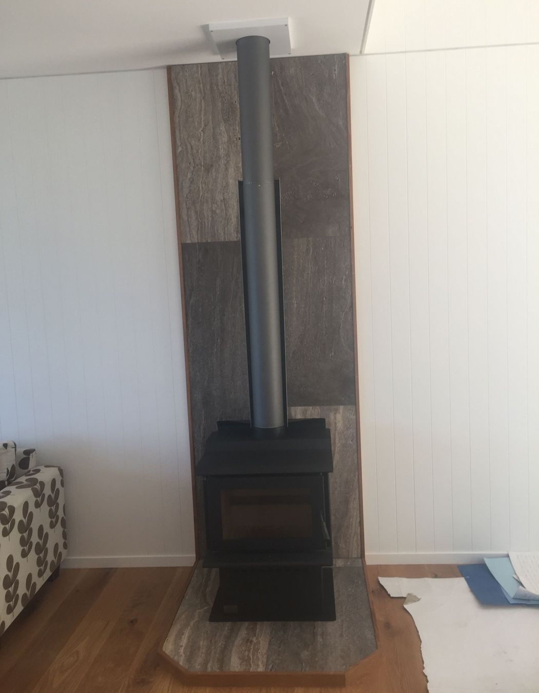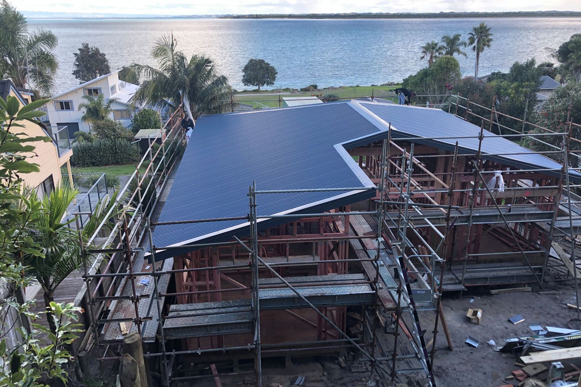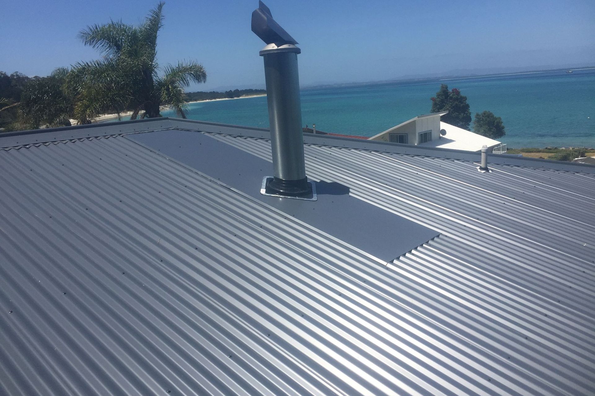 ArchiPro Project Summary - Installation of a new Denim blue Metalcraft Maxx roof and fireplace with flue at Rangiputa.