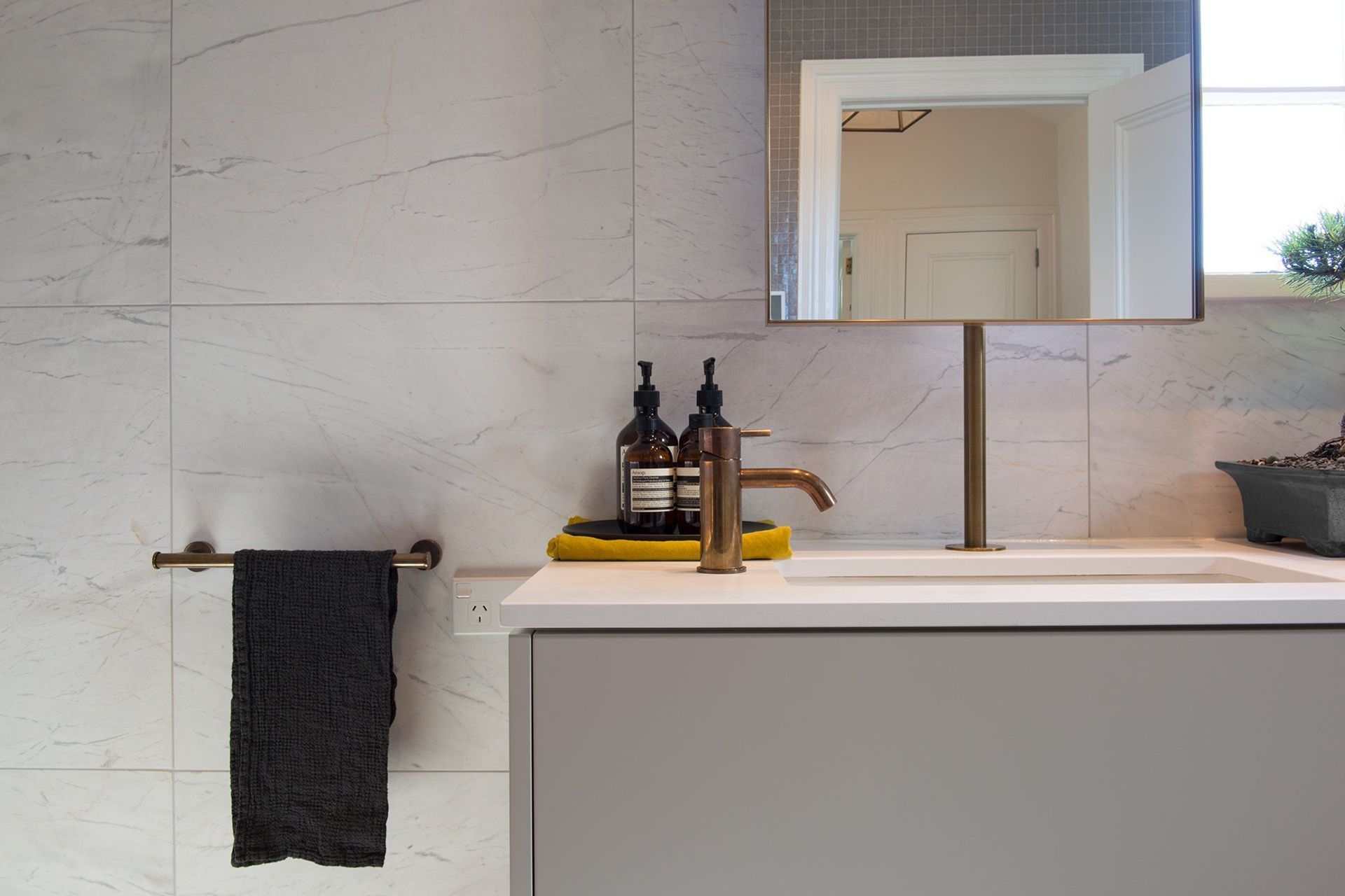 ArchiPro Project Summary - A complete renovation of bathrooms, powder room, and laundry in a historic Remuera home, blending classic warmth with modern elements like marble, aged brass, and Italian tiles for a timeless yet refreshing aesthetic.