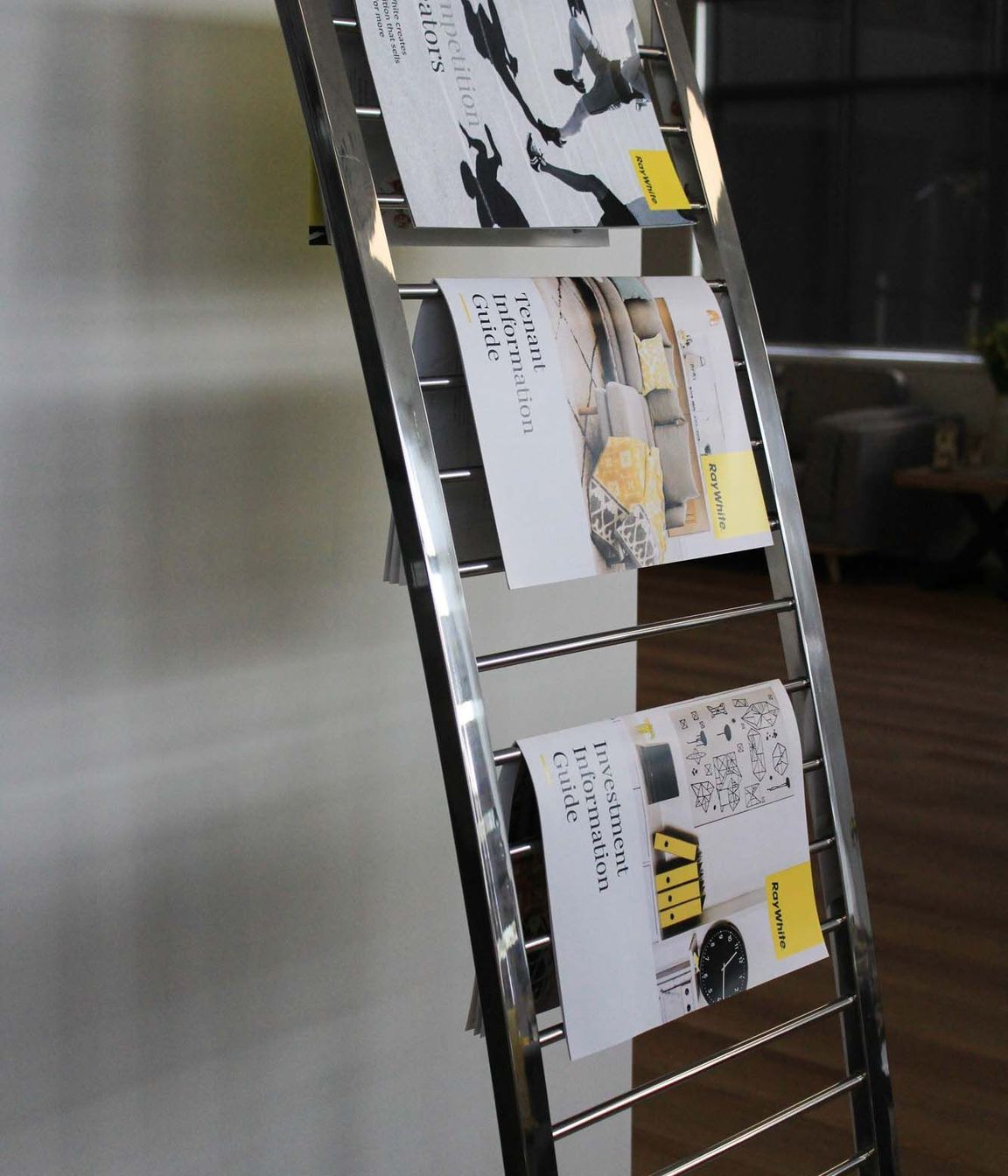 ArchiPro Project Summary - Minimalist and sophisticated fitout for Ray White's Henderson super office featuring customized pieces, Agile height adjustable desks, Rally and Metro chairs, and community seating with Slim and Duoblock chairs.