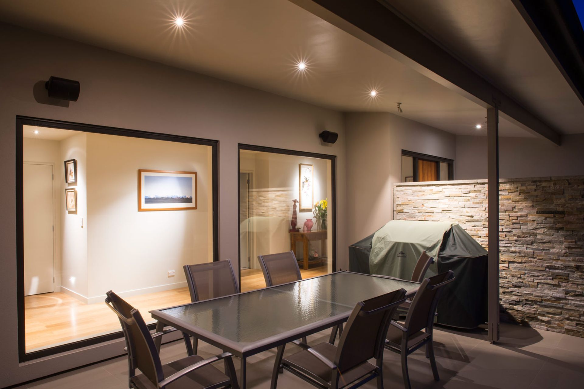 ArchiPro Project Summary - A beautifully illuminated hillside home featuring expertly designed lighting solutions that enhance its character and warmth, showcasing artwork with precision and creating a welcoming atmosphere.
