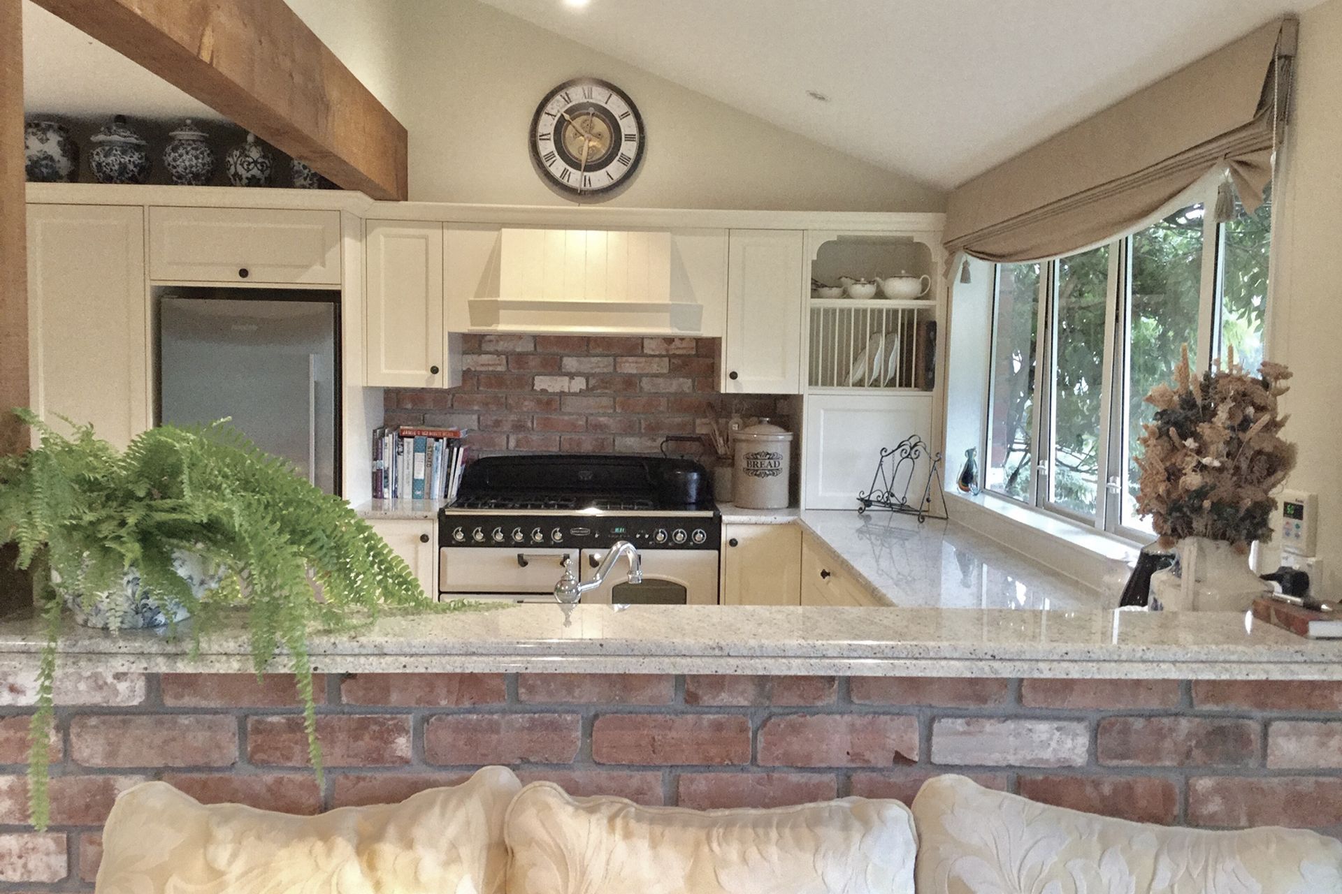 ArchiPro Project Summary - Elegant English Country Style Kitchen featuring Shaker Style Satin Lacquered Doors and Kashmir White Granite Bench Tops, designed for a new home in the picturesque Reikorangi, Waikanae.