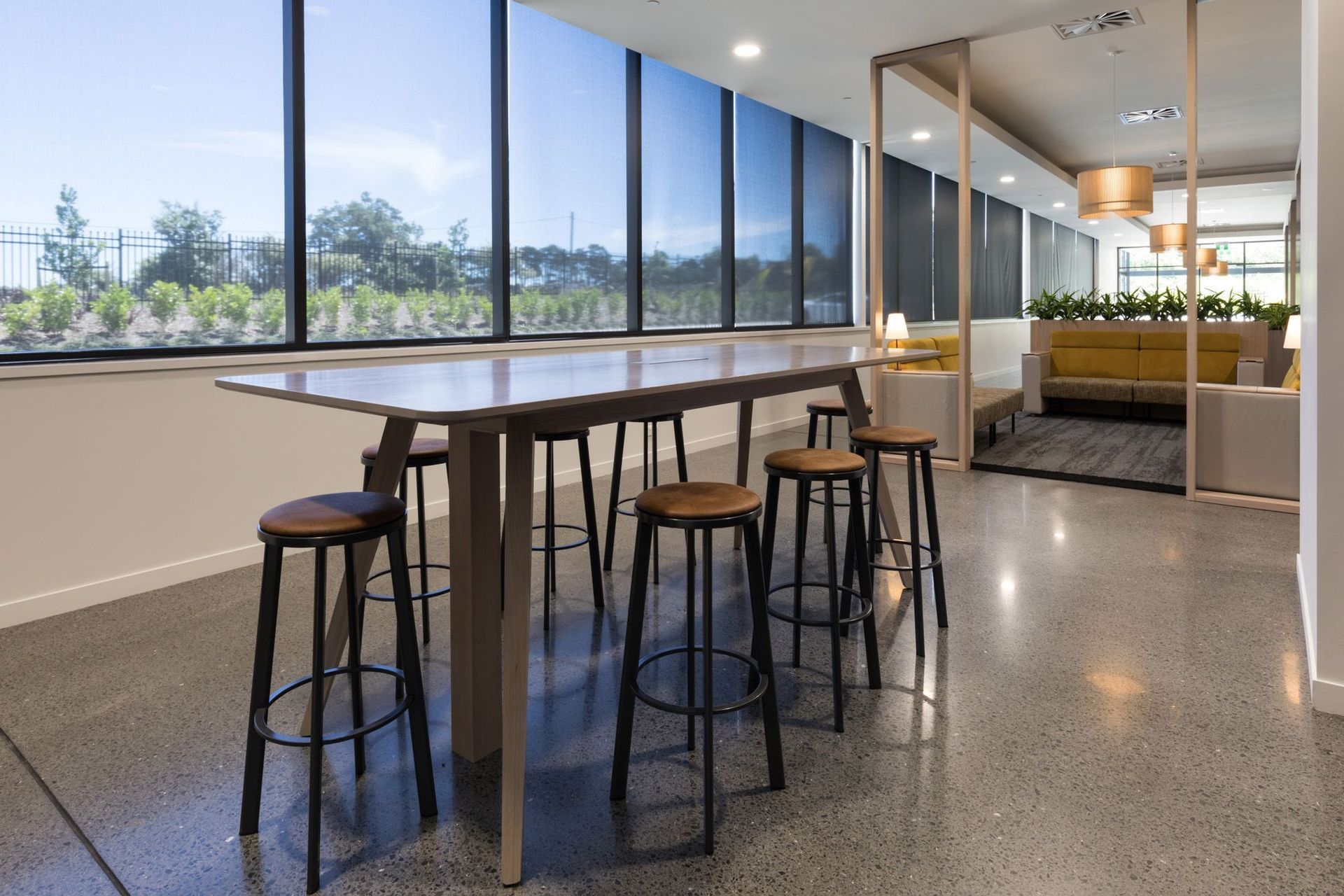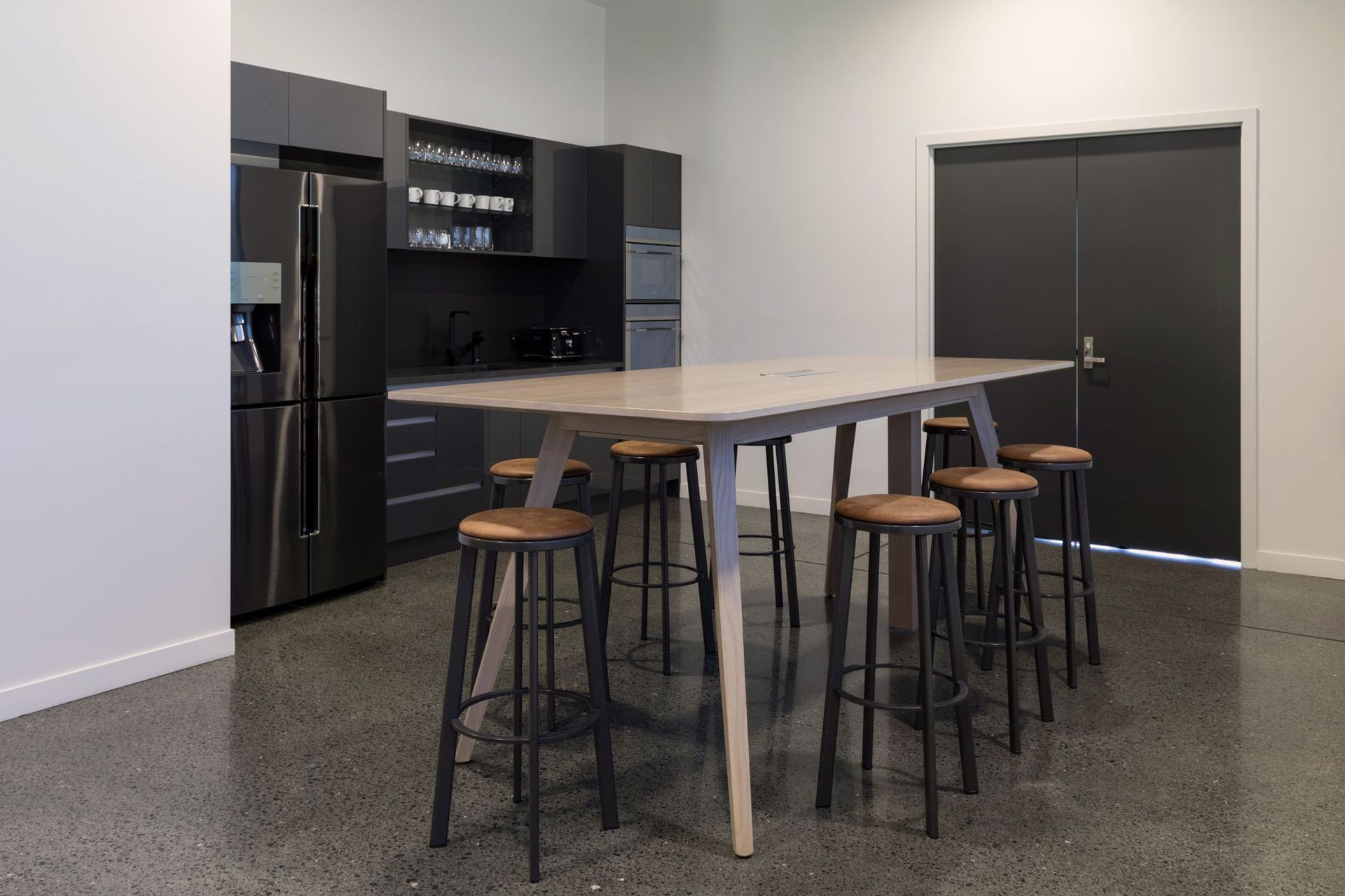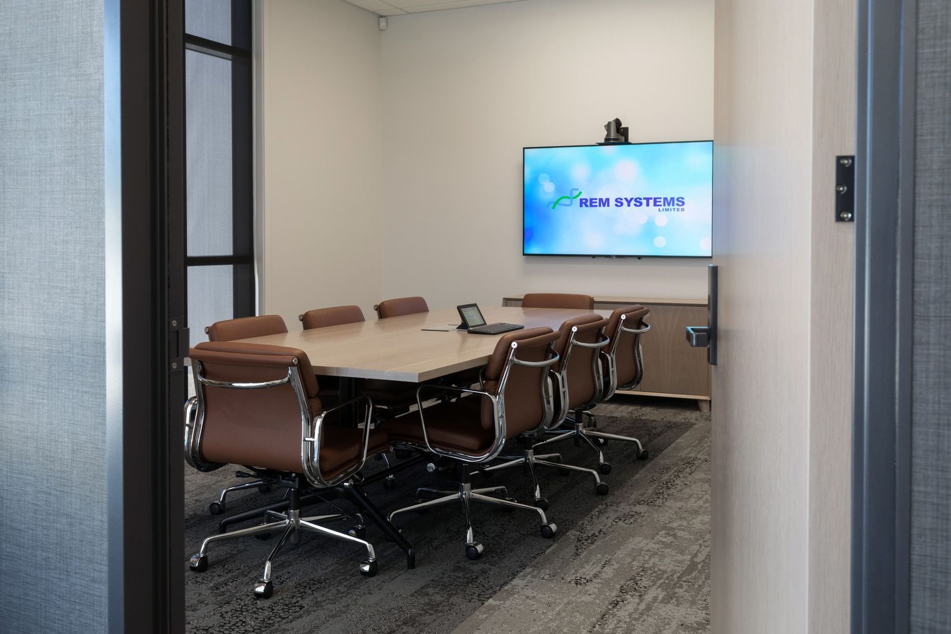 ArchiPro Project Summary - Modern training facility designed for REM Systems, featuring state-of-the-art video conferencing and a focus on collaboration, located near Auckland International Airport.