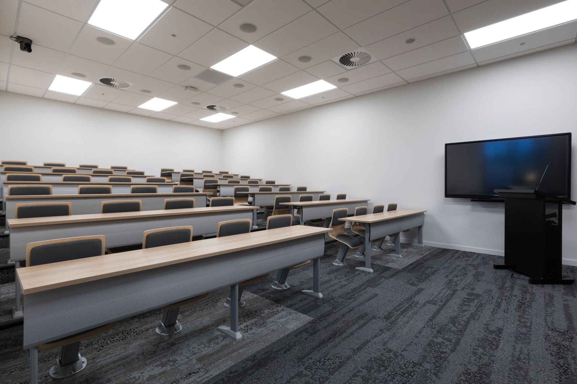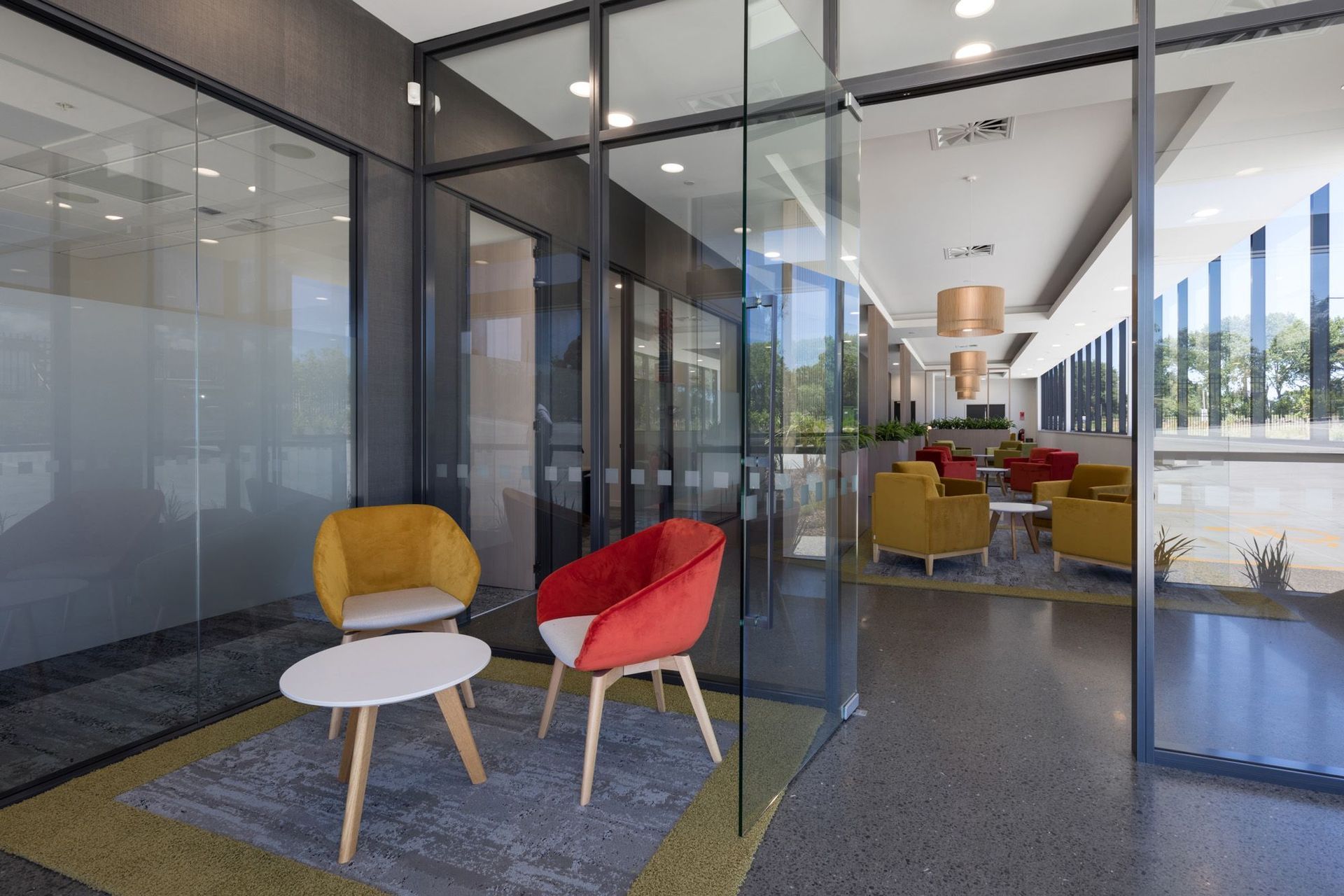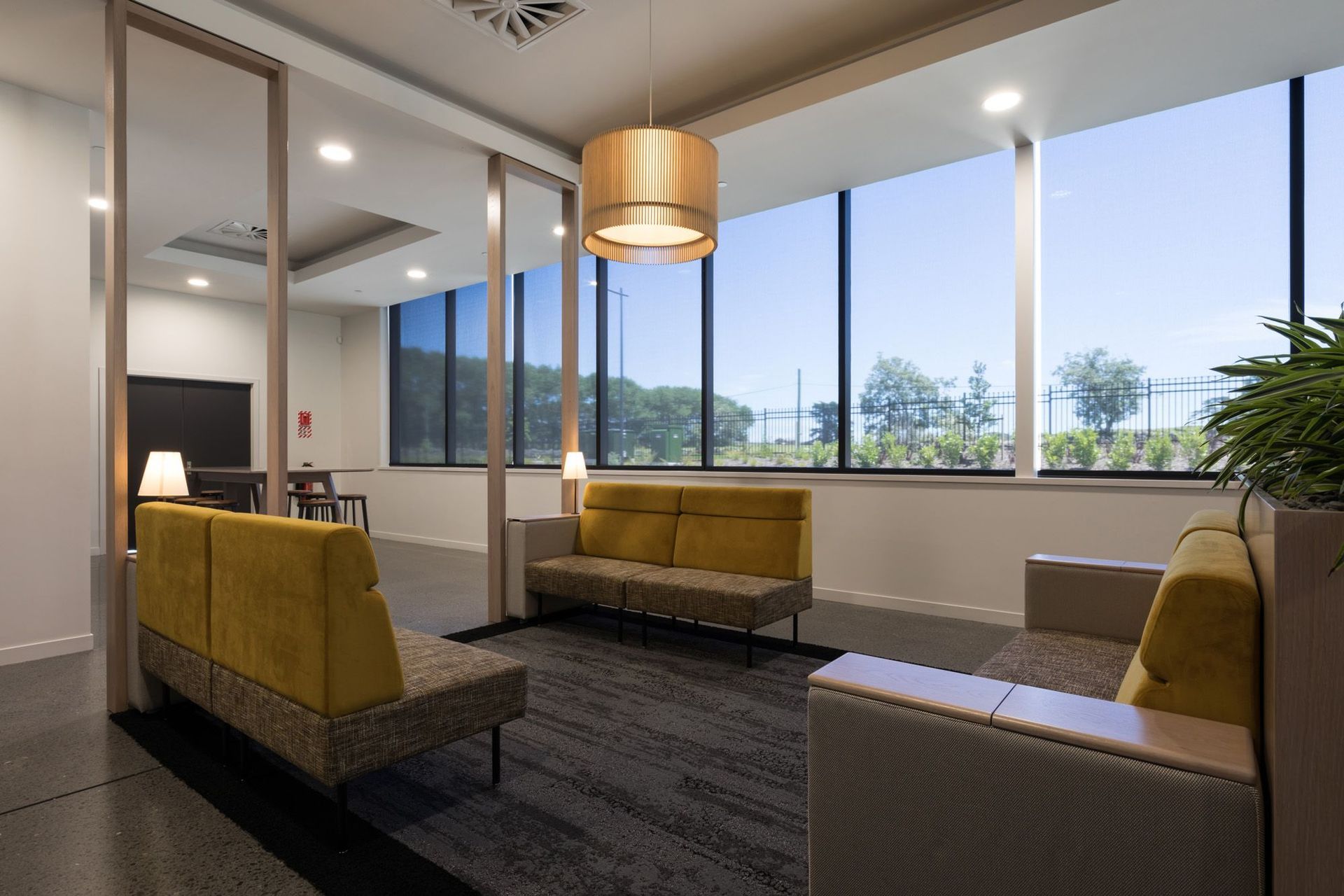 ArchiPro Project Summary - Modern training facility designed for REM Systems, featuring state-of-the-art video conferencing and a focus on collaboration, located near Auckland International Airport.